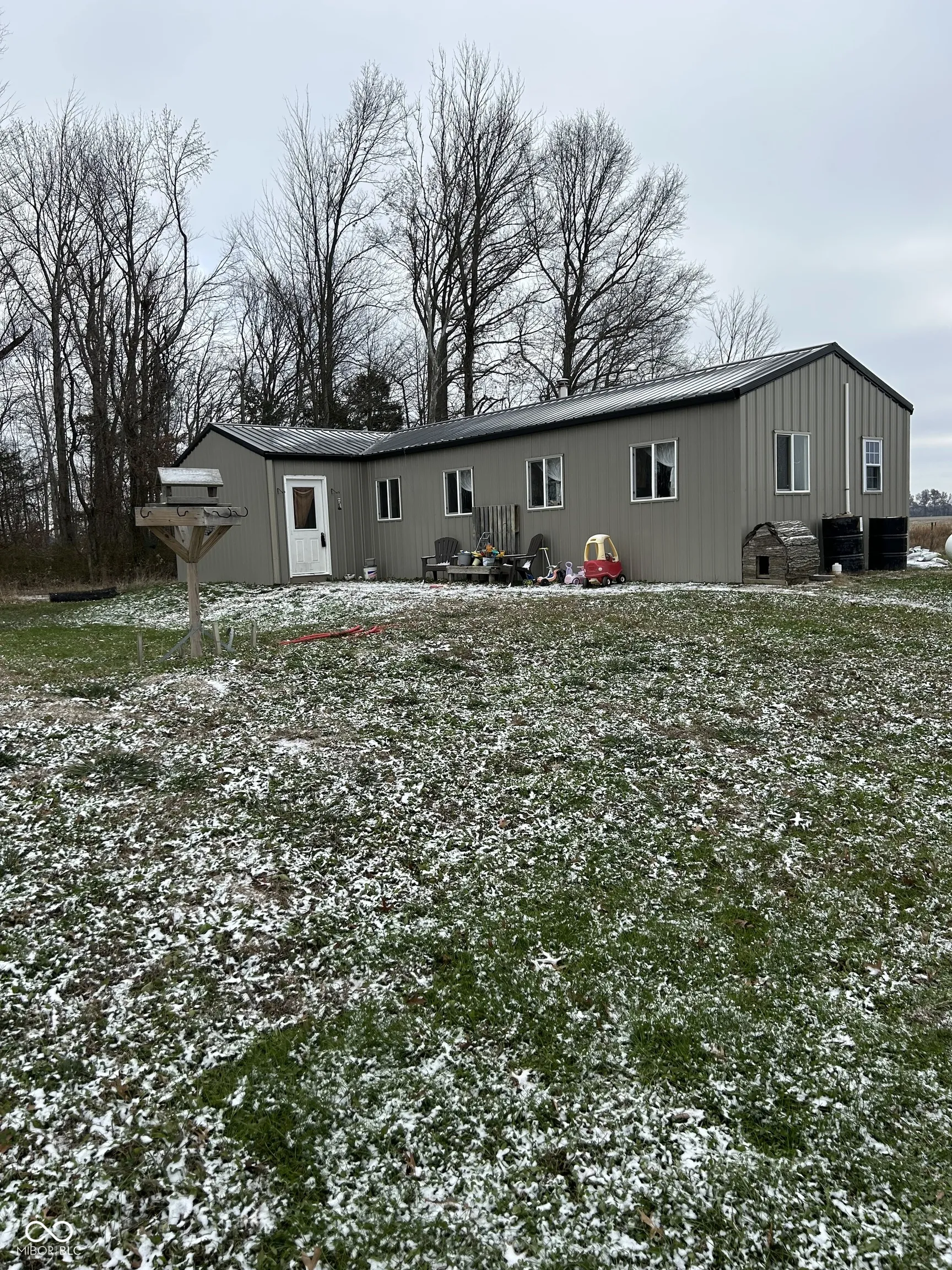 Welcome to the country! This 1 bedroom, 1 full bath home is surrounding by farm fields. It sits on 7.73 acres. The home could be utilized as a 2 bedroom. All is needed is to add a window to the office. There is no electric installed, but this could easily be added; No drywall, but is insulated well. The property has its own septic and rural water. While it’s being sold As-Is, it has lots of potential for someone to finish and make it their own cozy home.