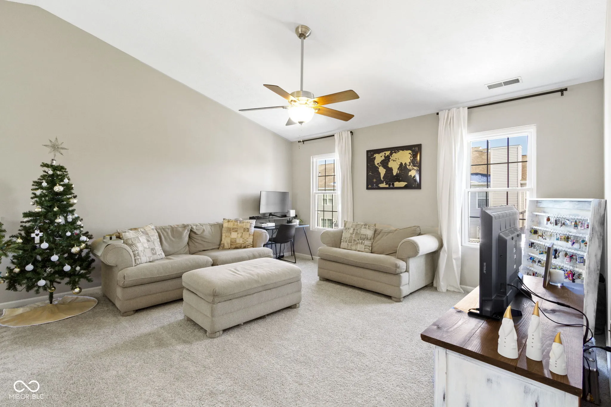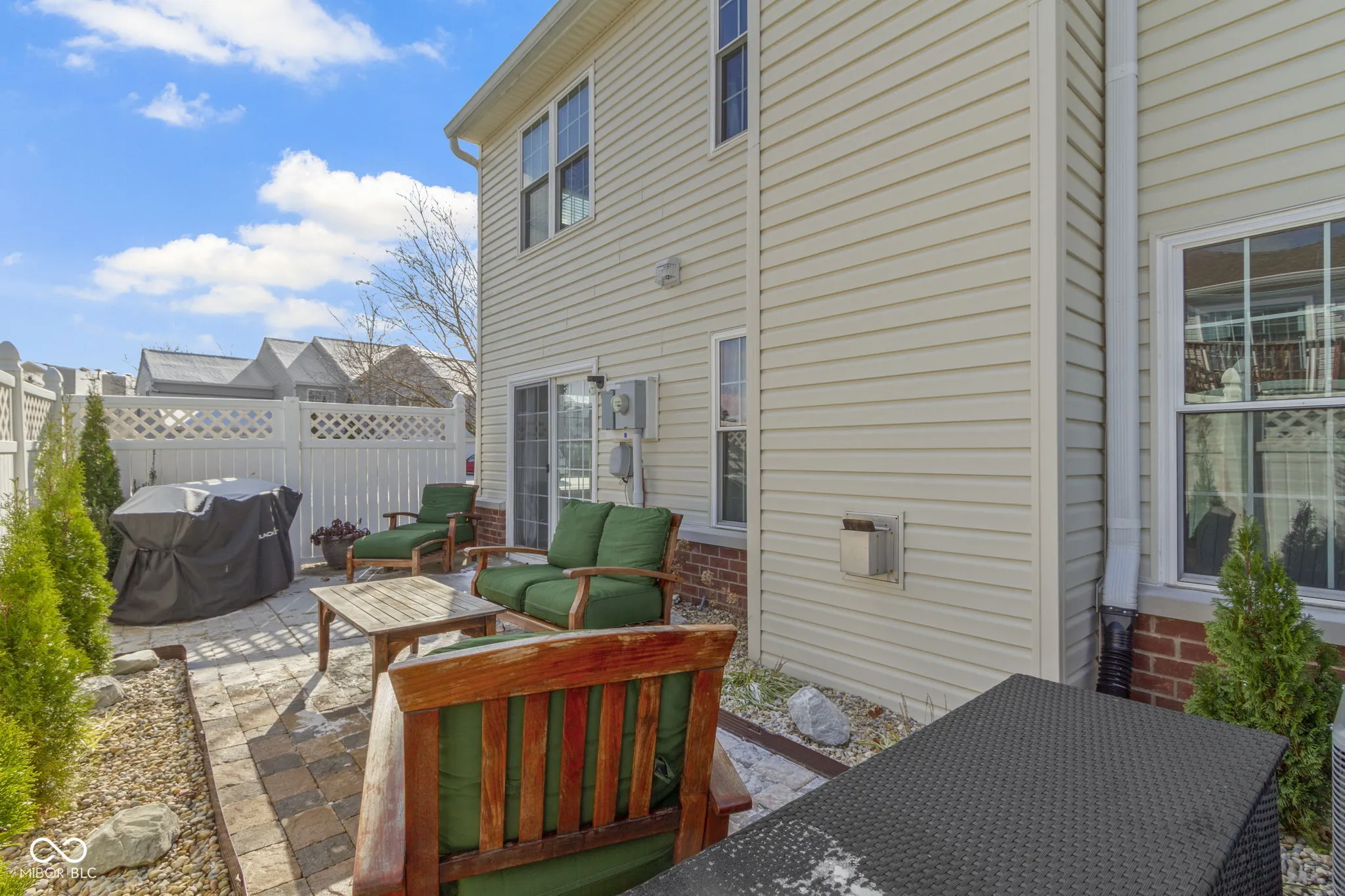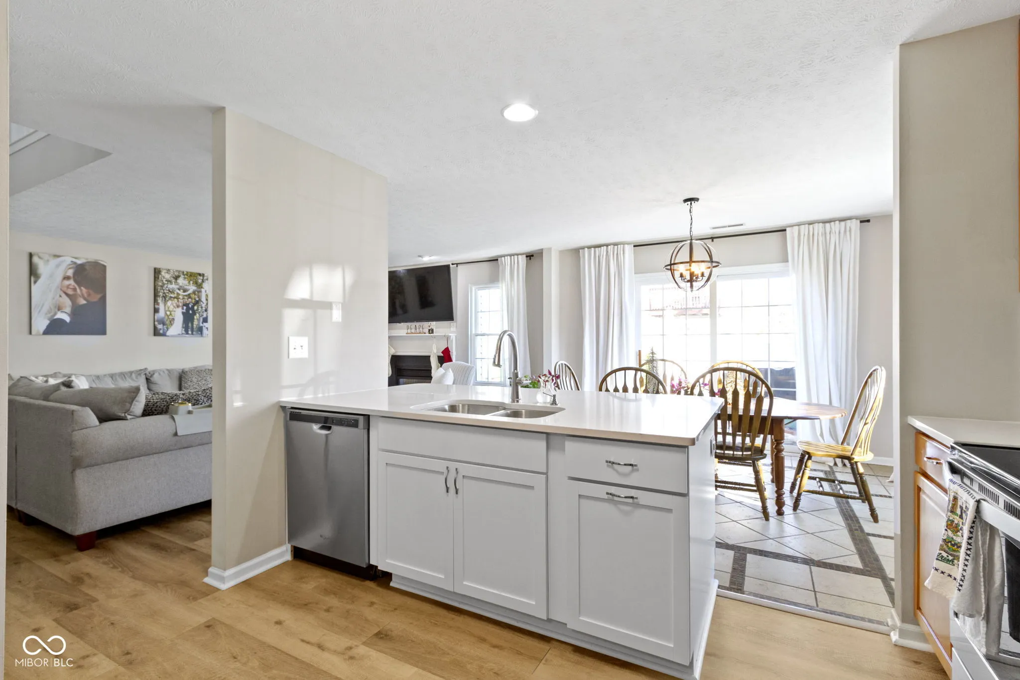 Updated condo townhome in popular Mapleton at Countryside. Home features remodeled primary bath, kitchen with white quartz countertops, large island with double sided cabinets, stainless steel appliances, tall cabinets to the ceiling. Contemporary vinyl plank flooring, neutral paint, gas fireplace, 2-story foyer and open concept floor plan. The loft, currently used as a 2nd living room space and office, could easily be converted to a 3rd bedroom. Large primary suite has vaulted ceiling, light & bright windows, 2 closets, plus remodeled primary bath with double sinks & large walk-in shower. Privacy fenced patio with newer pavers & landscaping. Spacious 2 car garage with storage system. End unit adjacent to large green space & 2 guest parking areas. Windows 2016, A/C 2016, Wall Insulation 2017, Roof 2018, Exterior Siding 2022, Furnace 2022.