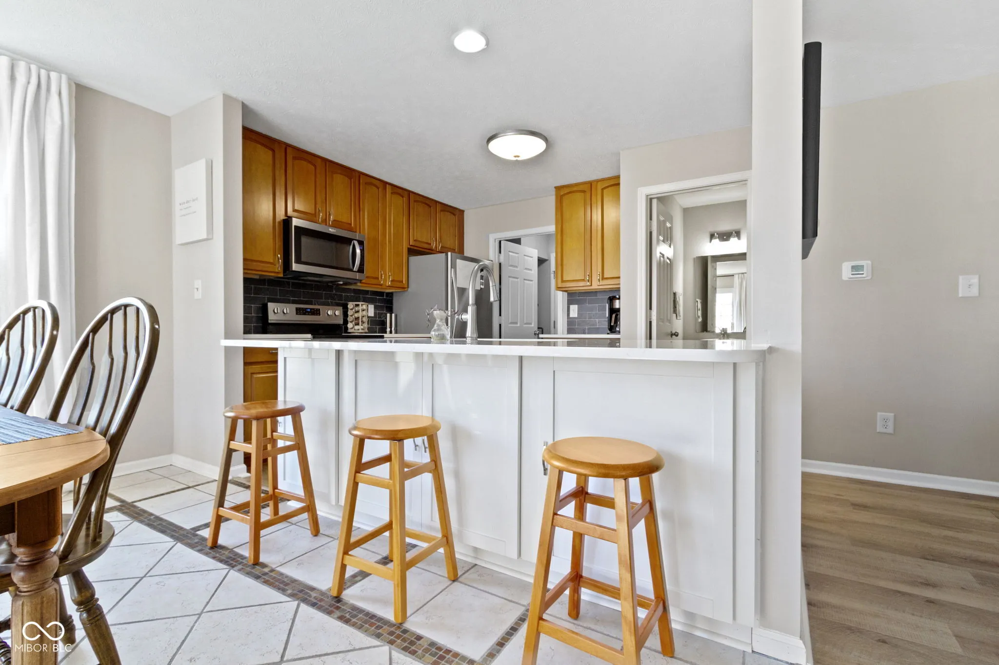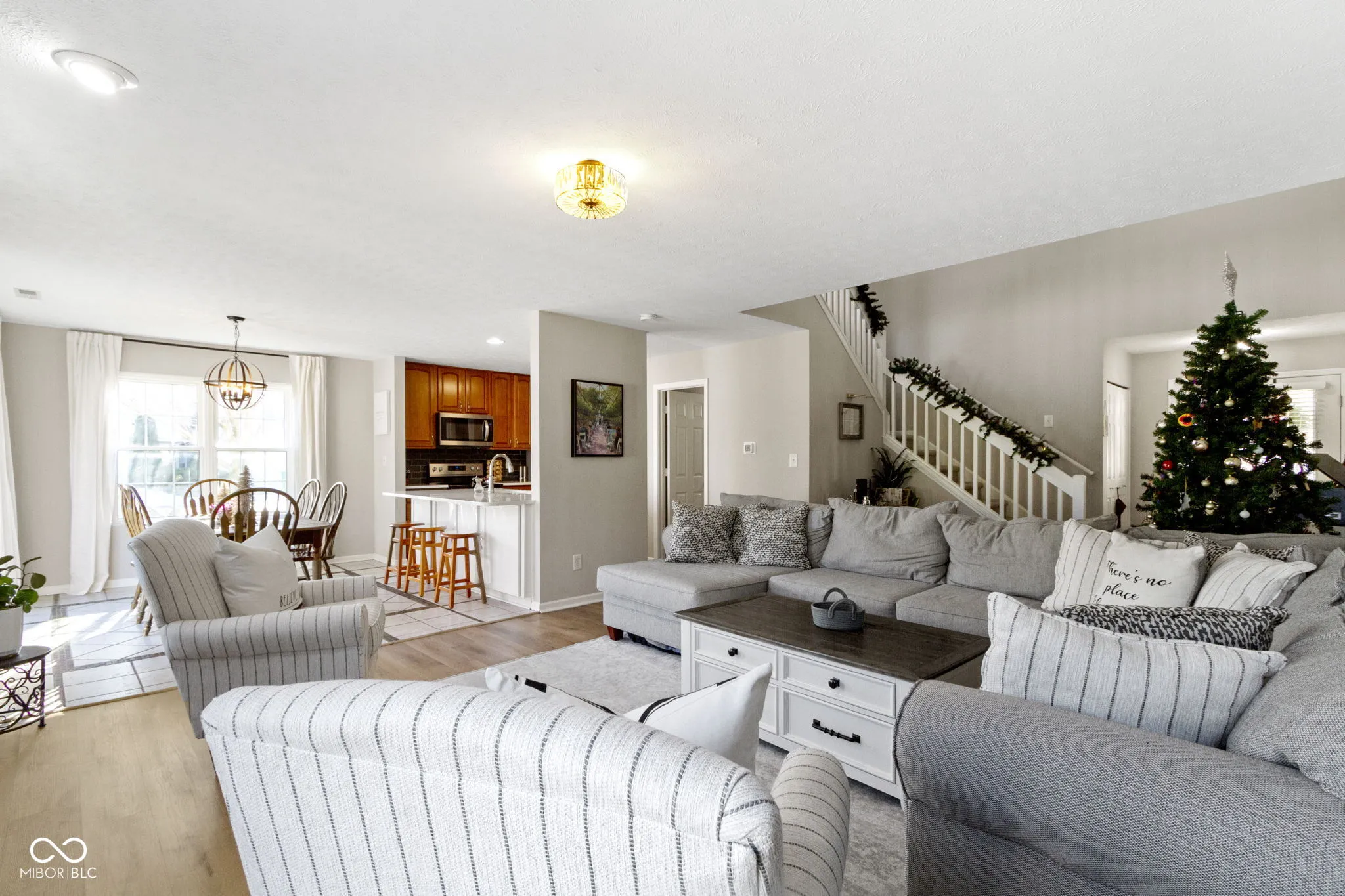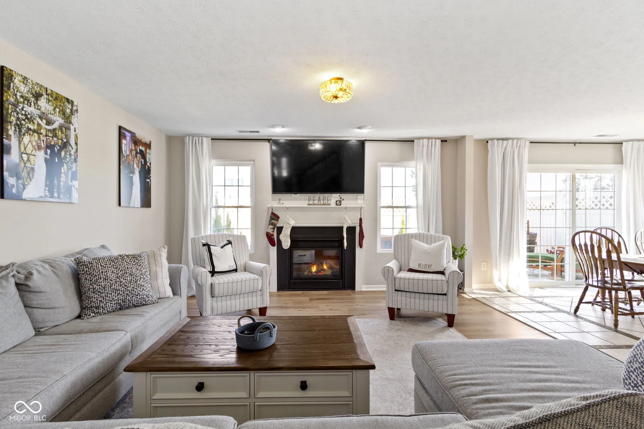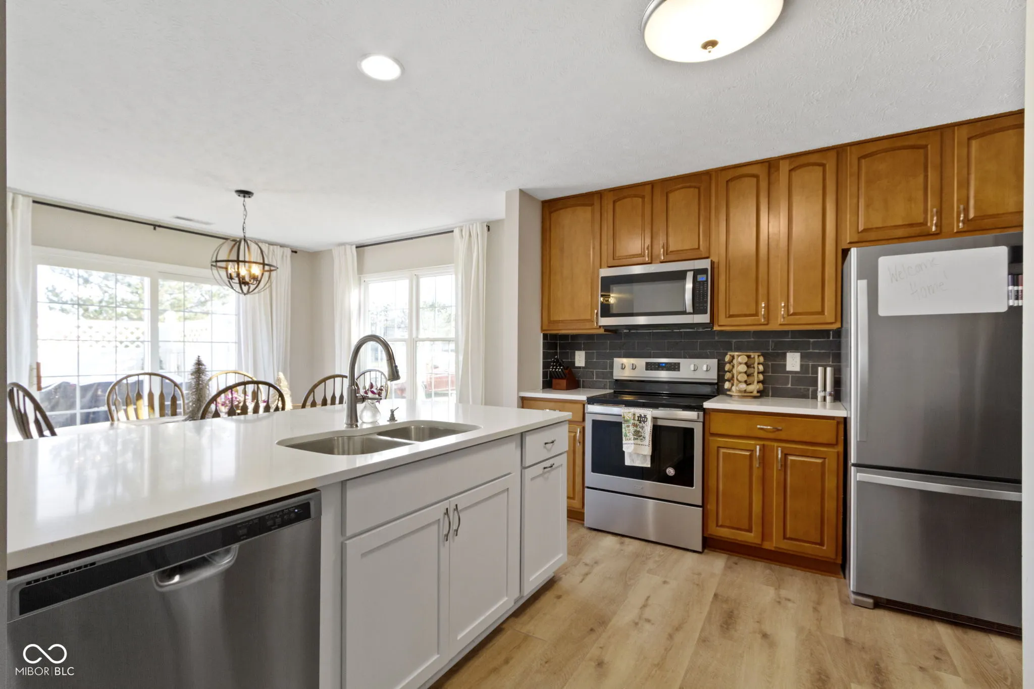 Updated condo townhome in popular Mapleton at Countryside. Home features remodeled primary bath, kitchen with white quartz countertops, large island with double sided cabinets, stainless steel appliances, tall cabinets to the ceiling. Contemporary vinyl plank flooring, neutral paint, gas fireplace, 2-story foyer and open concept floor plan. The loft, currently used as a 2nd living room space and office, could easily be converted to a 3rd bedroom. Large primary suite has vaulted ceiling, light & bright windows, 2 closets, plus remodeled primary bath with double sinks & large walk-in shower. Privacy fenced patio with newer pavers & landscaping. Spacious 2 car garage with storage system. End unit adjacent to large green space & 2 guest parking areas. Windows 2016, A/C 2016, Wall Insulation 2017, Roof 2018, Exterior Siding 2022, Furnace 2022.