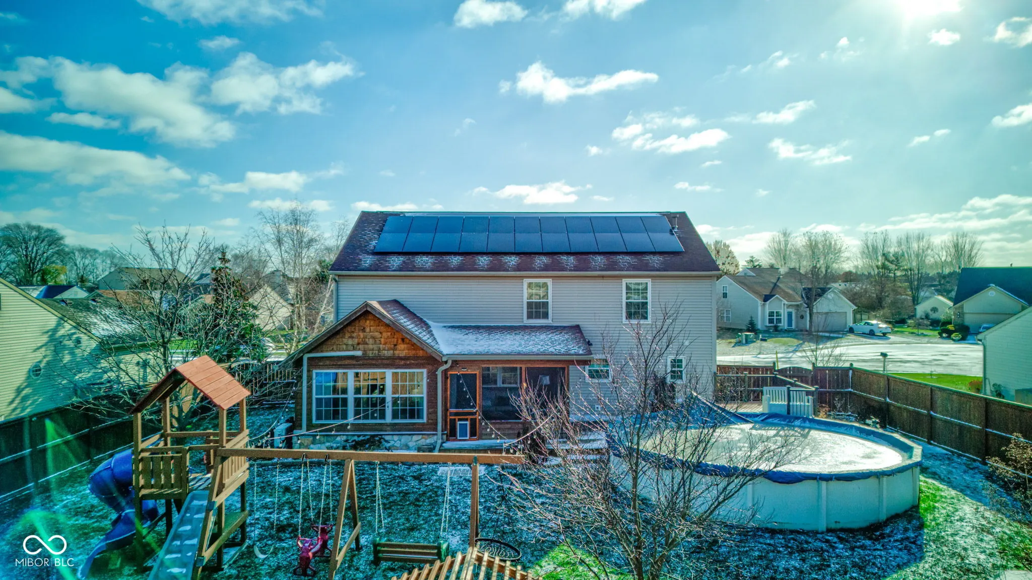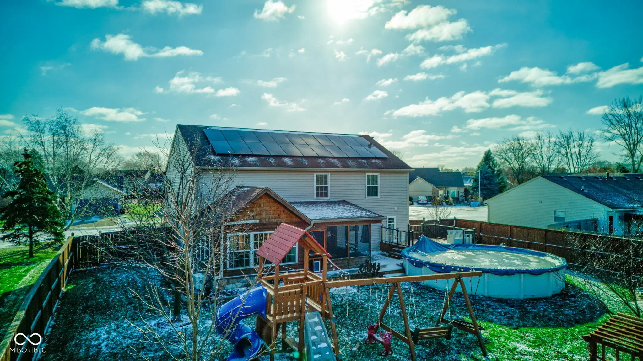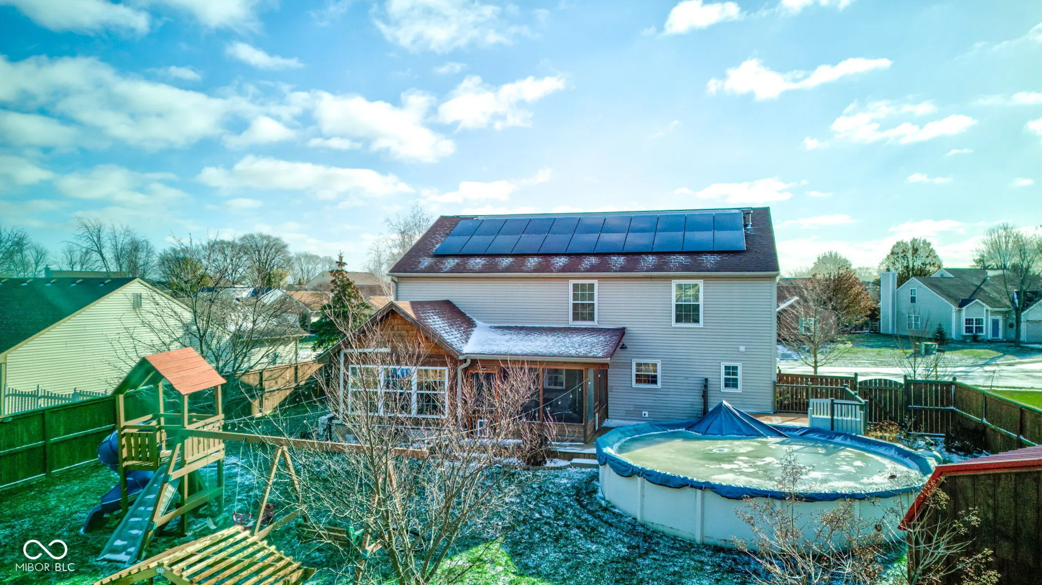 Welcome to this exquisite 4-bedroom, 2.5-bathroom detached home that offers over 2600 square feet of living space, perfect for your family’s next chapter. Nestled on a little over a quarter-acre lot, this property is an entertainer’s dream and a serene family oasis. Step inside to discover a stunningly large kitchen boasting quartz countertops, perfect for culinary enthusiasts, adjacent to a spacious dining area ideal for hosting gatherings. The main level features elegant wood-look tile flooring that adds warmth and charm throughout. Upstairs, each bedroom is generously sized, complete with walk-in closets for ample storage and comfort. The loft offers additional versatile space, adaptable to your needs. The primary suite provides a luxurious retreat with its own impressive 16’x7′ walk-in closet. Venture outside to your private paradise; enjoy an evening on a 25’x17′ deck or in the 13’x13′ screened porch, overlooking a serene pond and a 24′ round above-ground pool, perfect for summer fun. The full wood privacy fence ensures seclusion, while a 14’x10′ mini barn offers potential for hobbies or extra storage. Sustainability meets comfort with energy-efficient features, including a solar panel system, high-efficiency furnace, and a tankless water heater, significantly reducing utility costs for peace of mind. Lastly, this remarkable home is located in a community served by highly rated schools and has only its’ original owners – and no HOA. Don’t miss this opportunity to own a slice of paradise. Schedule your private tour today and start living in the home of your dreams!