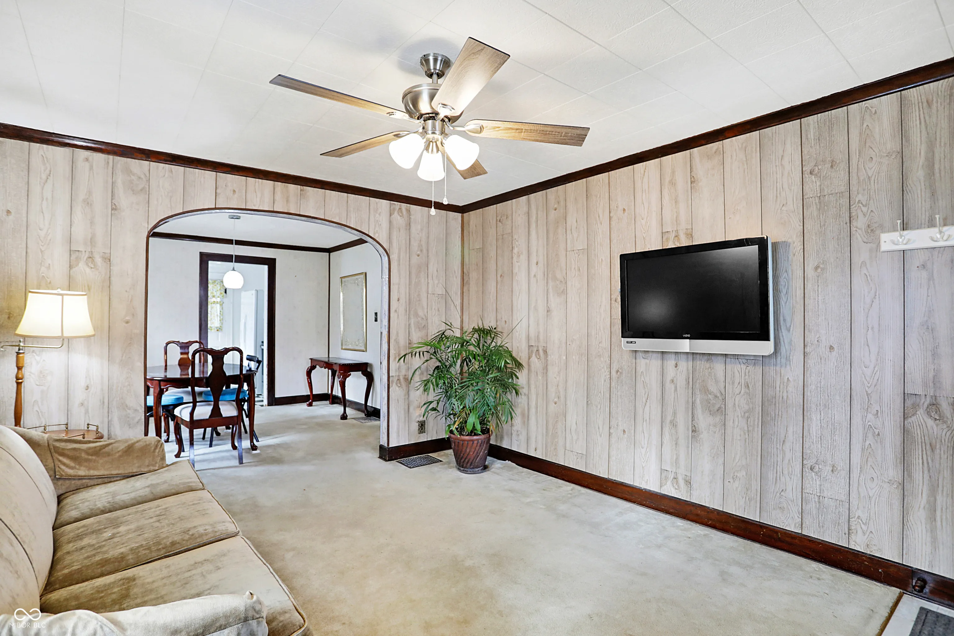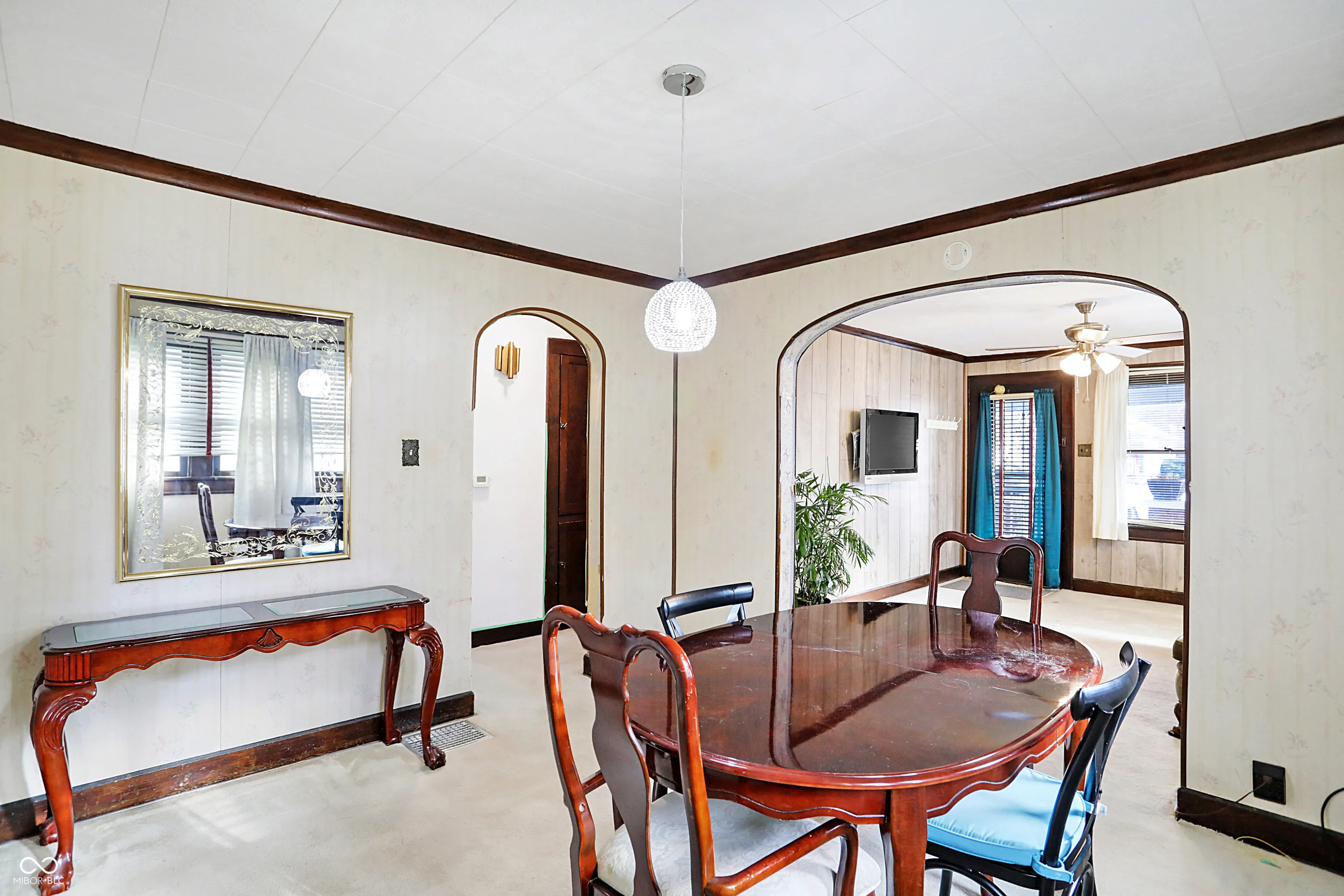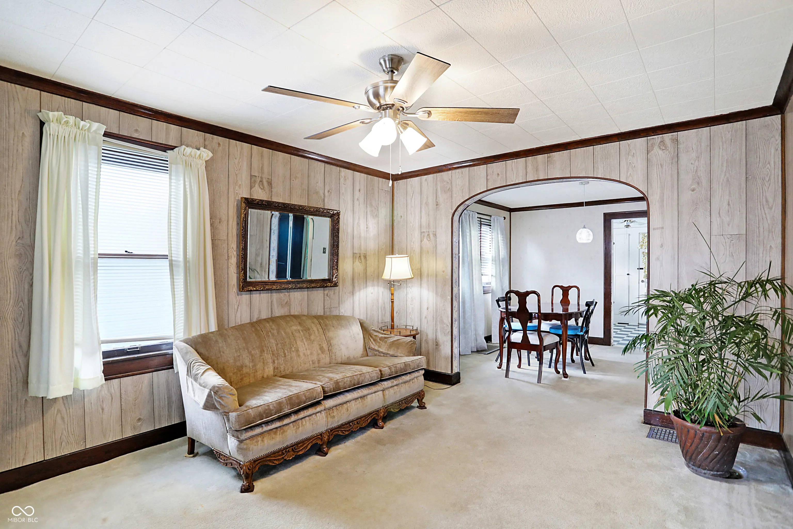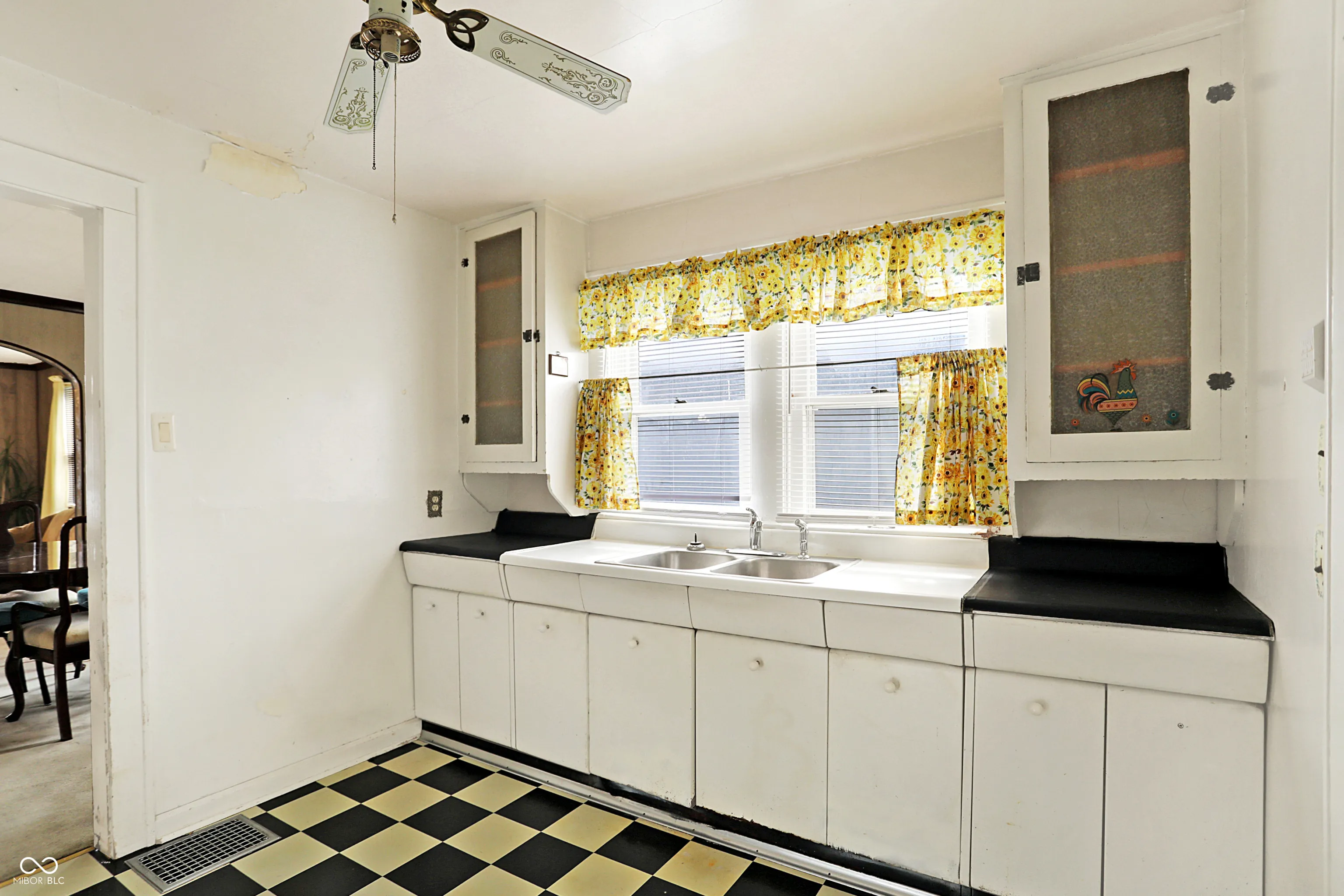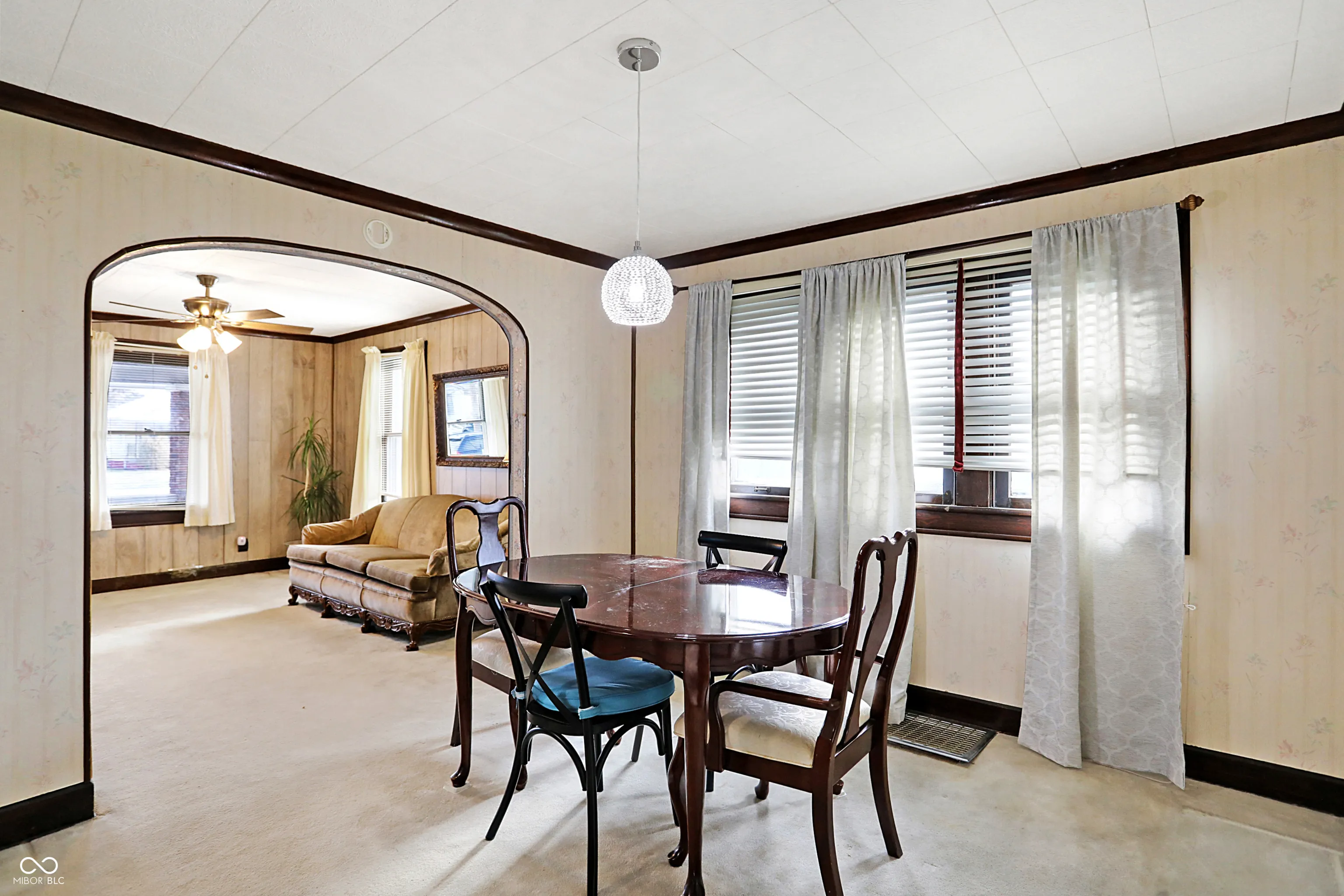 Charming 2BR/1BA bungalow ready for your finishing touches! Curved archways, original wood floors, convenient & stylish built-ins & more vintage details! Large covered front porch features brick detailing and beadboard ceiling. Sunny living room opens up to formal dining room with large windows and updated lighting. Chic retro kitchen features classic black and white checkerboard flooring and convenient built-ins. Two bedrooms both feature generous sized closets which give you a better view of the beautiful hardwood floors. Full bathroom has window for additional natural light. Cozy sunroom is the perfect spot for a small home office, mudroom, pet den or artist studio. Large unfinished basement has plenty of storage space and includes a newer washer and dryer. Huge 2 car attached garage with garage opener, has plenty of storage space for your seasonal equipment. You’ll appreciate the gorgeous backyard during the warmer months. Backyard has full privacy fencing, open patio, and very pretty perennials that will make you the envy of the neighborhood! Minutes to walk to Christian Park, Pleasant Run Trail and more. Great opportunity for first time homebuyers and investors alike!