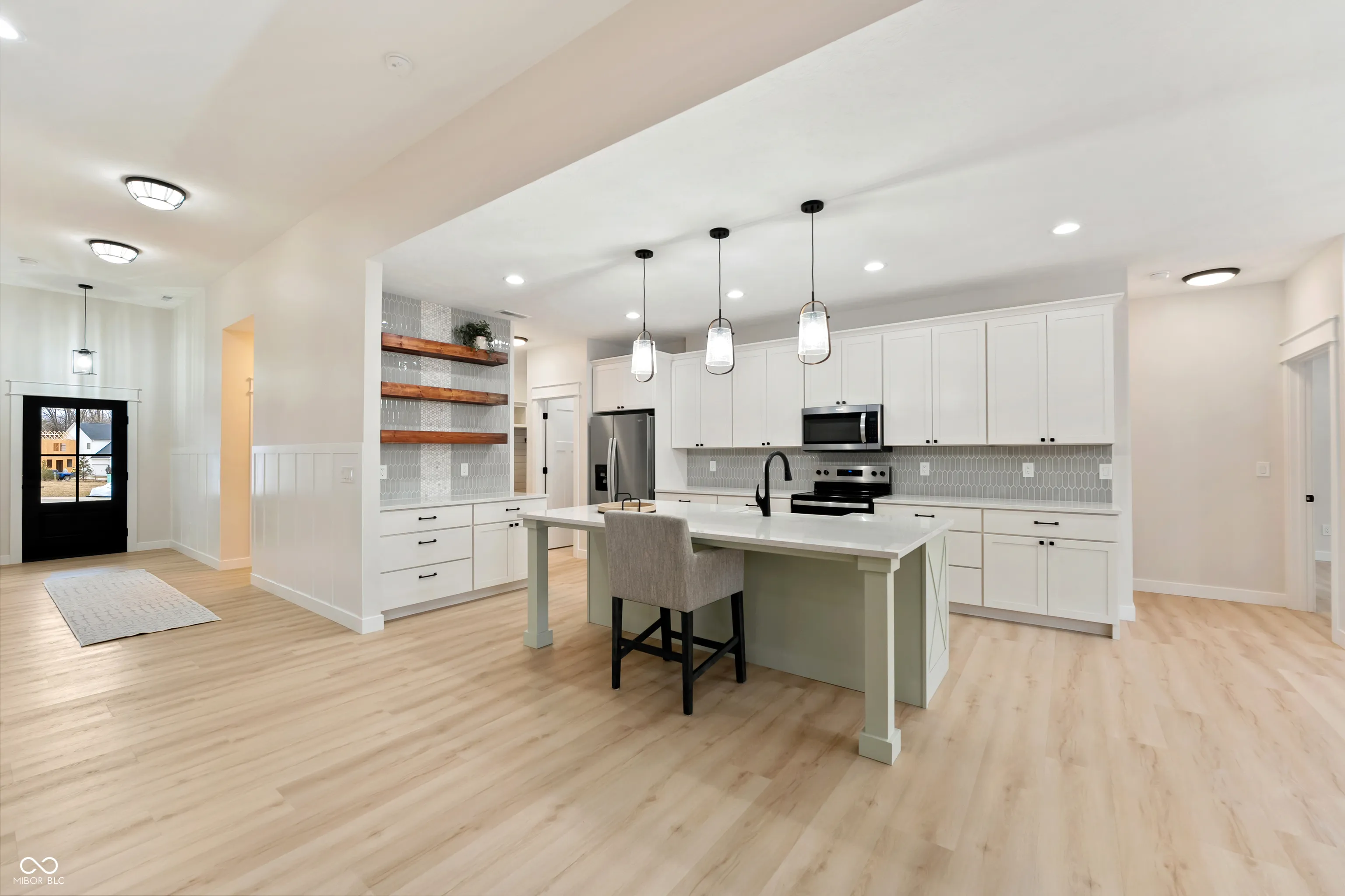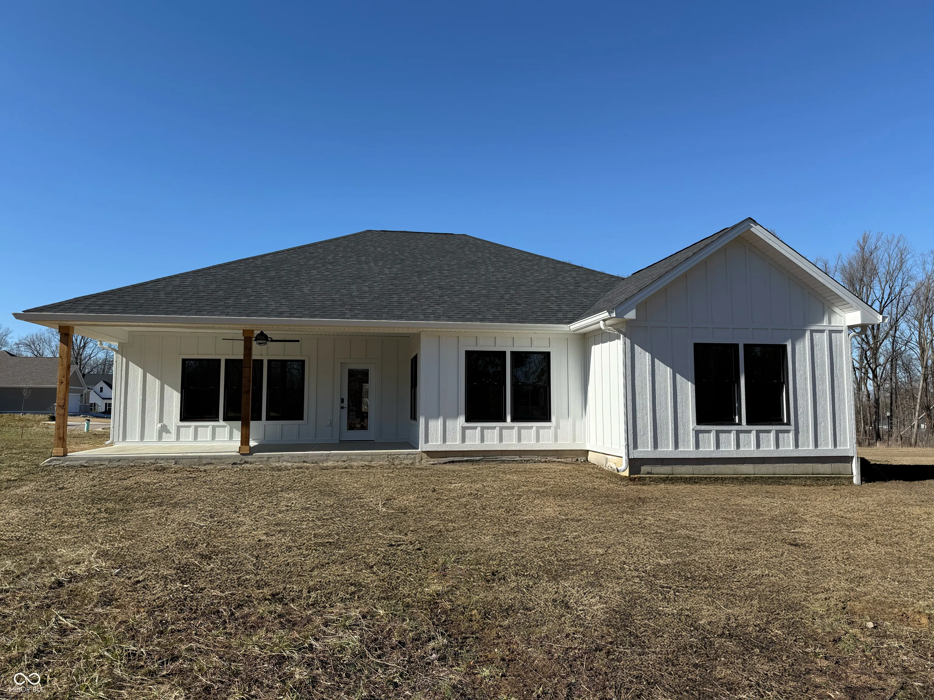 Are you ready to discover your dream home? This beautiful 3-bedroom, 2.5-bath residence features an open floor plan ideal for living and entertaining. The great room impresses with 11-foot ceilings, abundant natural light from a wall of windows, and a cozy fireplace that opens to a spacious covered back porch. The kitchen is a chef’s dream, offering ample storage with a center island, stainless steel appliances, and a walk-in pantry. The dining area is conveniently adjacent to the kitchen and the great room. Enjoy the privacy of the split floor plan, which includes a luxurious primary suite with a large walk-in closet that conveniently connects to the laundry room and a bath featuring a double vanity and walk-in shower. Two additional bedrooms and a full bath are on the home’s opposite side. A mudroom off the garage provides practical storage and easy access to the laundry room. With its stylish, low-maintenance board and batten exterior, this home is a must-see. Come check it out today!