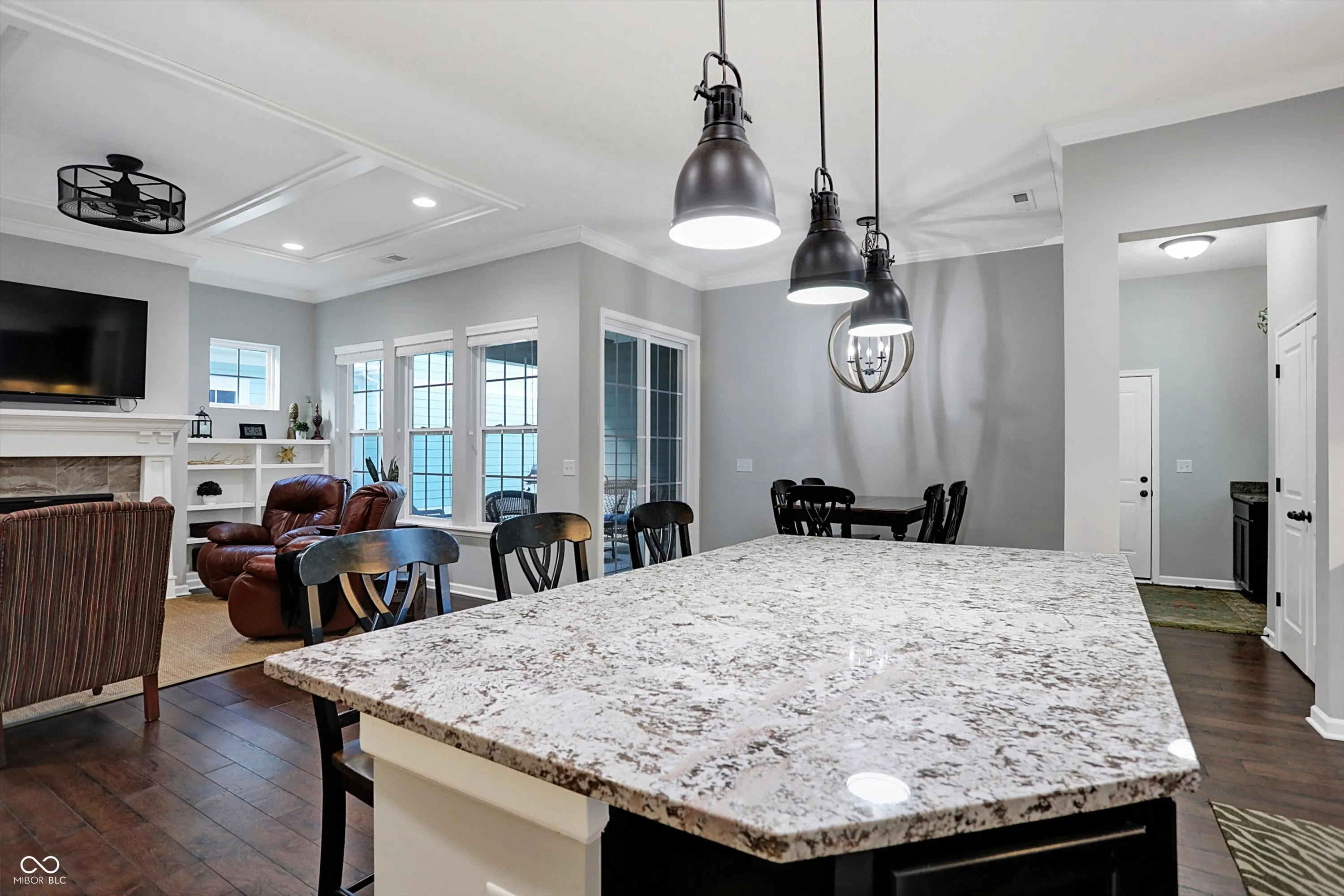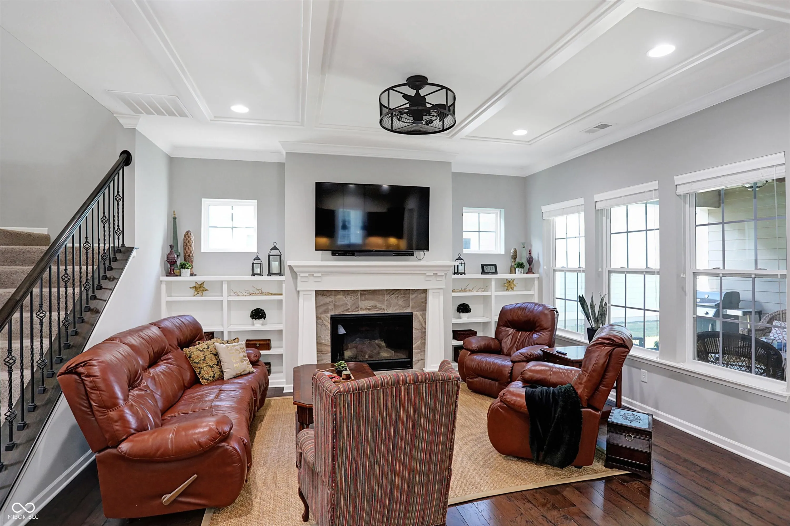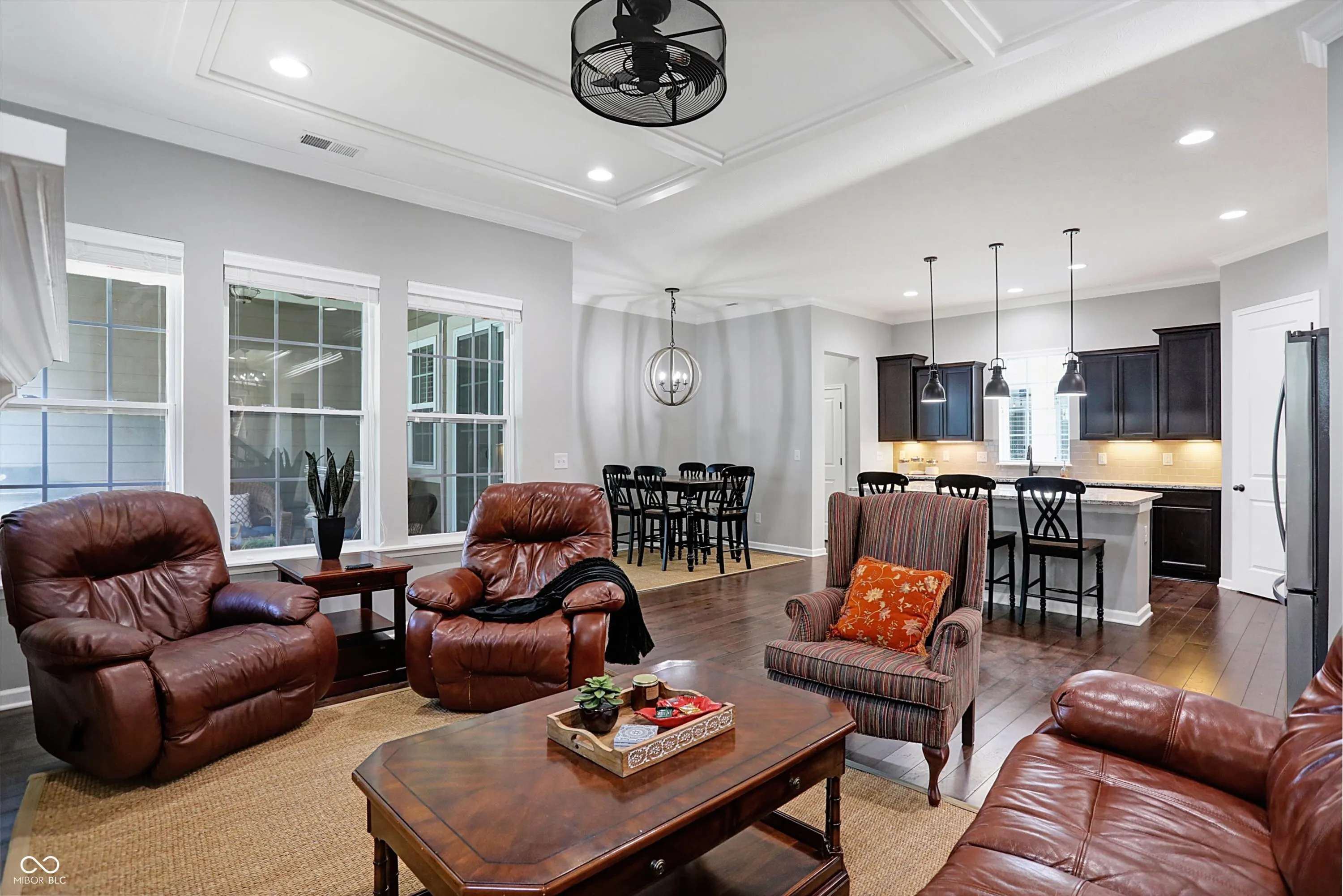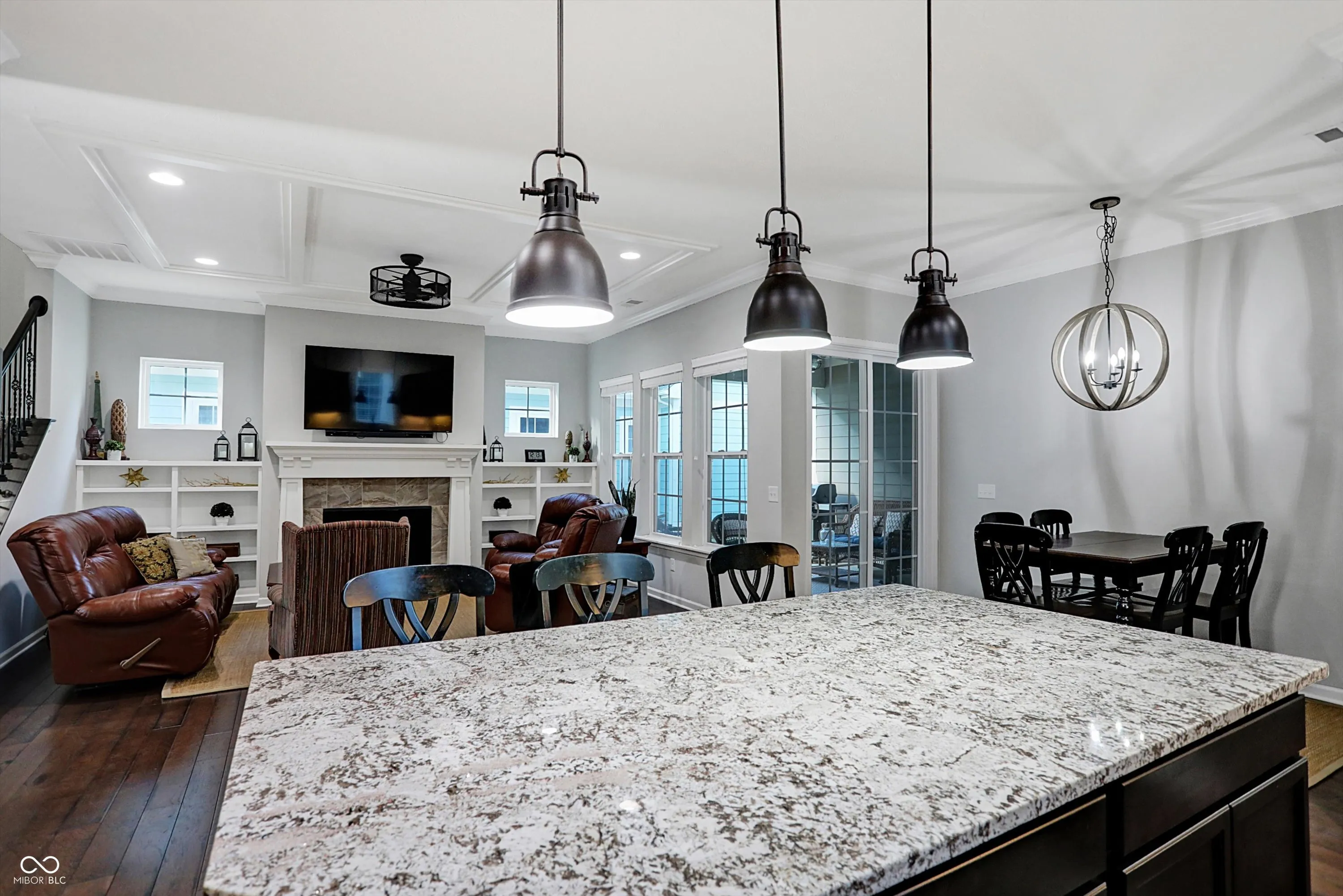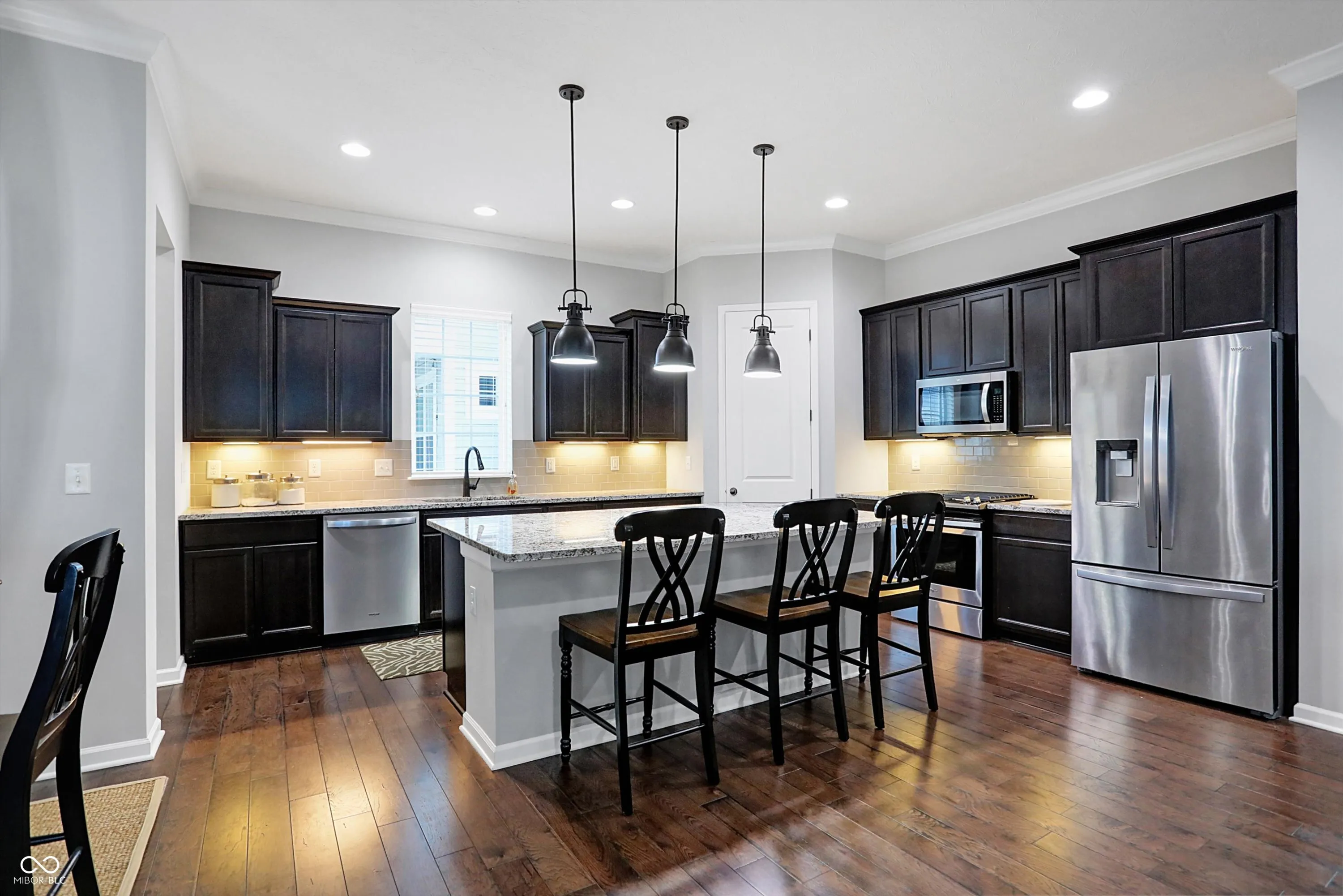 Discover the perfect home in Harmony, one of the area’s most popular communities. This Estridge built home boasts a primary main floor with hardwoods throughout, creating a grand and spacious feel. The spacious kitchen with quartz counter tops and a huge island that overlooks the family room with gas fireplace and built in shelves for a touch of luxury and comfort. Enjoy the outdoors with a covered patio right off the family room/ nook area. With three bedrooms upstairs and a flex room for crafts or storage, this home offers ample space and a 3 car garage with an epoxy floor Take advantage of the many amenities, including a pool, clubhouse, exercise room, dog park, basketball and tennis courts, and easy commute. Experience the perfect balance of comfort, convenience, and community – make this your new home!