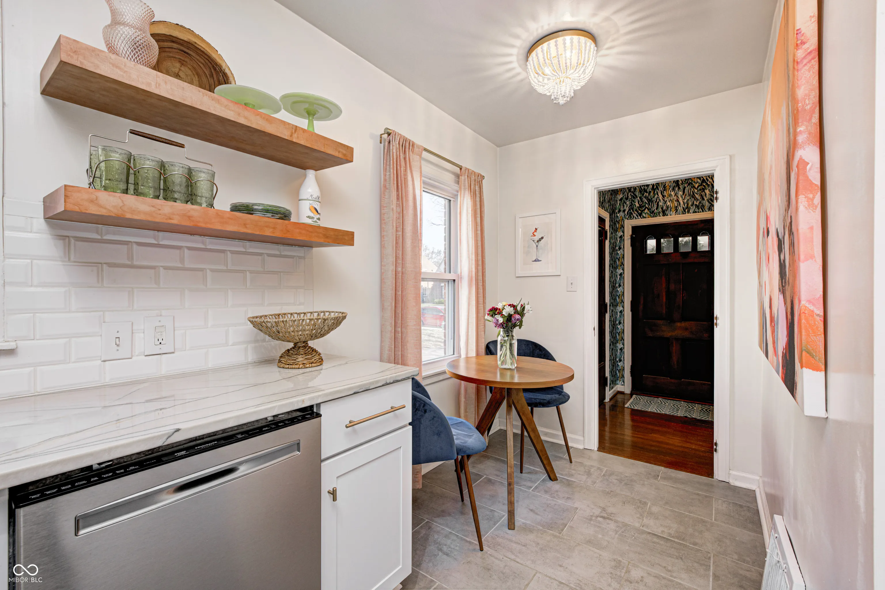 Beautiful new kitchen with quality cabinets, quartzites countertops, ceramic backsplash & floor, farm sink, SS Appliances & including a gas stove. Enter the front door into a small foyer, inviting you into a lovely LR with fireplace, or directly into the kitchen/breakfast area. The LR & DR connect by a large opening. The house circulates well. You will appreciate the charm or original hardwood floors & other 1940s details. The owner has chosen one of the 1st level bedrooms as the primary, the other as an office/den. The 3rd BR, located on the 2nd level, has an adjoining half bath & walk-in closet. You’ll enjoy the new spacious stamped concrete patio, the privately fenced backyard, landscaping. The front yard has an amazing mature Magnolia announcing the first days of Spring! Alternatively, the covered front porch offers additional outdoor space. Please note, there is a large attic which offers very compelling expansion possibilities, as well as a full, unfinished basement. The brick exterior and masonary garage keeps maintenance to a minimum. You will love living on this quiet Street and the neighbors residing there. It is MERIDIAN KESSLER!