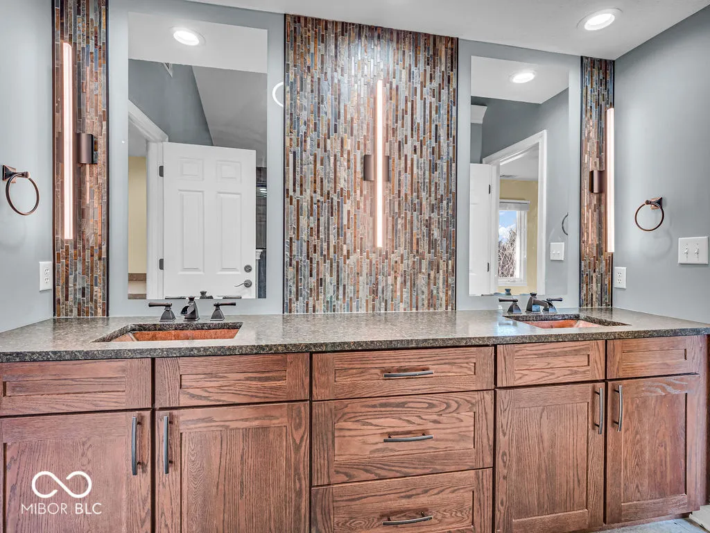 This stunning custom-built 5-bedroom, 4.5-bathroom home is located in the highly sought-after Delaware Trace neighborhood. Situated on nearly half an acre, this impressive property spans over 4,600 square feet and offers a perfect blend of luxury and functionality. The beautiful rear deck provides an ideal space for hosting gatherings with family and friends. The magnificent primary suite features a spacious, spa-like bathroom and an enormous walk-in closet, complete with a hidden room. The additional bathrooms are thoughtfully designed with elegant marble and copper finishes, adding a touch of sophistication throughout. The finished daylight basement is a versatile space, complete with a wet bar and plenty of storage, making it perfect for family activities or entertaining. Additional highlights include a brand-new furnace, a built-in speaker system, and a top-tier security system. Delaware Trace remains one of Carmel’s most desirable neighborhoods, offering excellent amenities (pool, walking paths, ponds, fountains, and common grounds) & a welcoming community. This home is a true gem-don’t miss the opportunity to make it yours!