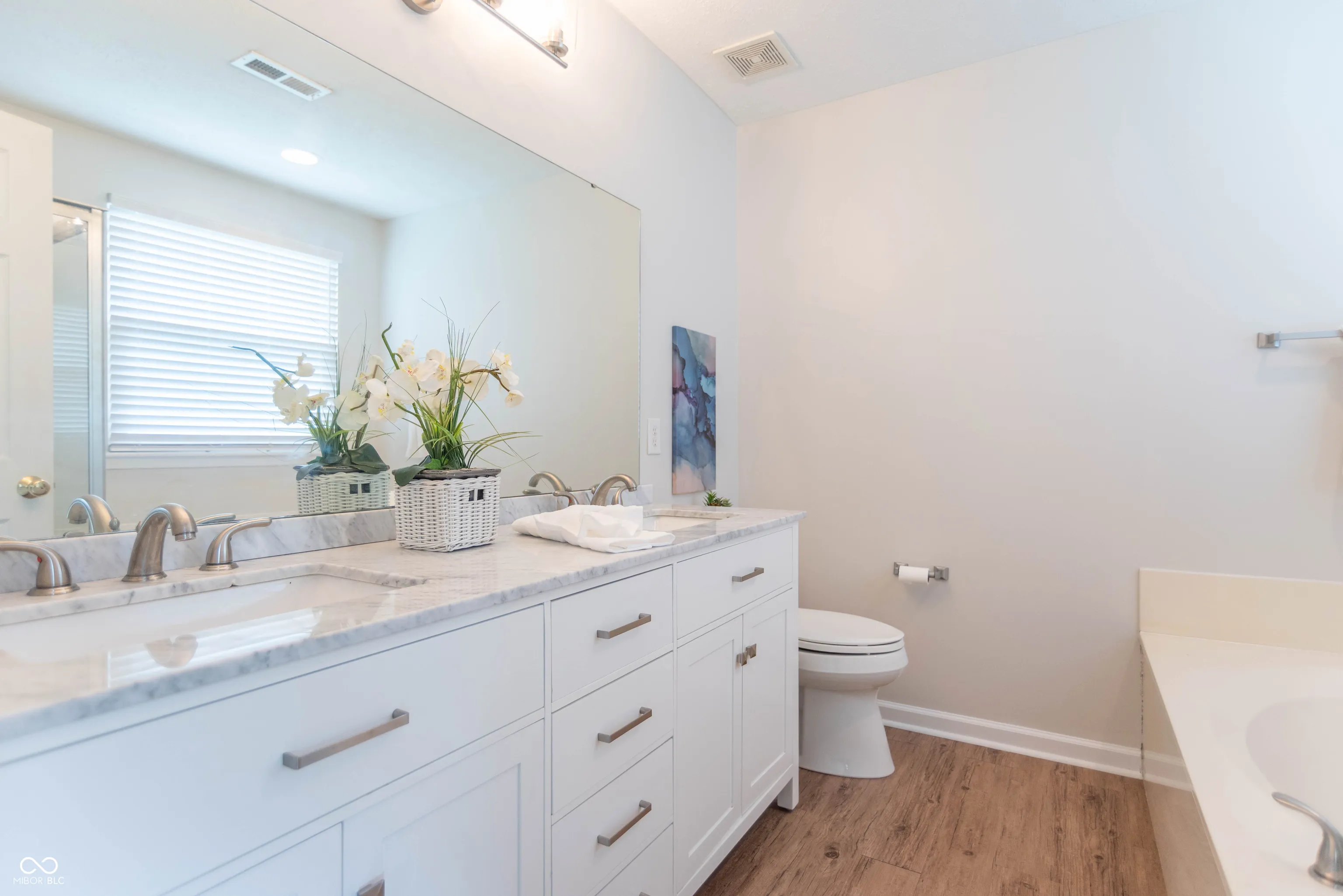 This updated home in Geist Overlook checks all the boxes. 3188 SF finished, 3258 SF total, 4 bedrooms, 3.5 baths, with a finished basement on a spacious lot. Updated kitchen incls , tasteful brown cabinets, granite countertops, center island and stainless steel appliances stay! Open floorplan you will love with open eating area and family room with handsome gas fireplace. Beautiful vinyl plank flooring on main floor; luxurious carpet upstairs. New Bee Windows and front doors have a lifetime warranty (xferrable for $800). Gobs of space to spread-out: Formal living room and cozy family room on main level + giant recreation room on lower level. Finished lower level is an entertainment dream! Pool table as the centerpiece with a wall mount fireplace, bar w/ sink and mini fridge, dartboard, full bathroom, built in cabinets area for home office and mechanical room. Gorgeous master suite has soaring ceilings, an en-suite bath with soaking tub, separate shower and dual vanity sinks. All 4 BBRs have walk-in-closets. Convenient 2nd floor laundry room … washer and dryer stay. Step outside to your large backyard – complete with an invisible fence, hot tub, deck, water feature and planters. Big 2-car garage with extra “bump out” storage space for your stuff and attic storage. Convenient items included are: Whole house security system (Vivint), water purifier, and humidifier, and an in ground sprinkler system (4 zones, 27 heads) computer controlled. Fresh paint, new blinds, updated fixtures, roof just 5 years old … this desirable home is ready to move-in and enjoy!