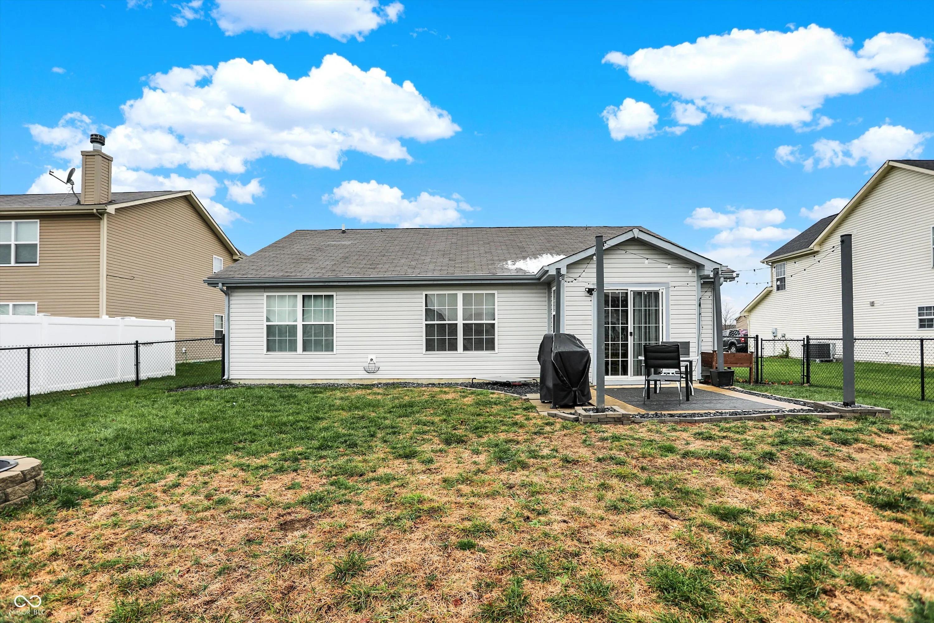 Step into this beautifully crafted ranch home, where one-story living is made simple and comfortable. Boasting 3 bedrooms and 2 full baths, this home is a perfect blend of smart design and cozy charm, catering to families and individuals alike. The covered front porch greets you with a warm welcome, setting the tone for the inviting interior. Inside, the main living space features a vaulted ceiling, creating a sense of openness and letting natural light flow freely throughout. The eat-in kitchen with a dining combo layout is both practical and stylish, offering plenty of space for meals, gatherings, and culinary creativity. The primary bedroom serves as a personal retreat, complete with a walk-in closet and a private bathroom outfitted with double sinks and a tub-shower combo. Two additional bedrooms are versatile and generously sized, perfect for guests, children, or a home office setup. The home also includes a laundry room, keeping chores simple and organized. Step outside to a fully fenced backyard with chain-link enclosure, providing a safe and spacious outdoor area for pets, kids, or gardening enthusiasts. From the thoughtful layout to the charming details like the vaulted ceiling and covered porch, this home is designed to make life easy and enjoyable. Don’t miss the chance to see it in person and schedule your showing today!