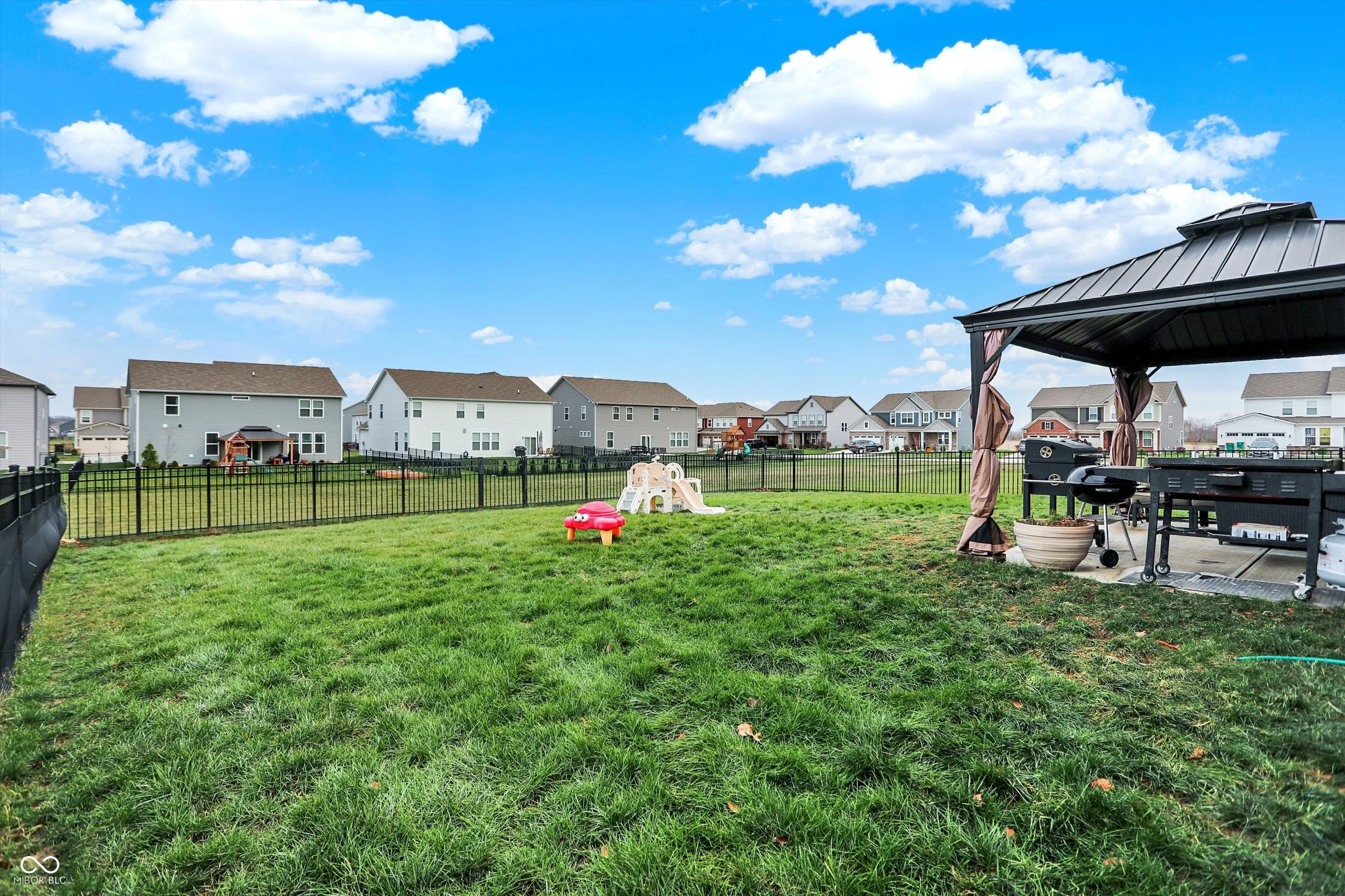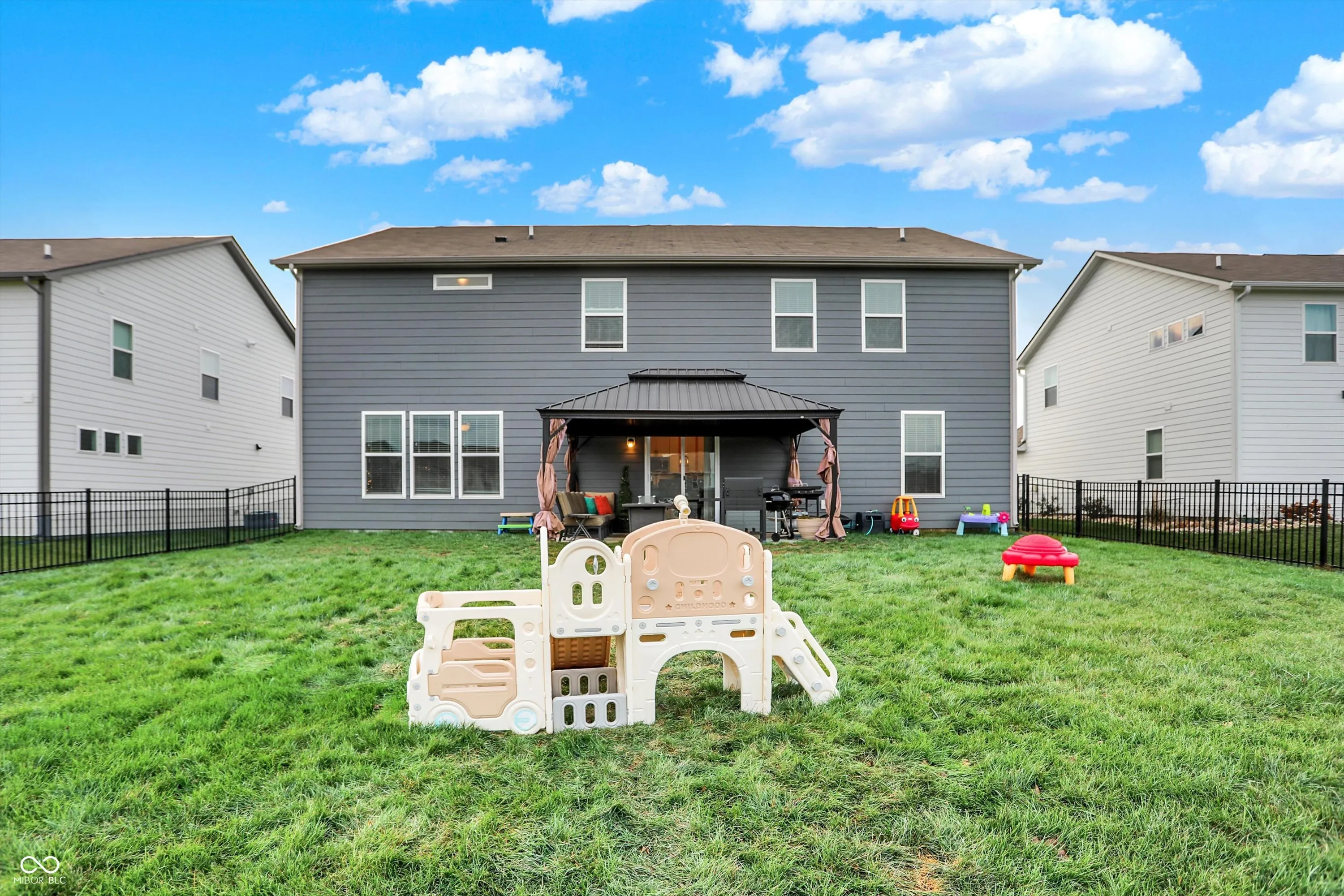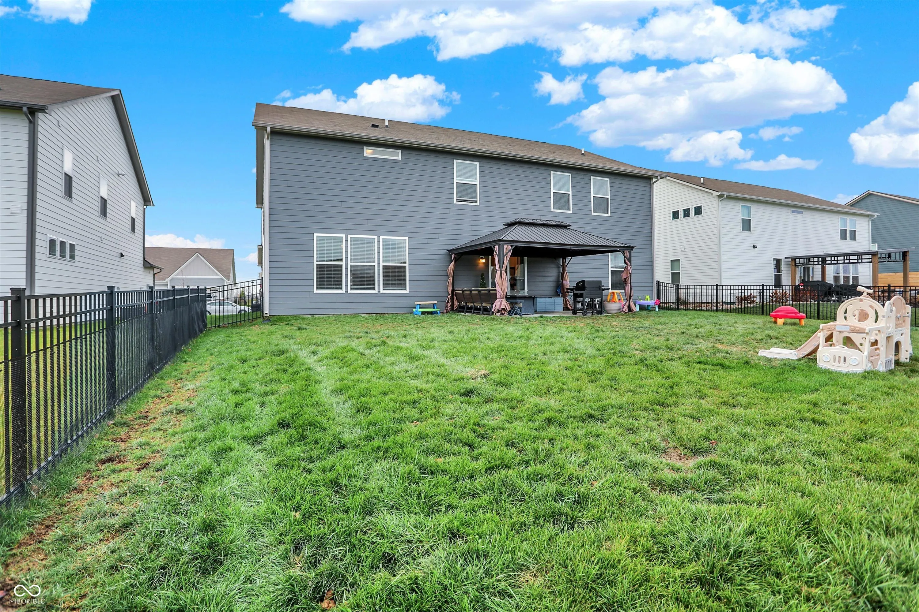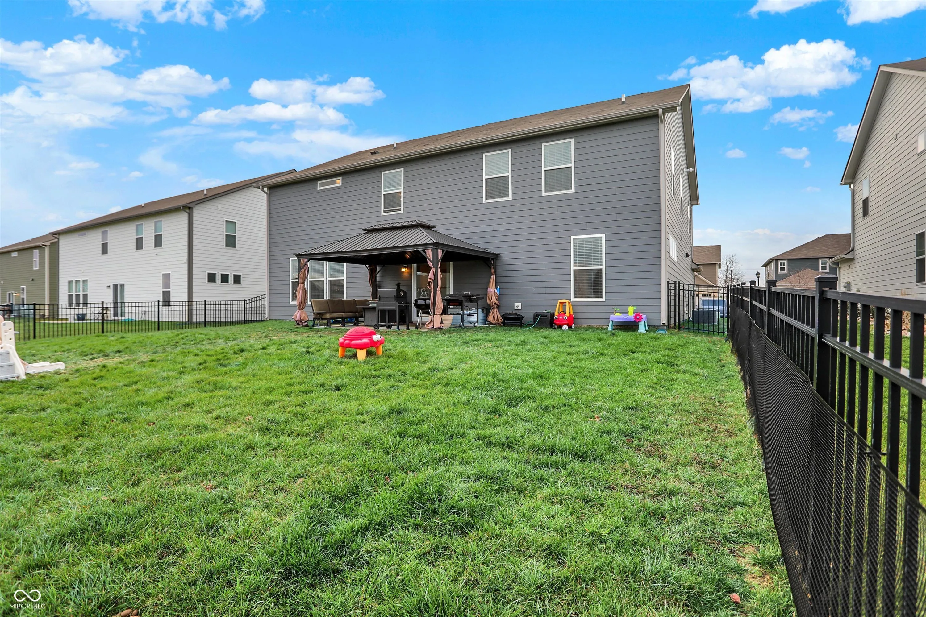 Lennar’s Rockwell D floor plan signature suite, original owners. Several Upgrades and all the extras. 5 BR’s – 4/1 BA, with over 3700 sq ft. Built in 2022. Bed on Main level with full bath; can be used as a mother-in-law or guest suite. Very Large Bedrooms upper level, the primary suite has a sitting area, and all beds have walk in closets. Homeowner has upgraded since moving in; fenced in back yard, gazebo, water softener, Key Doorbell w/ security system, blinds, Concrete driveway for 3rd parking spot in driveway, and new lighting.
