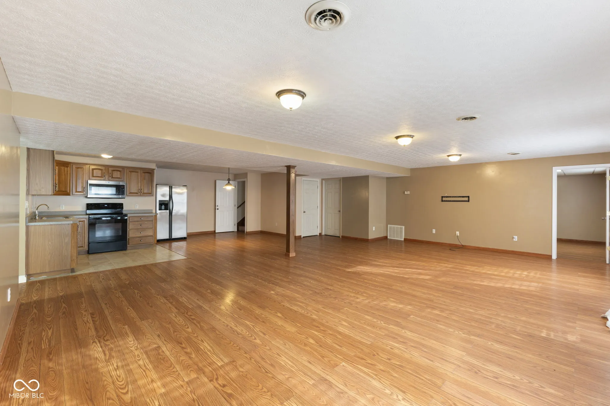 Appraised just under $400,000 – Welcome to this beautifully updated 5-bedroom, 3-bathroom home on a spacious half-acre lot, perfectly positioned just minutes from I-65, shopping, and dining. Fresh paint and new luxury vinyl tile flooring throughout create a bright and modern feel, while built-in closets in every bedroom provide plenty of storage. This home is designed for flexibility and comfort, featuring two full kitchens-one on the main level and one in the walkout basement-ideal for entertaining, in-law living, or multi-generational households. The finished basement also offers a large bonus room for a gym, craft space, or movie nights, plus a separate storage room to keep things organized. Step outside to the expansive back patio and concrete pad, perfect for relaxing evenings and outdoor gatherings.