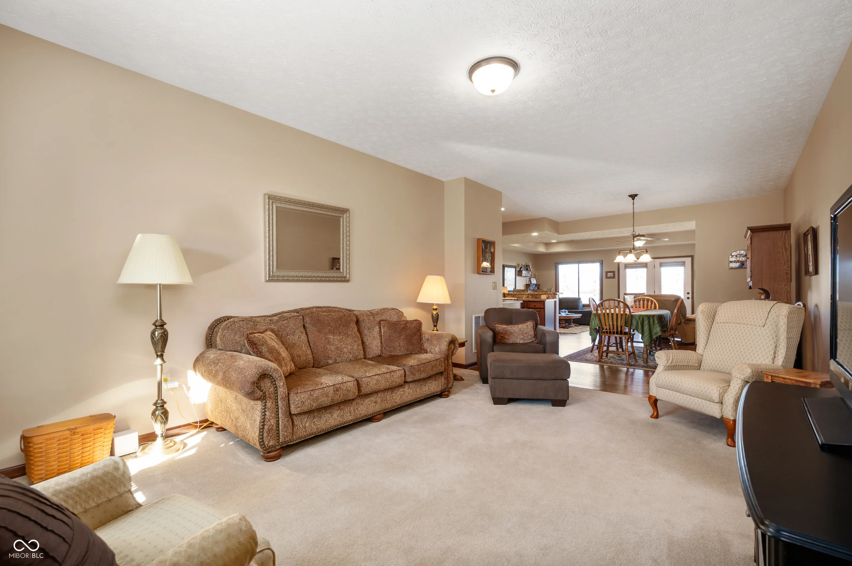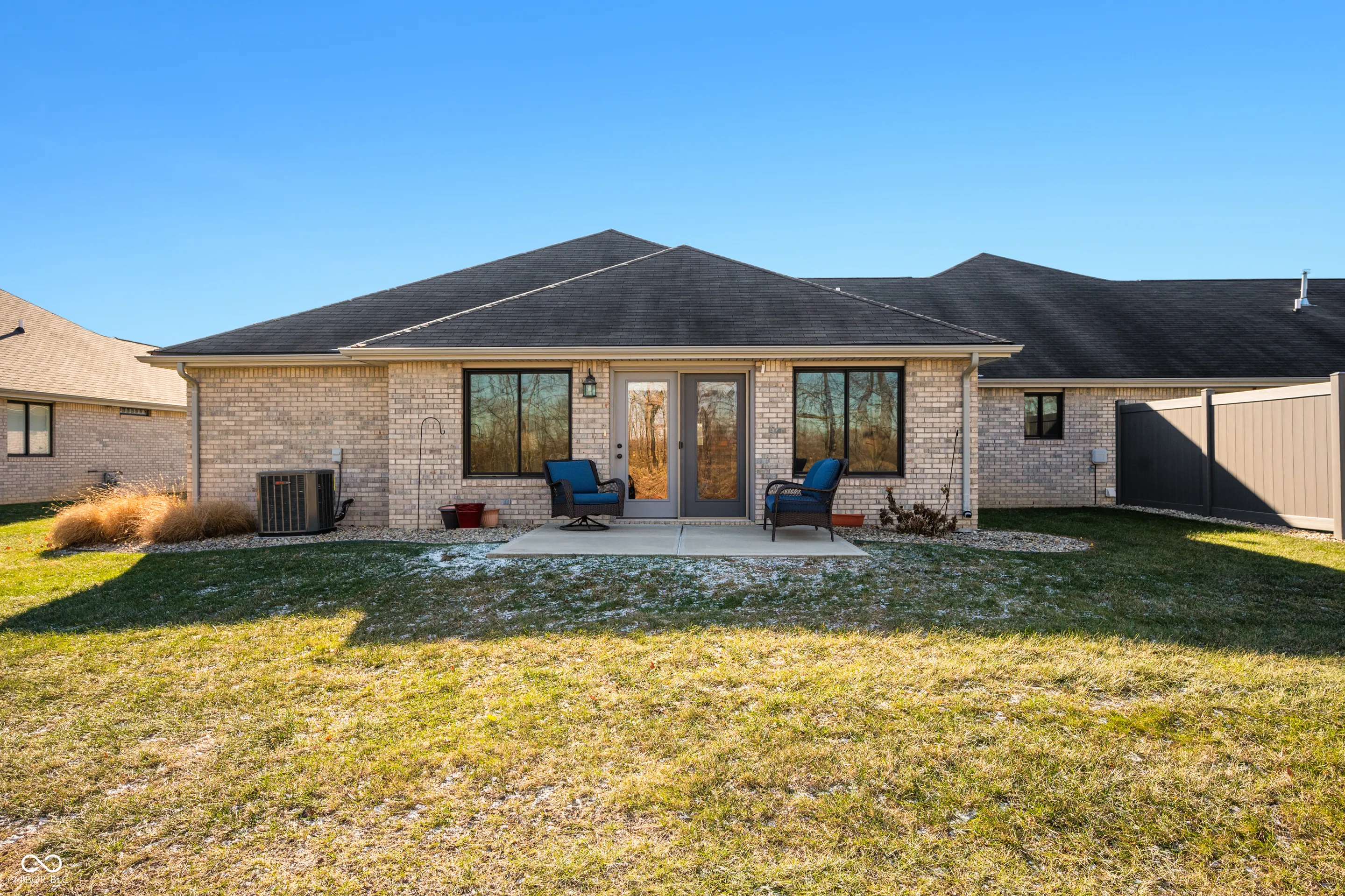Enjoy this Mustin-built open-concept home with tray ceiling! You will love this maintained condo-style living with easy access to Pendleton, and I-69 takes you quickly to Anderson or Fishers. The kitchen has pull out cabinets for convenience and a pantry.The laundry room on the main level with storage closet and includes washer and dryer.Gas furnace and central air are 1 year old. .Master bathroom has a nice tiled walk in shower, double sink vanity and a big walk in closet. This home has been recently painted inside. Great treeline behind the home. Nice concrete back patio and 2 car attached garage.