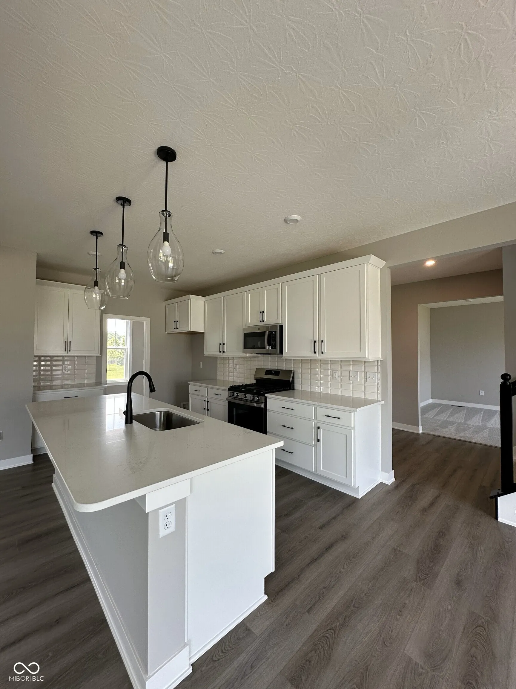 Trendy new Wyatt plan by Fischer Homes in the beautiful community of The Cove featuring a private 1st-floor study with double doors. Open concept with an island kitchen with stainless steel appliances, upgraded maple cabinetry with 42-inch uppers and soft close hinges, durable quartz counters, pantry, lots of cabinet space, and quartz countertops. walk-in pantry and walk-out breakfast room all open to the large family room with a gas fireplace. Tucked away 1st floor rec room. Upstairs owner’s suite with an en suite that includes a double bowl vanity, soaking tub, separate shower, linen, and walk-in closet. There are 3 additional bedrooms each with a walk-in closet, a centrally located hall bath, a large loft, and a convenient second-floor laundry room complete the upstairs. Full basement with full bath rough-in and an expanded 2-bay garage.
