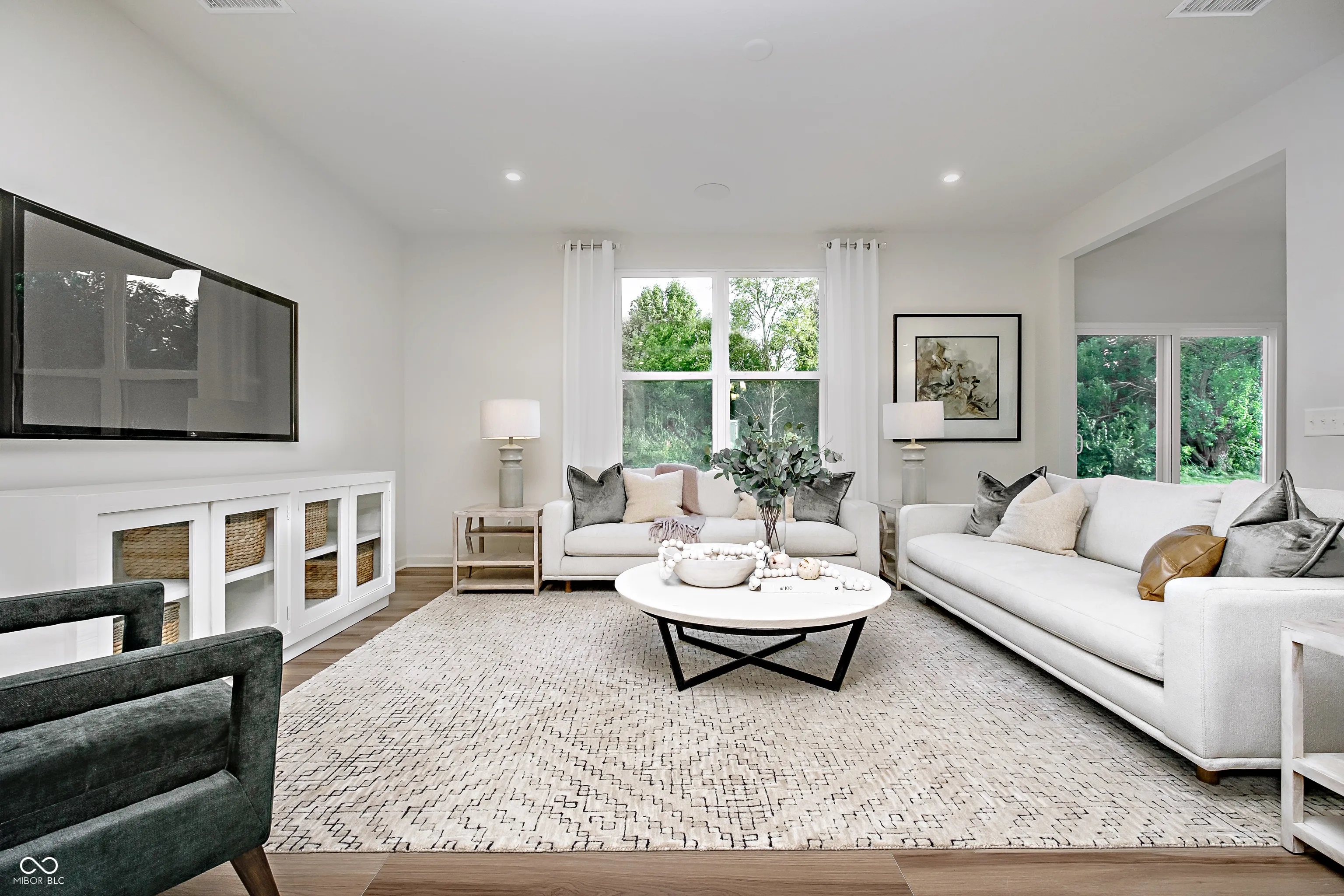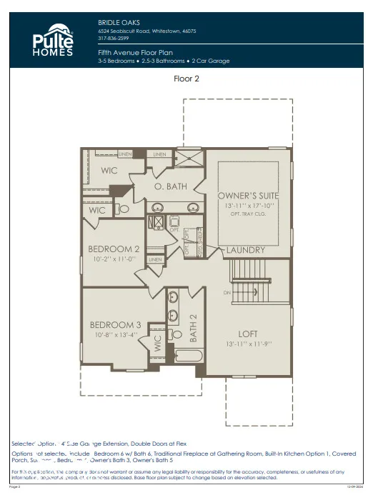 Welcome to the Fifth Avenue floorplan by Pulte Homes, located in the serene Bridle Oaks community. Set on a desirable cul-de-sac homesite that backs up to a peaceful berm, this home offers both privacy and convenience. The modern kitchen features 42-inch cabinets, white quartz countertops, gas stainless steel appliances, a spacious island, and a pantry. The kitchen flows seamlessly into the cafe dining area and gathering room, creating an ideal space for entertaining or everyday living, with easy access to the back patio for outdoor relaxation. The main level includes a private flex room with doors, a Pulte Planning Center for organization, and an Everyday Entry for effortless transitions. Elegant wrought iron spindles and luxury vinyl plank flooring complement the 9-foot ceilings, adding to the home’s contemporary appeal. Upstairs, the owner’s suite provides a luxurious retreat with a tray ceiling, a bathroom featuring a comfort-height vanity with double sinks, quartz countertops, tiled shower walls, and a spacious walk-in closet. Two additional bedrooms, each with its own walk-in closet, share a hall bathroom with a double-sink vanity. A versatile loft and a convenient upstairs laundry room complete the second floor. With a 4-foot side garage extension for added storage or workspace, the Fifth Avenue floorplan offers thoughtful design, modern finishes, and a layout that perfectly balances style and functionality.Enjoy direct access to the Big 4 Rail Trail, playgrounds, and scenic ponds, ensuring leisure and recreation are always within reach. The Shoppes at Whitestown, just 3 miles away, and the vibrant Downtown Indianapolis, only a 30-minute drive, offer convenience and a plethora of entertainment options. With easy access to I-65 and I-465, commuting is effortless, while Main Street Park provides additional recreational opportunities, making Bridle Oaks the epitome of convenience and community charm.