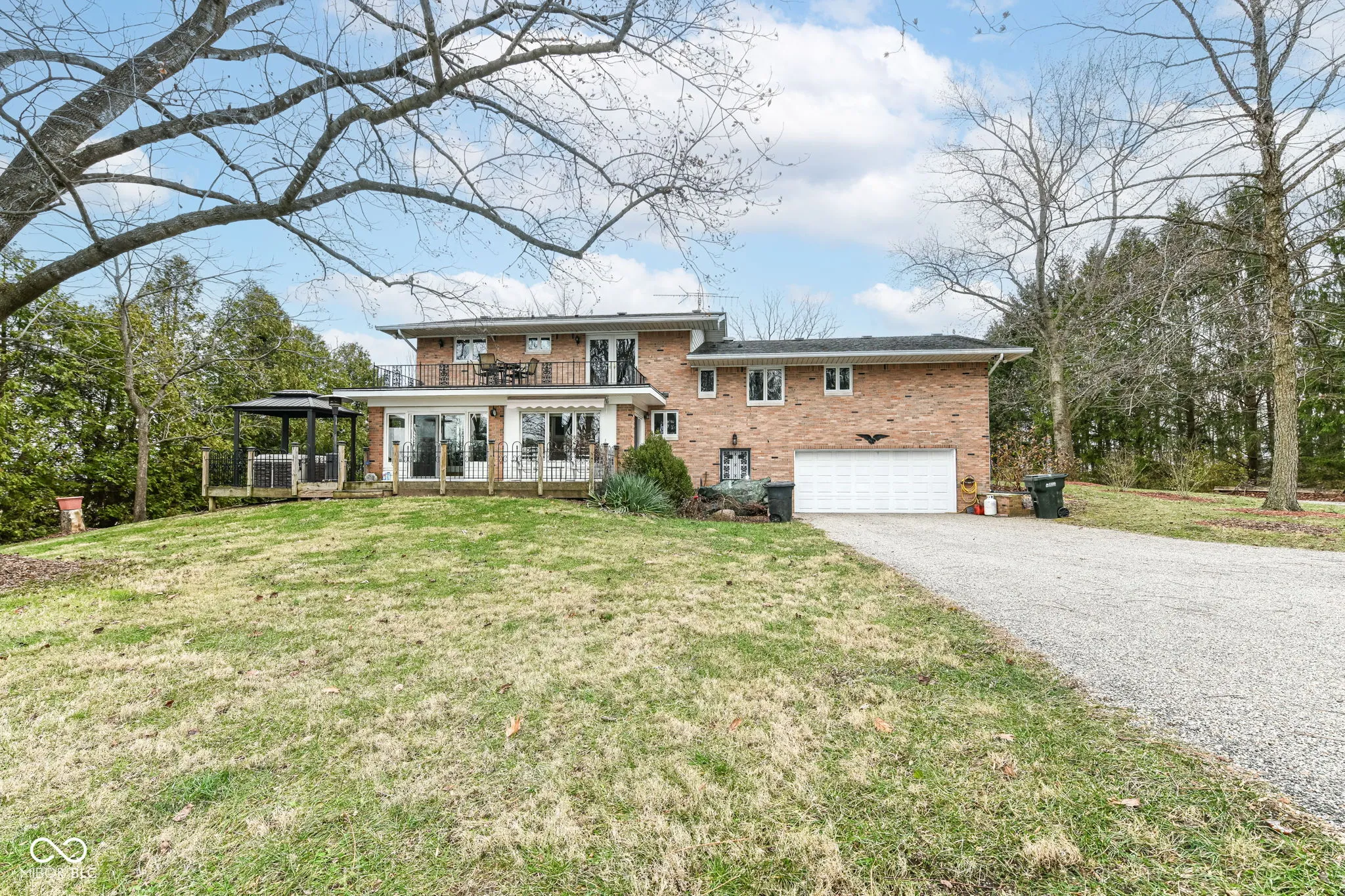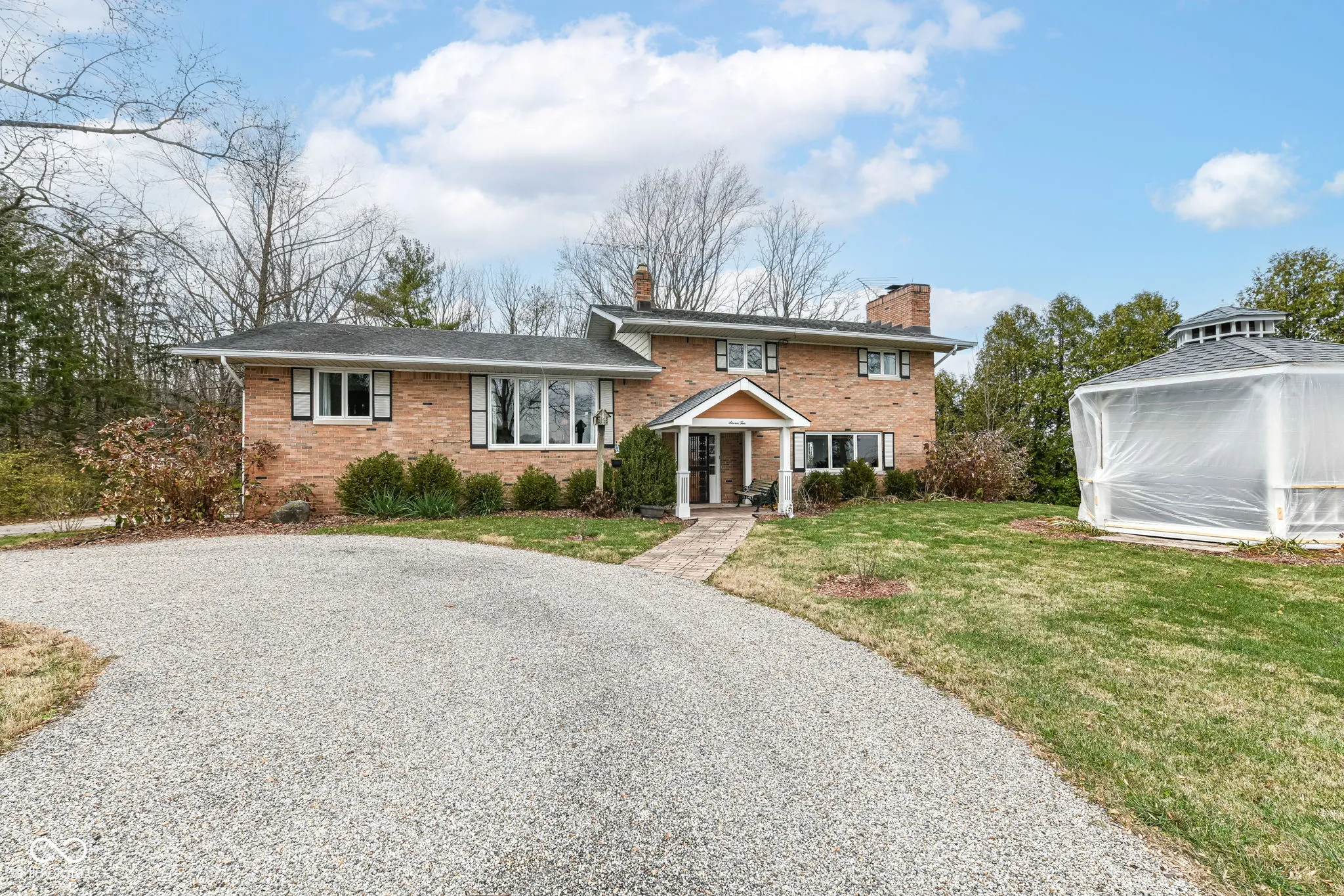 HIDDEN PARADISE! LOOKING FOR COUNTRY LIVING WITH PRIVACY? Look no further! Beautifully updated 5 bdrm/3+bath large multi level family brick home situated on almost 3 picturesque acres. Home is secluded and is hidden by tree lined driveway and has a security gate access. Upon entering the home, you will notice all of the features this home has to offer including the large hearth room w/ fireplace, primary suite that overlooks the back yard with private access to the enclosed sun room, plus full bath with tiled shower. You will enjoy cooking in the gourmet kitchen with white cabinetry, center island, breakfast bar, upgraded lighting, breakfast area, appliances included + separate formal dining room with additional great room for entertaining + half bath. Upper level features 4 spacious bedrooms (one bedroom has a private deck access & can be used as a home office) + full bath with double sinks, tub shower combo. The extended laundry room includes extra cabinetry with counter top for folding, wash tub & a corner shower stall conveniently located next to the oversized 2 car garage. Exterior amenities include the lighted gazebo & 2 storage barns. Schedule your tour today. You won’t be disappointed.