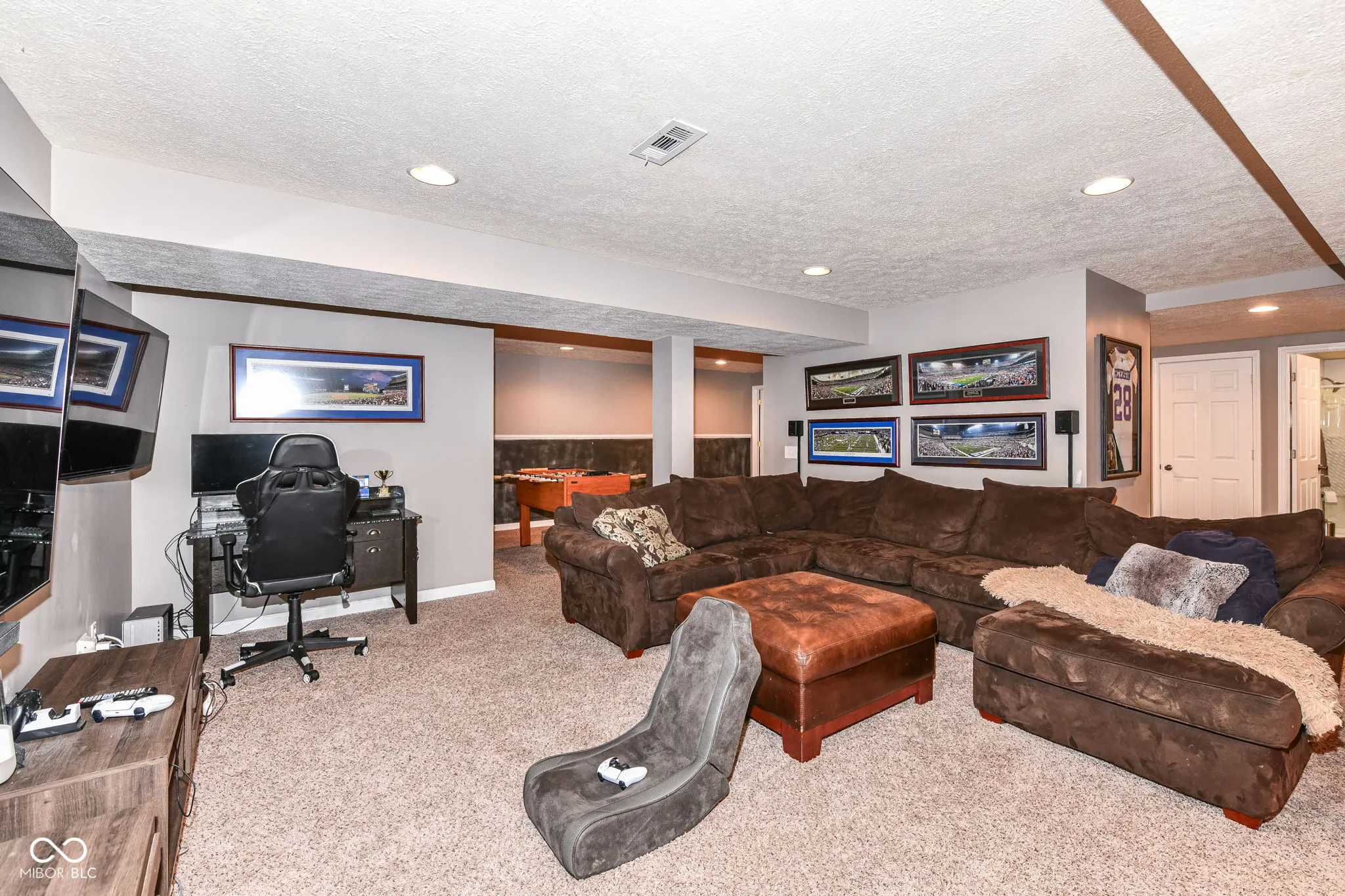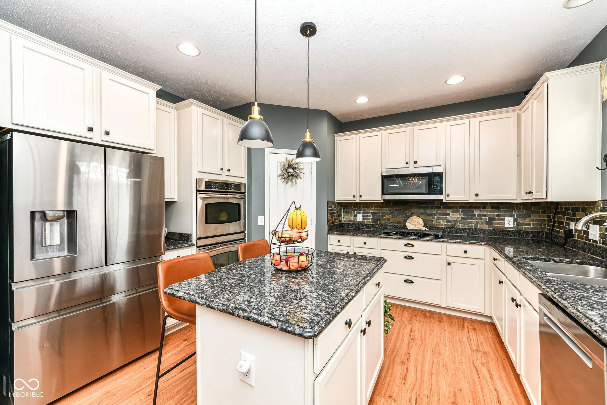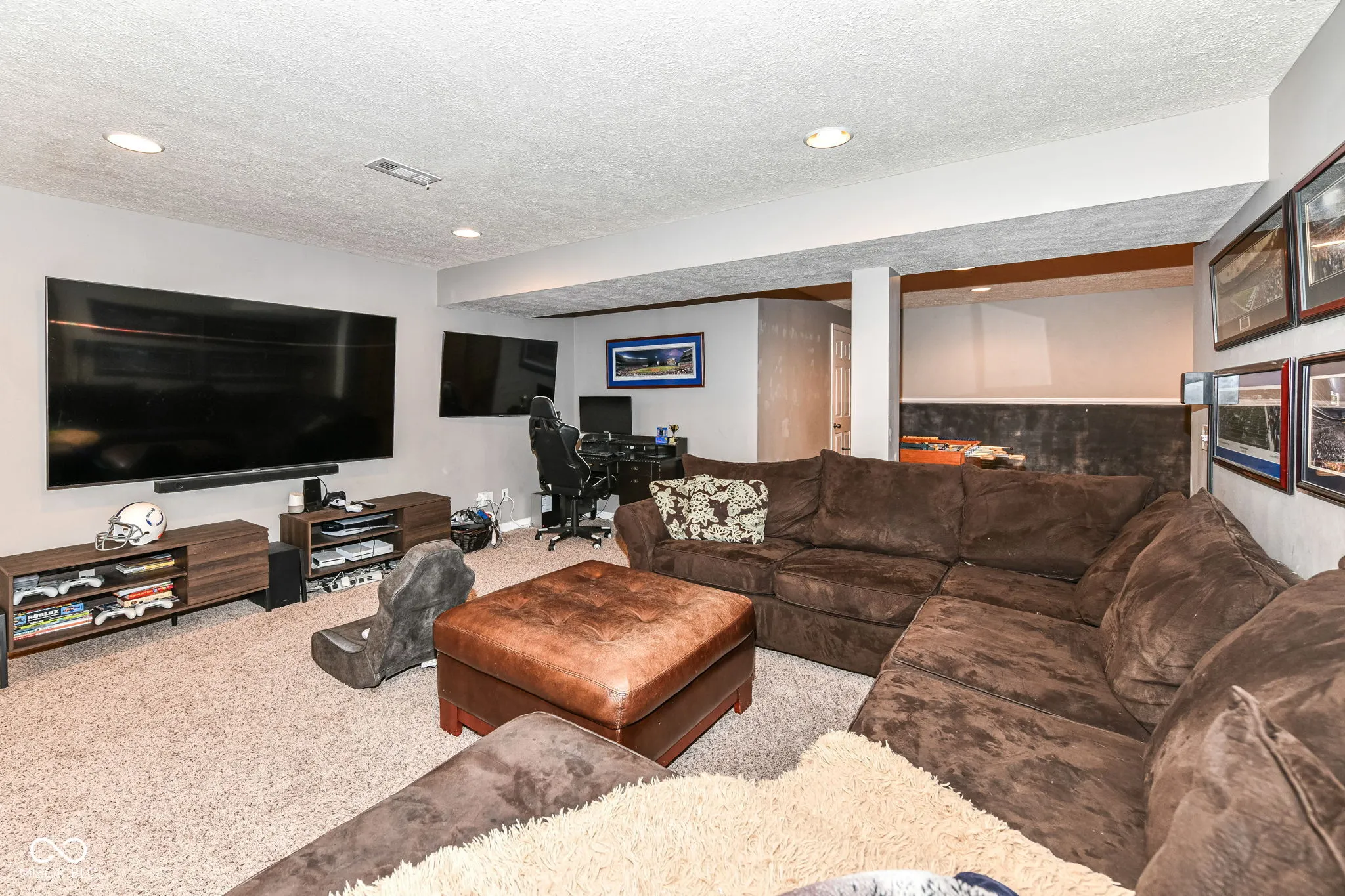 Welcome to this great home in Claybourne with all the must haves: 5 bedrooms, 3.5 bathrooms, finished basement & a 3 car garage! Main level features a 2-Story entry, 9′ ceilings office & dining room for extra entertaining space. Spacious family room with gas log fireplace. Eat-in Kitchen with granite countertops, stainless steel appliances with double ovens, tile backsplash, pantry & center island. Exterior features screened in patio, deck, fire pit & mature trees. Brick and cement board siding. Primary Suite with tray ceiling, walk-in closet, double sinks, garden tub with separate shower. Full FINISHED basement with bedroom, rec rooms, wet bar, full bathroom & storage! Pool table and foosball table included! Full yard irrigation system. Dog Guard invisible fencing. Finished garage with pull down attic stairs & extra storage space. Recent improvements include: new furnace, A/C (2023), water heater (2020), carpet on stairs & LVP upstairs (2022), new roof & exterior painting (2017). Neighborhood amenities include large heated pool & kiddie pool, playground, acres of common area & miles of trails. Located just minutes away from schools, shopping, restaurants & easy access to US 31 & 465. This one checks all the boxes!