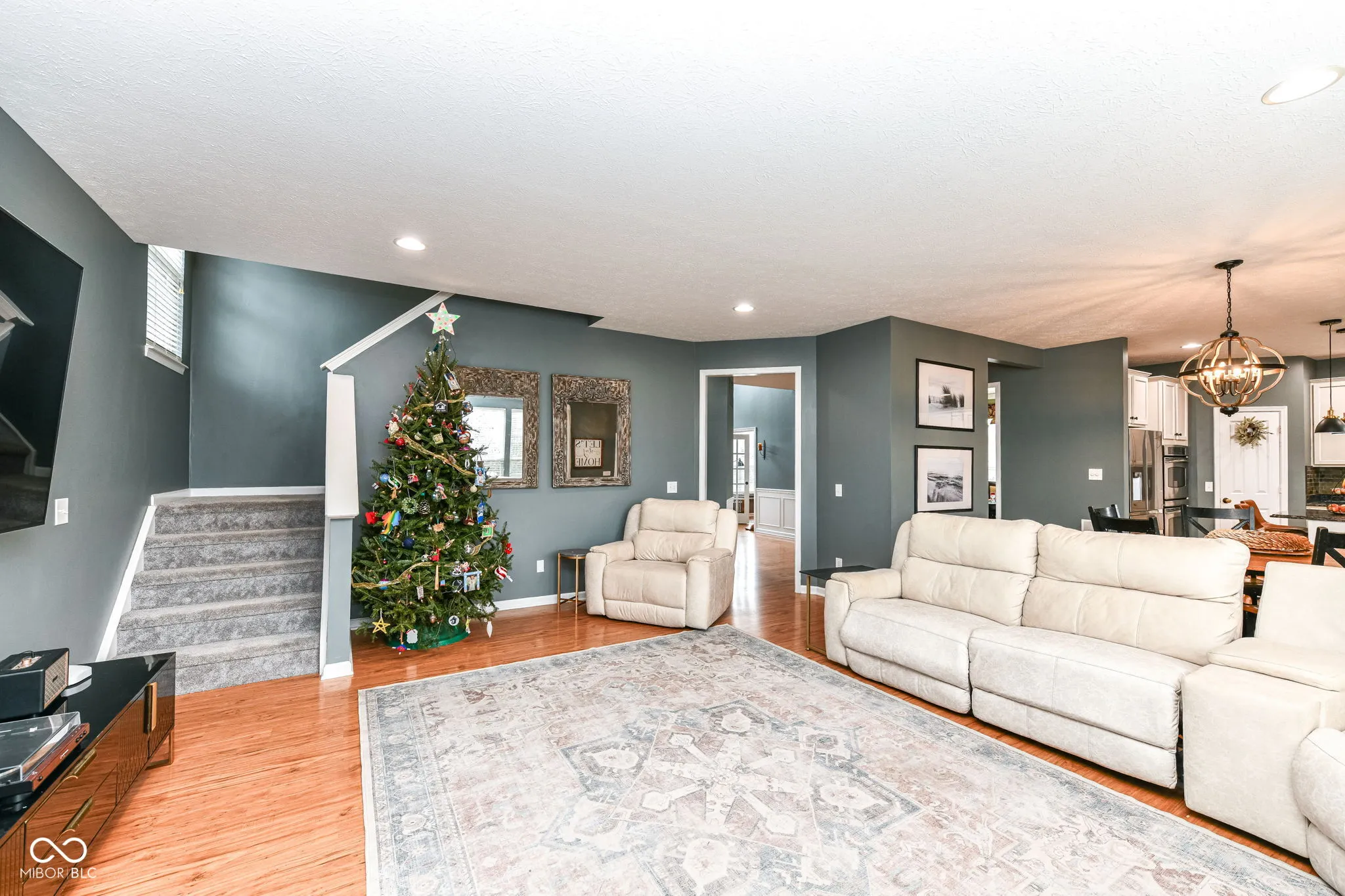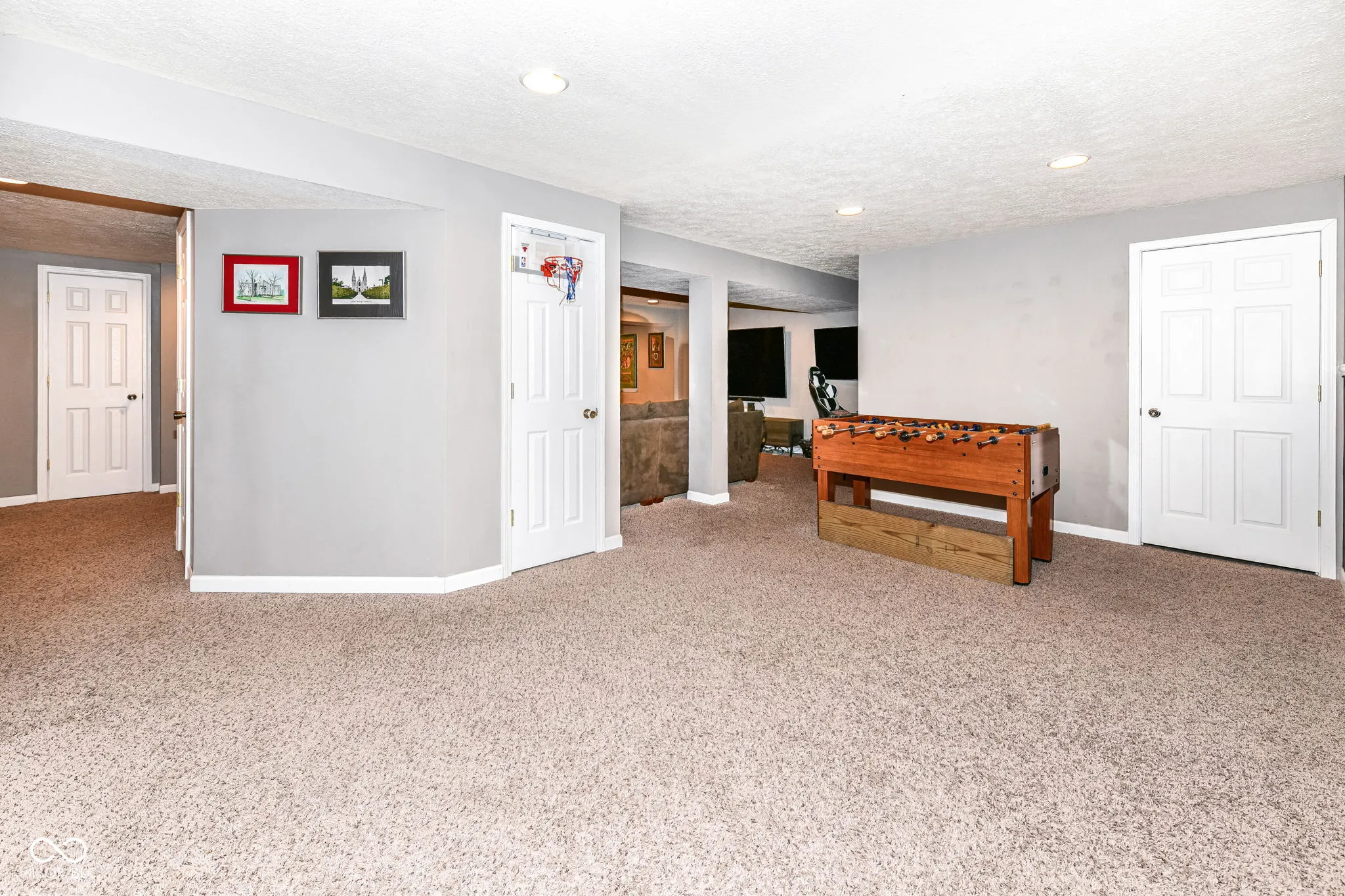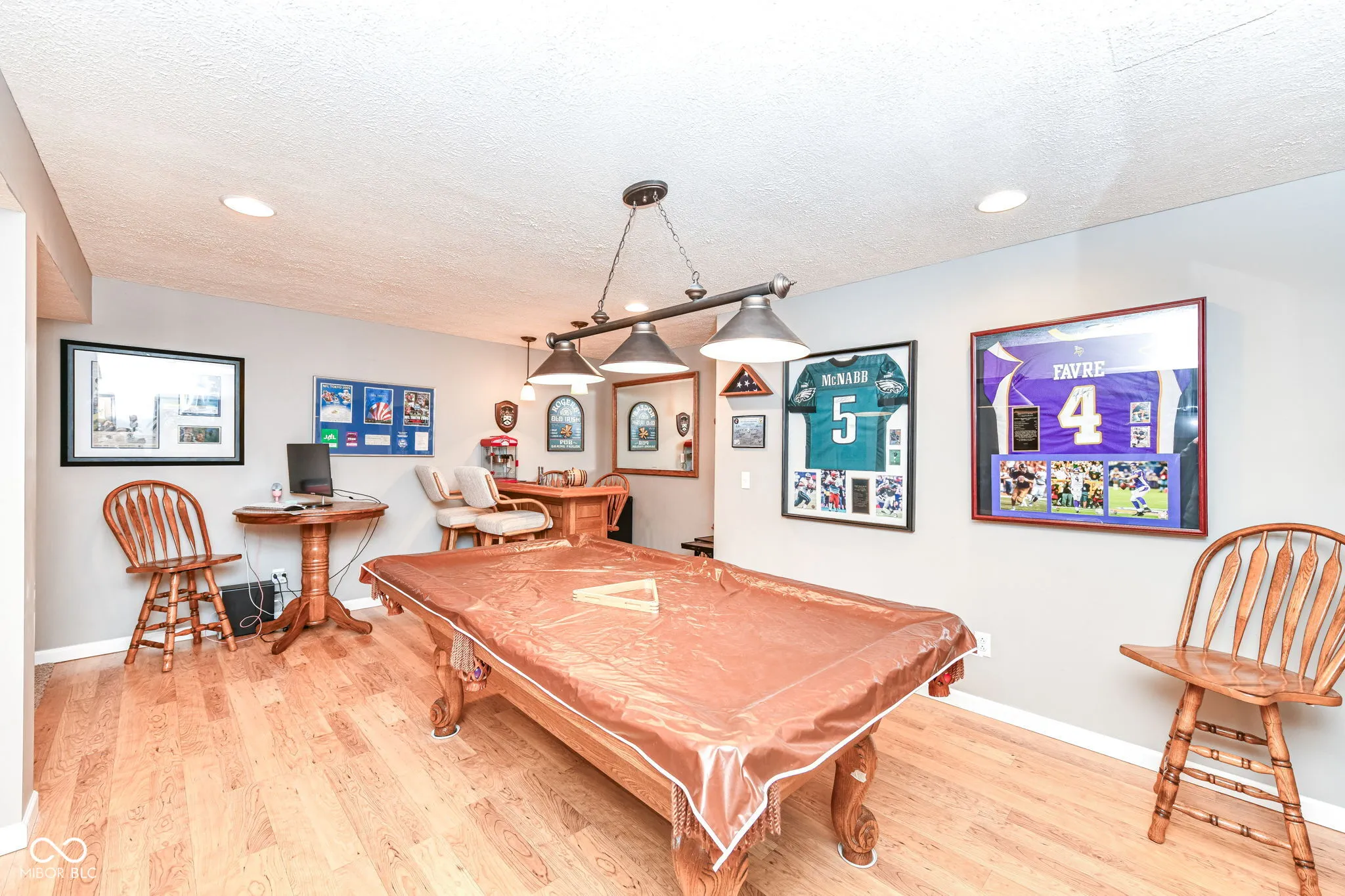 Welcome to this great home in Claybourne with all the must haves: 5 bedrooms, 3.5 bathrooms, finished basement & a 3 car garage! Main level features a 2-Story entry, 9′ ceilings office & dining room for extra entertaining space. Spacious family room with gas log fireplace. Eat-in Kitchen with granite countertops, stainless steel appliances with double ovens, tile backsplash, pantry & center island. Exterior features screened in patio, deck, fire pit & mature trees. Brick and cement board siding. Primary Suite with tray ceiling, walk-in closet, double sinks, garden tub with separate shower. Full FINISHED basement with bedroom, rec rooms, wet bar, full bathroom & storage! Pool table and foosball table included! Full yard irrigation system. Dog Guard invisible fencing. Finished garage with pull down attic stairs & extra storage space. Recent improvements include: new furnace, A/C (2023), water heater (2020), carpet on stairs & LVP upstairs (2022), new roof & exterior painting (2017). Neighborhood amenities include large heated pool & kiddie pool, playground, acres of common area & miles of trails. Located just minutes away from schools, shopping, restaurants & easy access to US 31 & 465. This one checks all the boxes!