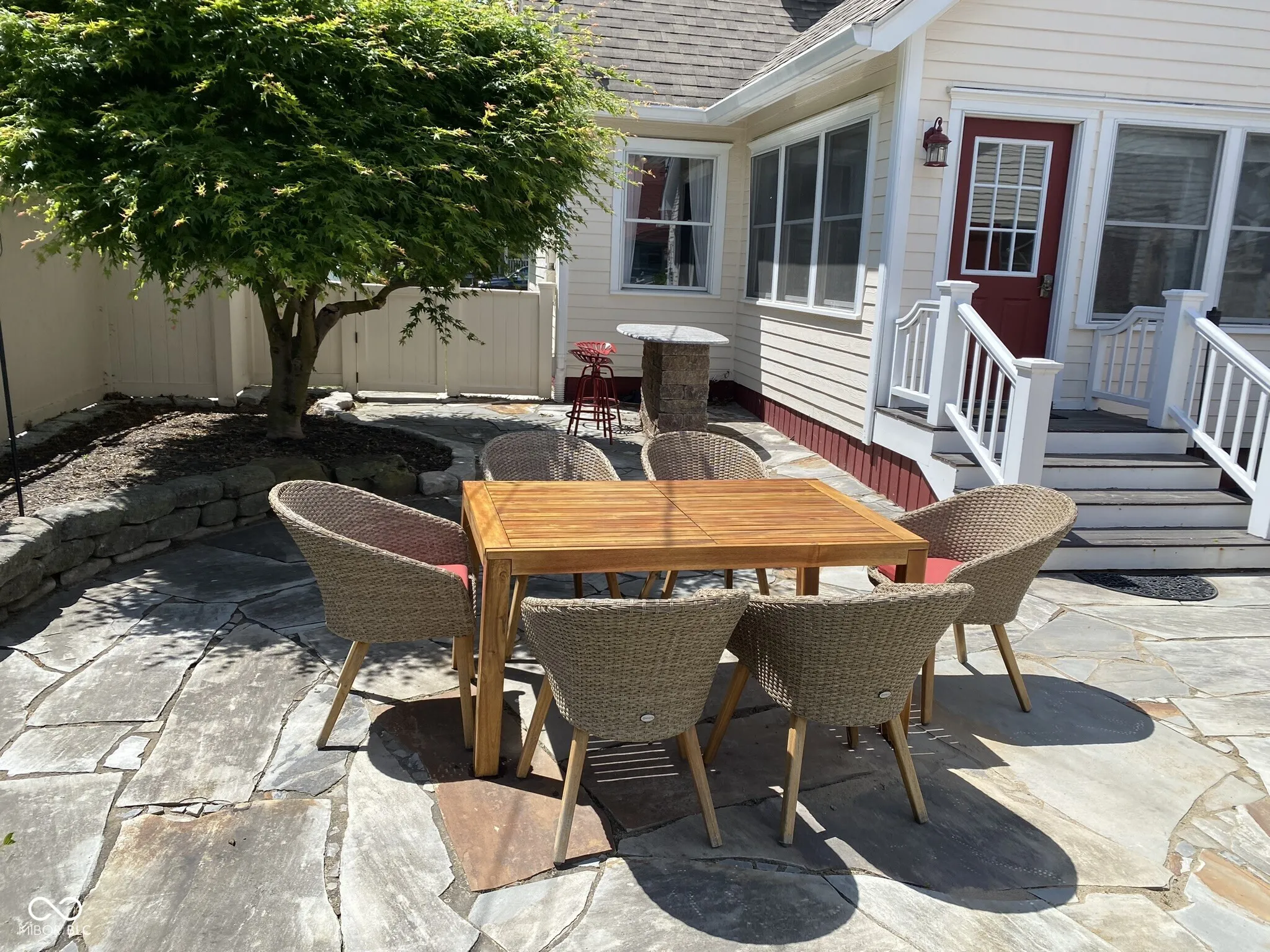 Capture the energy, excitement and convenience of living in the heart of the Carmel Arts & Design District. This is a Fully Furnished, Utilities Included, Month to Month rental home with 31 days minimum Lease. One block from the Monon Trail and restaurants, this 1920 historic home comes draped in beautiful woodwork featuring today conveniences and amenities, open floor concept, rich hardwood floors, vaulted and wood accented ceilings, updated open kitchen with island and adjacent sun/dining room, main level laundry and storage room along with basement storage area. Enter through the furnished front porch, with the convenience of a walk-in coat closet. The vaulted first floor family and middle room are adjacent to the kitchen and have hallway access to the bathroom, main bedroom and closet, with additional storage in a separate cabinet closet. A custom wood staircase leads to the upper level with 3 sizable bedrooms with adjacent office/homework space and a full bathroom. The outdoor living area comes with furniture, marble top bar, grill and a private fully fenced back yard ideal for entertaining. The home comes with 1 garage space and driveway parking, in addition to free public covered garage and street parking. Immaculate condition with new furniture, updated appliances and additional features including new HVAC system and dehumidifier ensuring comfort, Hi-speed 500 Mbps internet, TV and stereo systems. Pets subject to individual approval, fees & deposits.