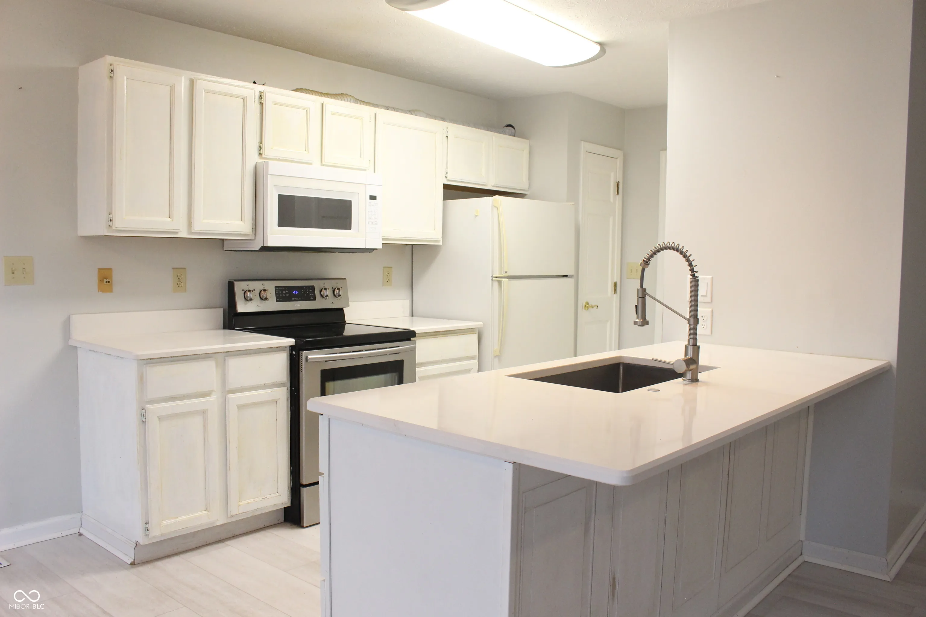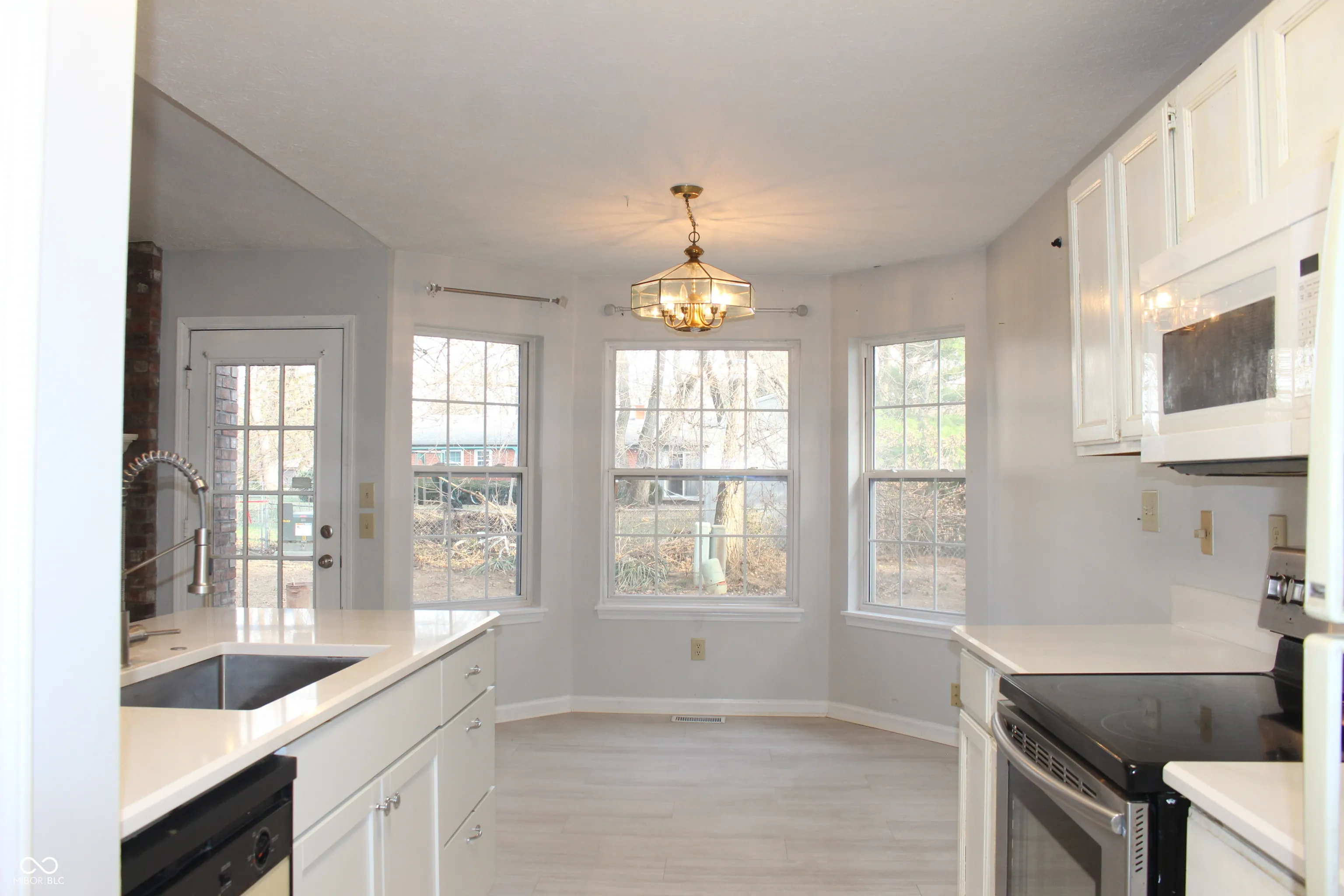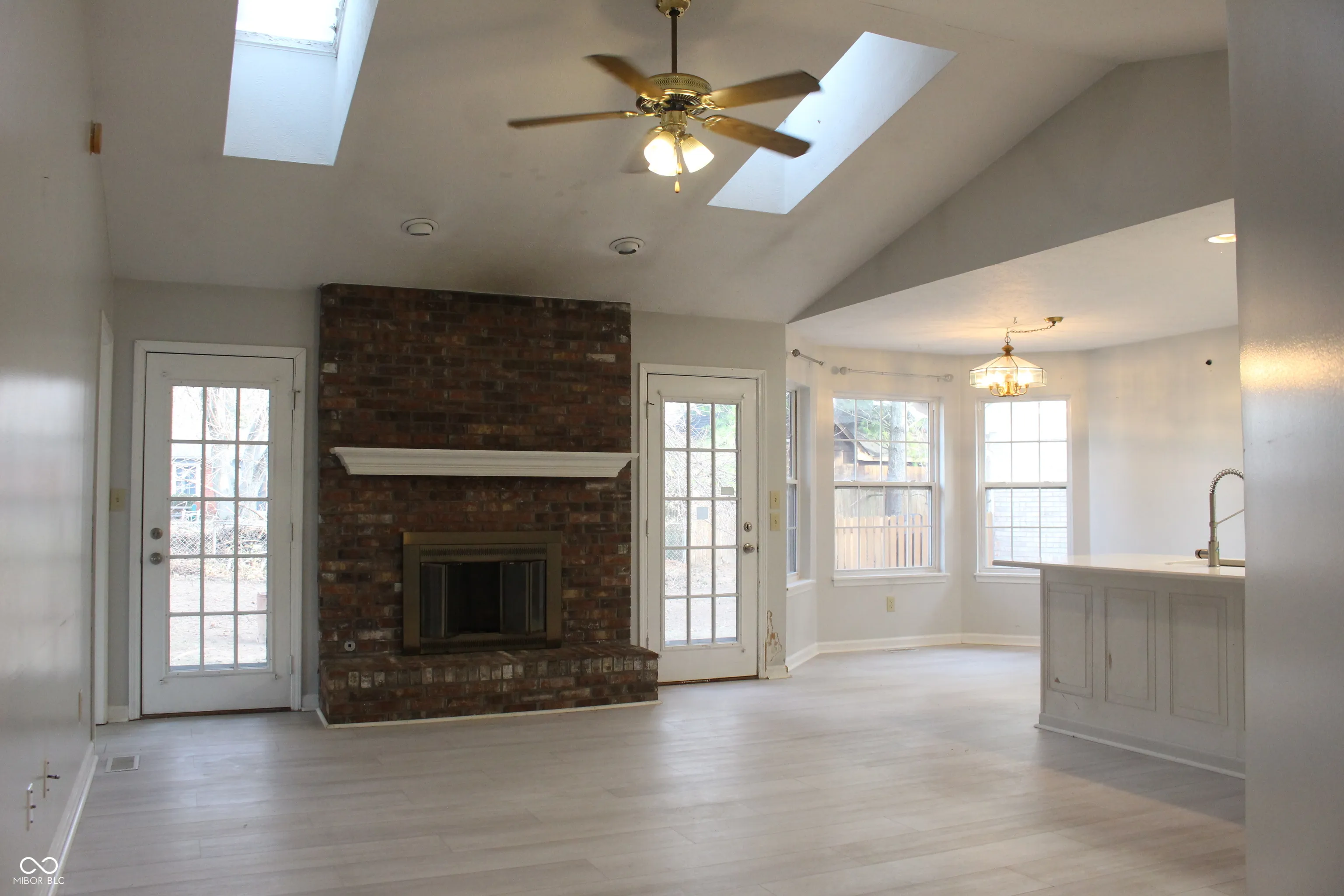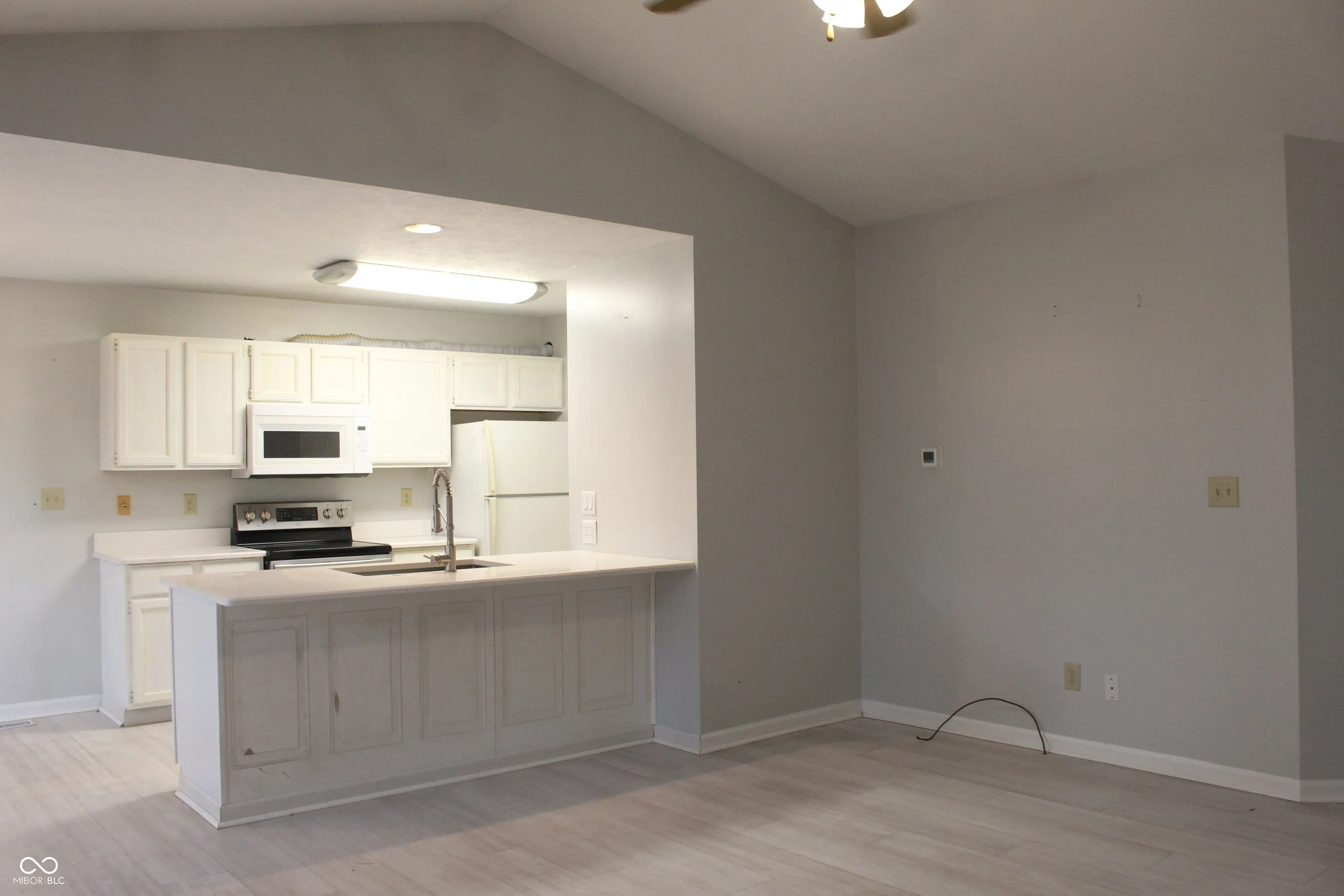 Nice open floor plan! Great room with vaulted ceiling, skylight and gas fireplace. Nice nook with bay window. Galley kitchen. Vaulted ceiling in primary bedroom with full bath. Great location, close to downtown and interstate 69. Great schools and shopping nearby.