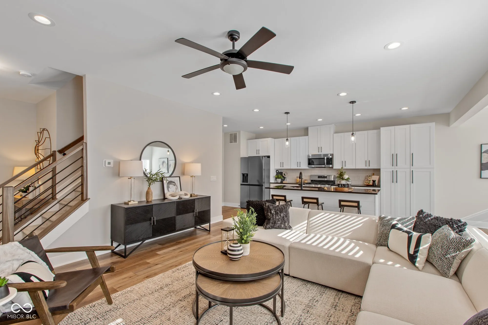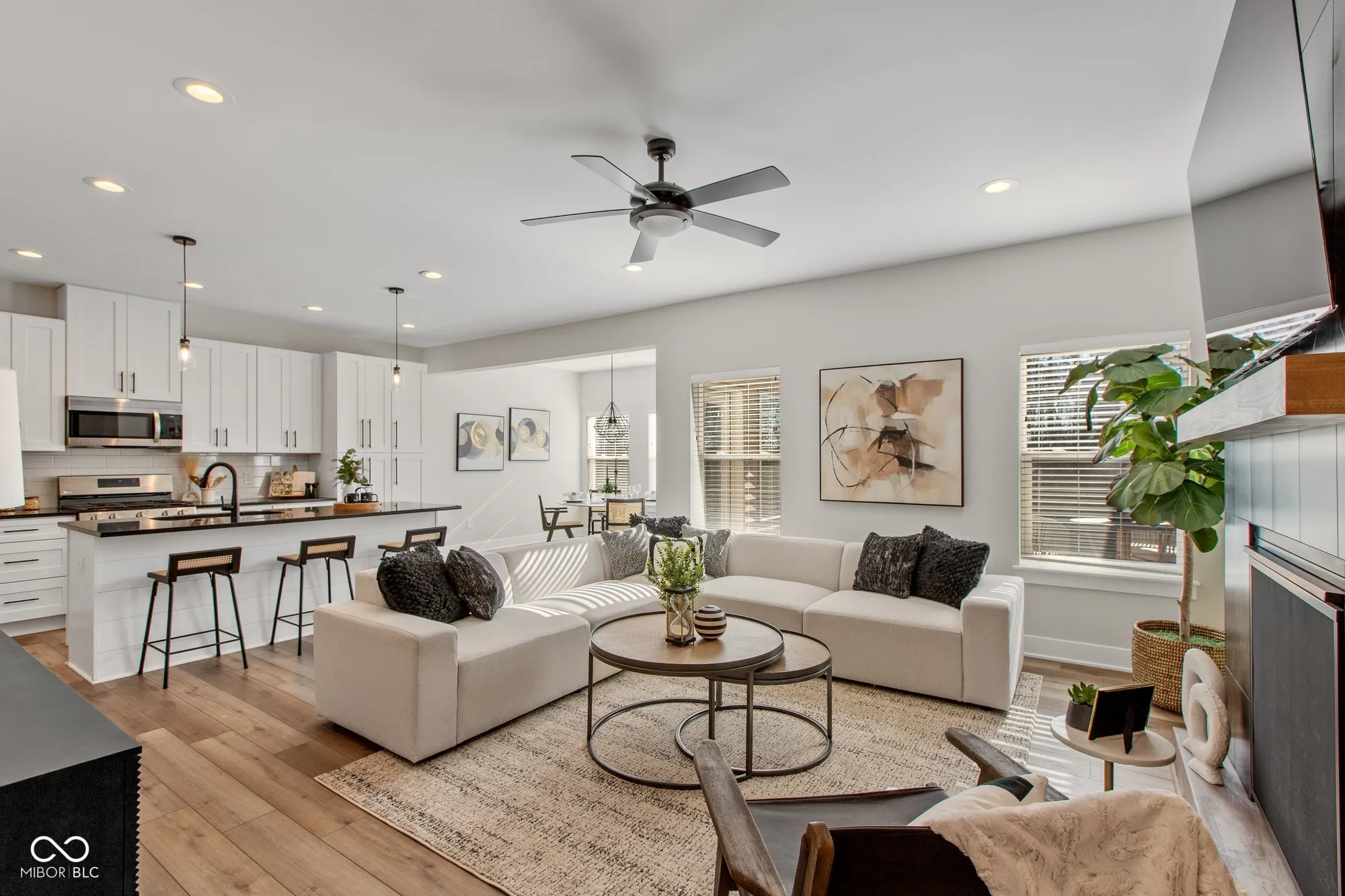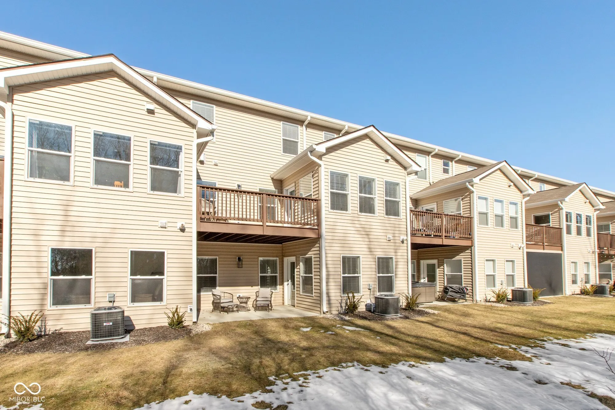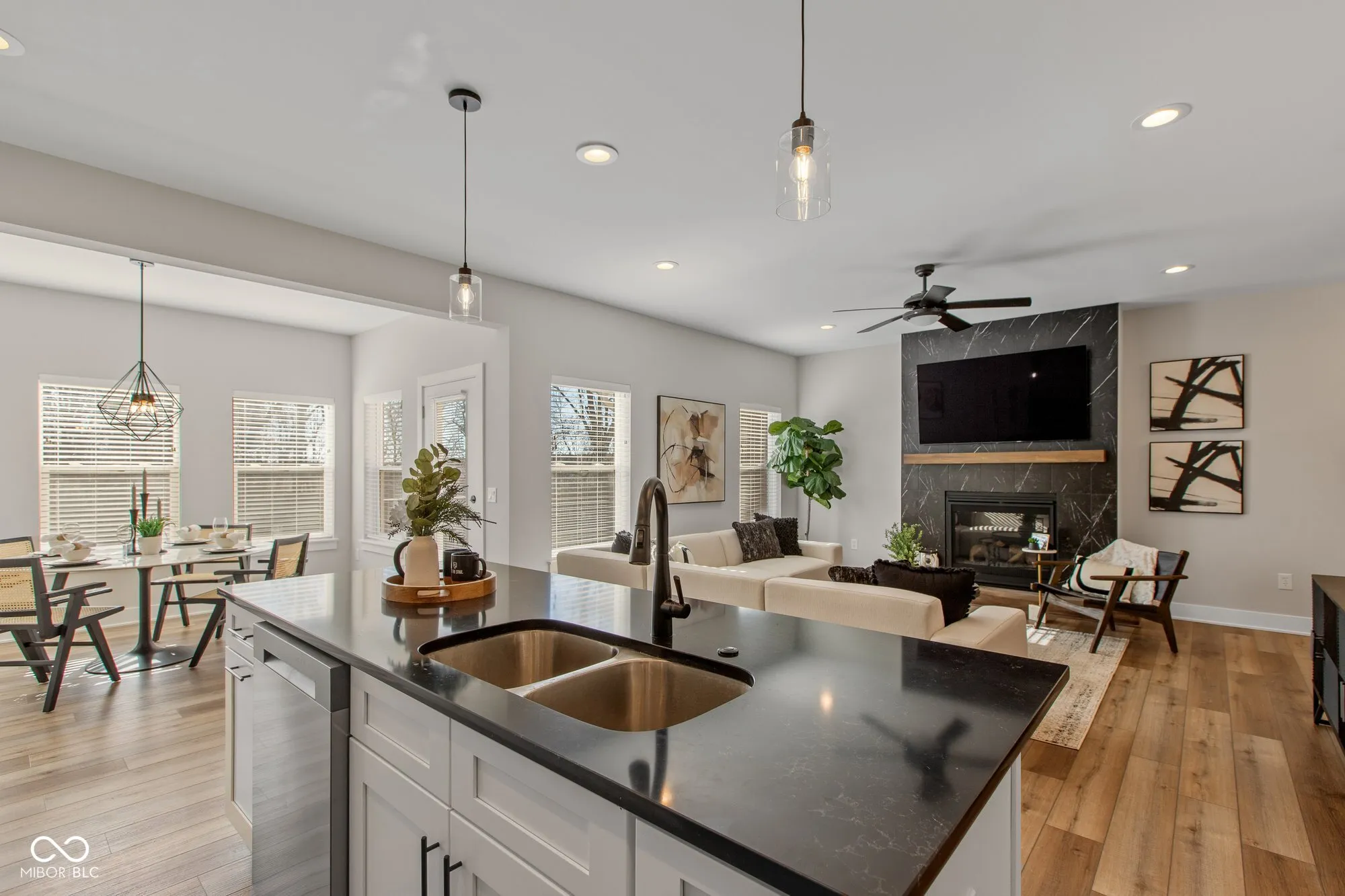 Welcome to this beautifully designed 3-bedroom, 3.5-bathroom townhome featuring a finished basement and multiple outdoor living spaces. Located just minutes from all the buzz Fishers has to offer, this home combines style, convenience, and functionality. Step onto the covered front porch and into an inviting open-concept living space with 9+ foot ceilings and stunning luxury vinyl plank flooring throughout the main level. The great room features a gorgeous fireplace, while large windows flood the space with natural light. The adjacent kitchen is a chef’s dream with ample cabinet storage, a large island with seating, and a dedicated dining space with access to the balcony for seamless indoor-outdoor living. The fully finished lower level offers additional space with a full bathroom and access to the covered patio, making it perfect for entertainment or a home office. Upstairs, the primary suite is a true retreat, featuring a luxurious ensuite with dual sinks, a glass shower, and a private toilet room. Two additional generously sized bedrooms and another full bathroom. This home also boasts an attached 2-car garage, a covered backyard patio, and balcony for multiple spaces to relax and unwind. With its prime location and thoughtful design, this townhome offers the perfect opportunity to enjoy modern living in Fishers.
