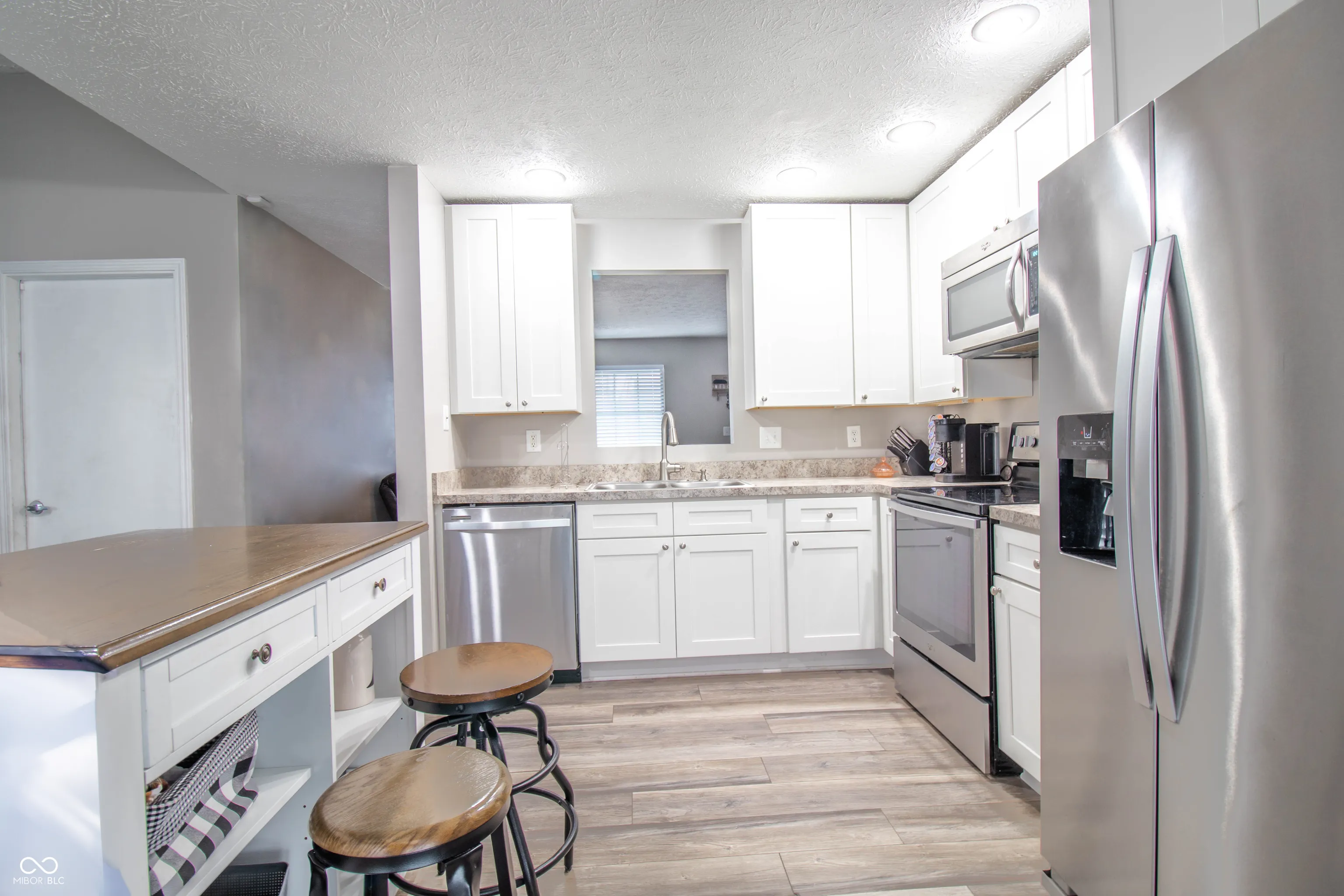 Nestled off the Taylorsville I-65 exit is a quiet street and an updated 3 bed/2 FULL bath ranch. New Lux Vinyl plank flooring throughout showcasing a Gas fireplace and a fully UPDATED KITCHEN. Kitchen has shaker-style cabinets + additional lighting + fresh countertops + All stainless appliances stay. In the back, you will find a large patio, mature trees offering the perfect shade & a garden bed all wrapped up in a fully fenced backyard. Master Suite offers a walk-in closet + A Full-size standing shower + a rear patio sliding door. Laundry room in the unit- complete with washer and dryer included- leaves plenty of room in the garage for workshop/toys/entertainment space or 2 cars.