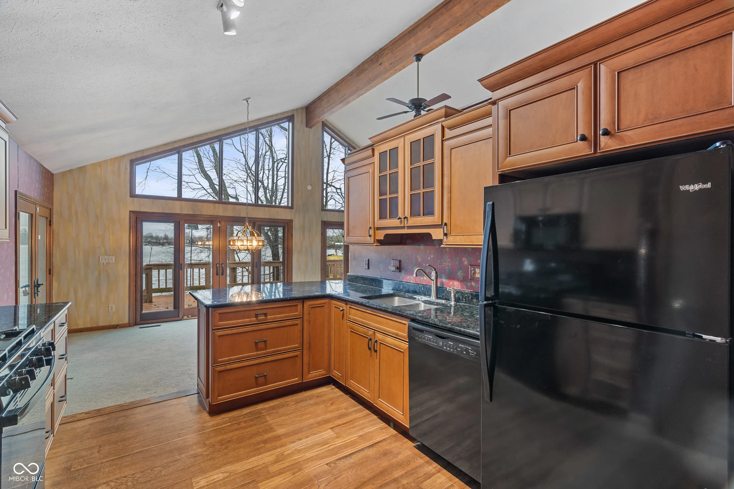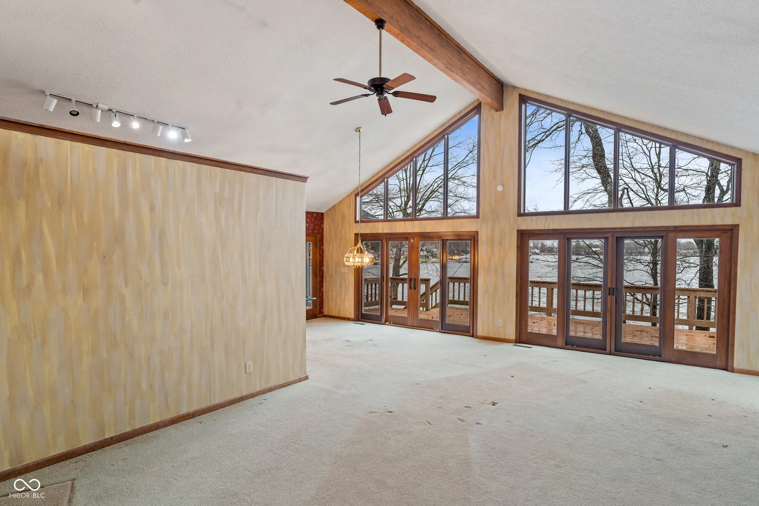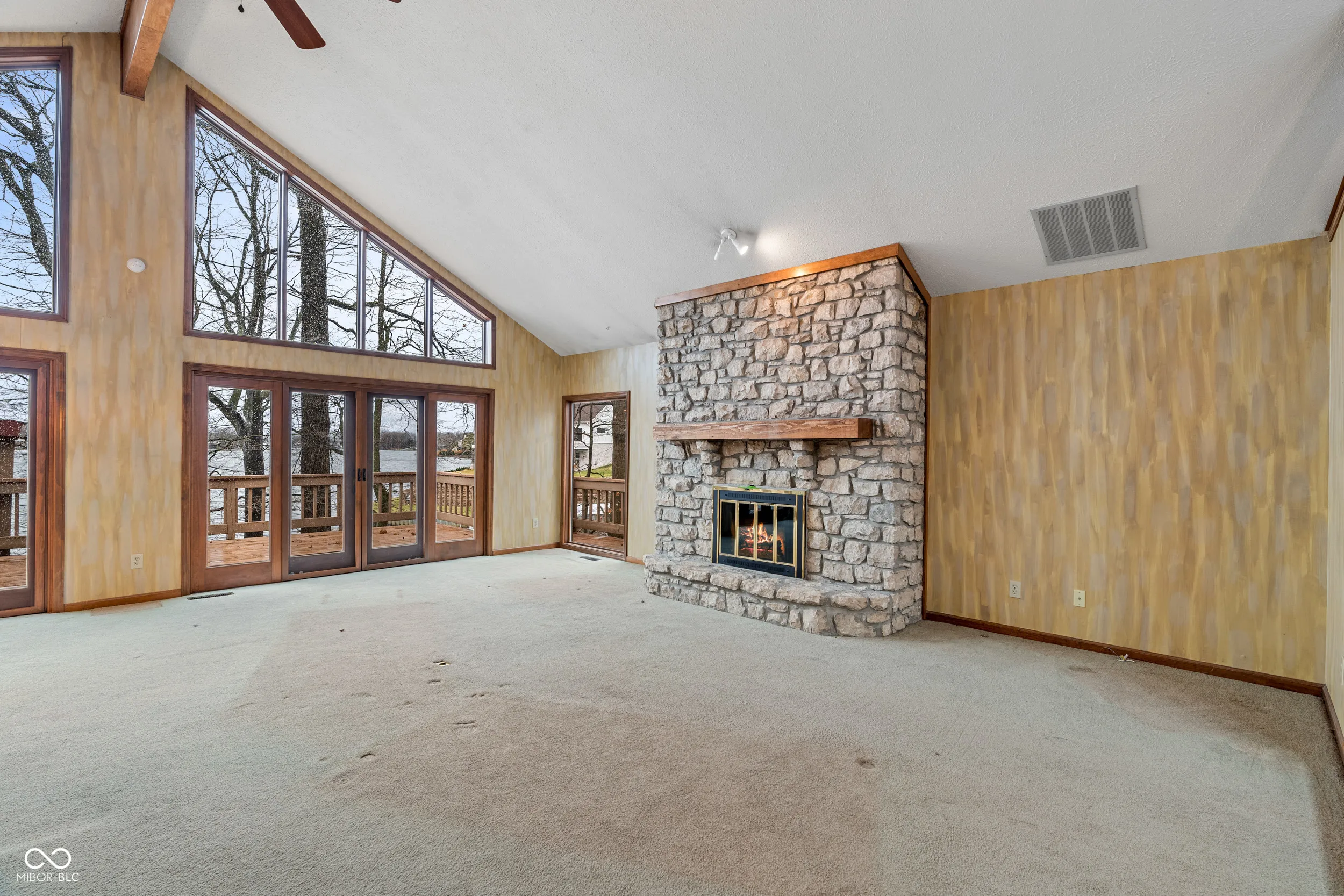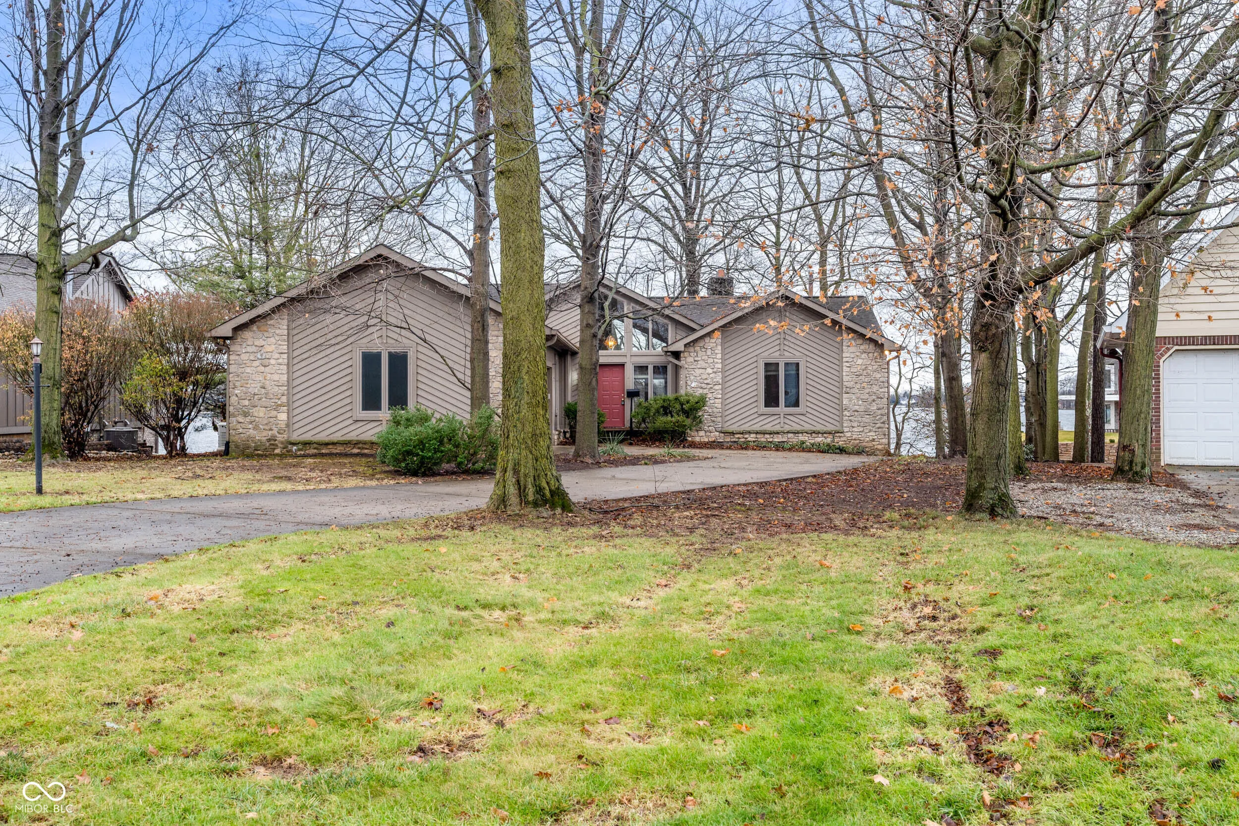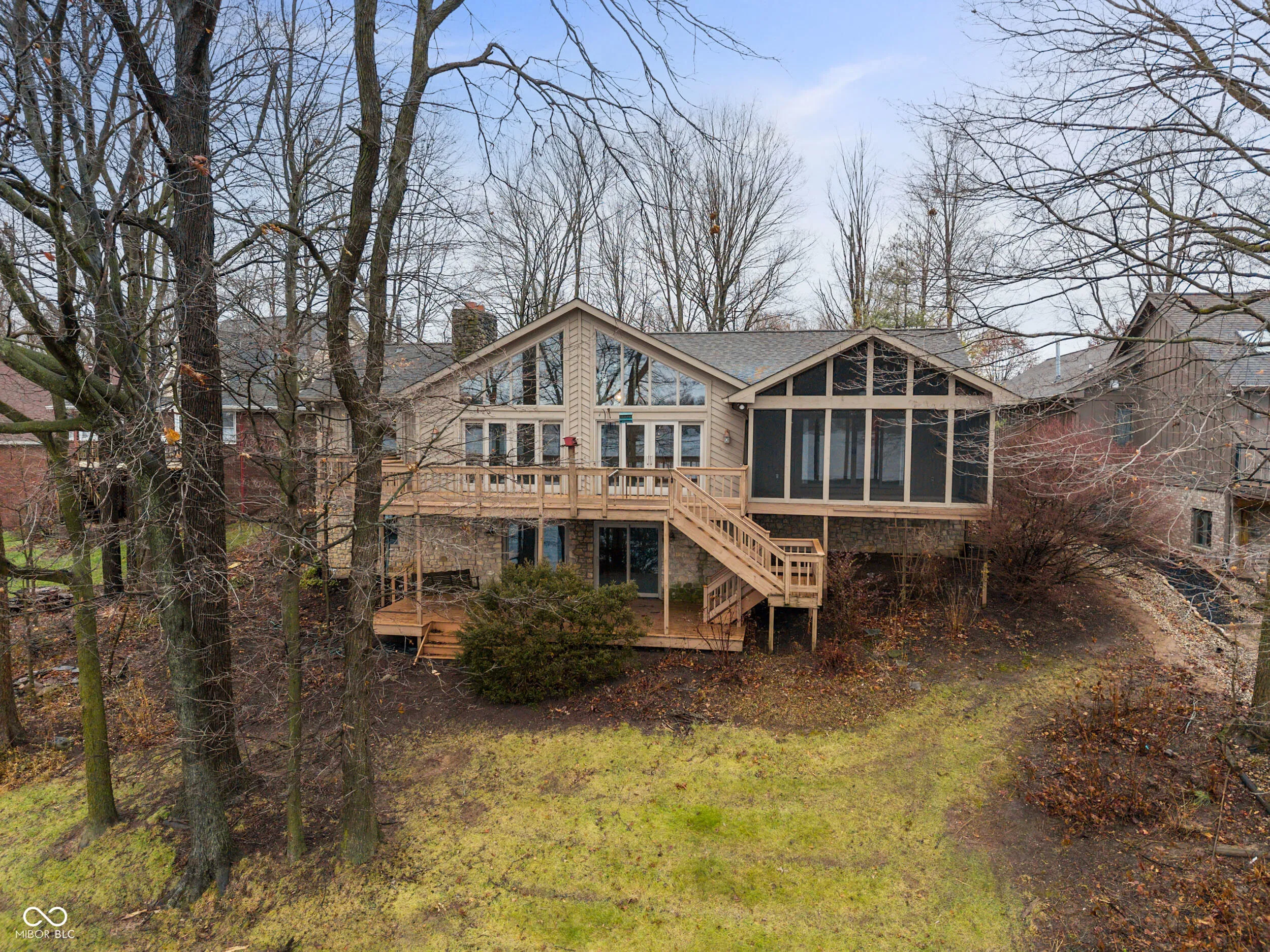Stunning lake views! This beautiful home greets you with a large welcoming foyer open to the great room with masonry hearth, cathedral ceilings and floor to ceiling windows. The kitchen opens to great room and dining room and offers granite countertops, updated cabinets and seated bar area. Enjoy meals and relaxation on the screened-in porch or on the deck. Primary suite offers its own access to the screened-in porch, walk-in closet, private w/c with tub and separate shower. In this split floor plan, you’ll find the second bedroom with its own access to the mail level deck. Massive lower level greets you with more floor to ceiling windows. Wide open for your creativity on the finish. Plumbed for a full bath. Floor plans show a fourth bedroom. Outfitted with a Generac whole house generator. Pre-inspection and professional photos will be available in a day or two. SHOWING BEGIN AT 3:30 DECEMBER 16TH. This is lake living you won’t want to miss!