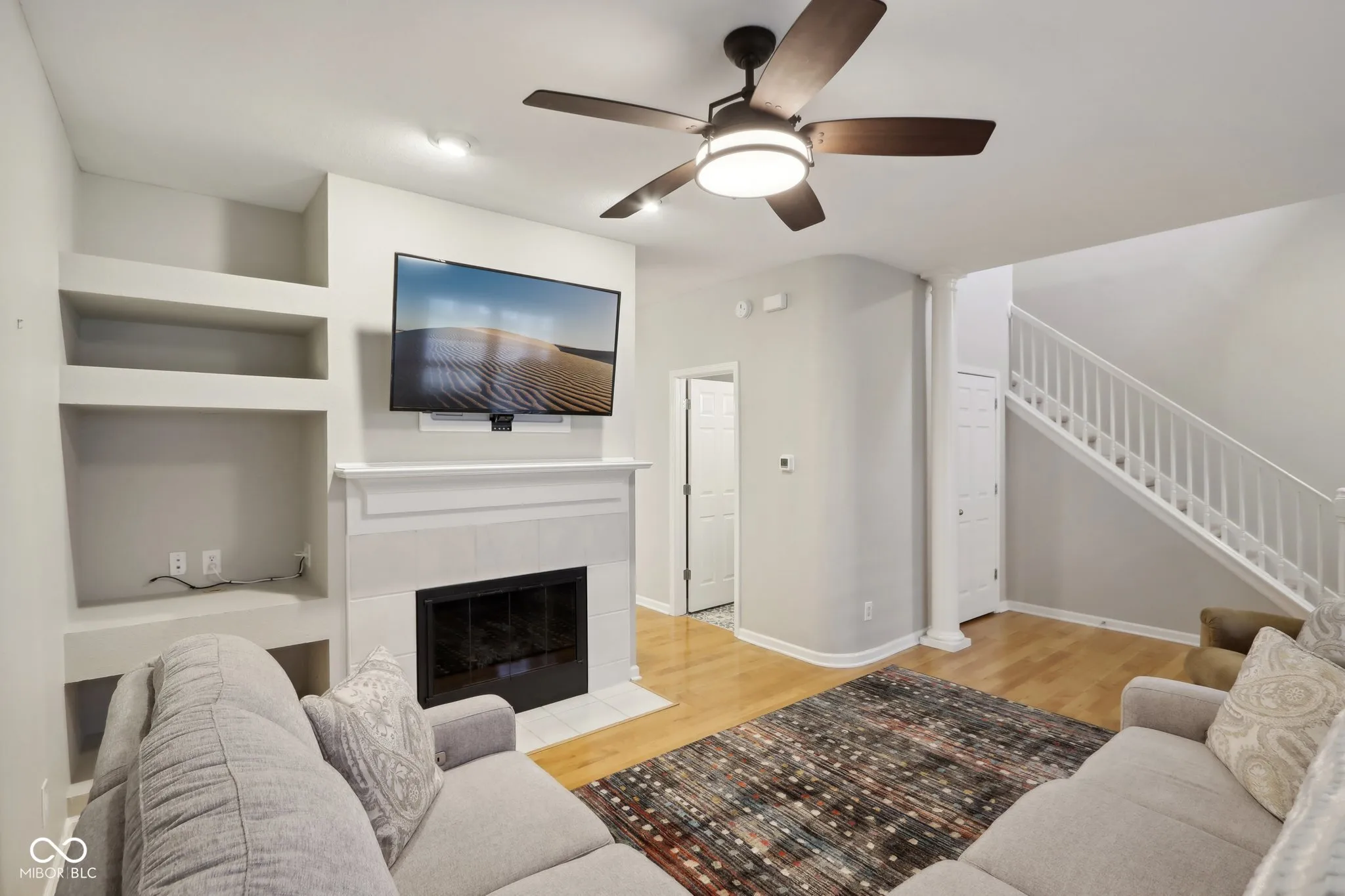 Sought after Centennial Townhome! Home has covered front porch perfect for relaxation. Step into two story entry with decorator columns and open site floor plan, wood laminate floors thru out the main level. Neutral paint through out, fireplace with built in shelving and perfect place to mount the TV. Dining room with windows for natural light, Updated kitchen with stainless appliances, and tile backsplash. Atrium door leads to private rear courtyard perfect for quiet evenings. Half bath on main with stylish flooring, extra deep garage perfect for storage. Upstairs has split floor plan for ultimate privacy with two spacious bedrooms and two full baths. Perfect end unit! Move in ready! Must see!