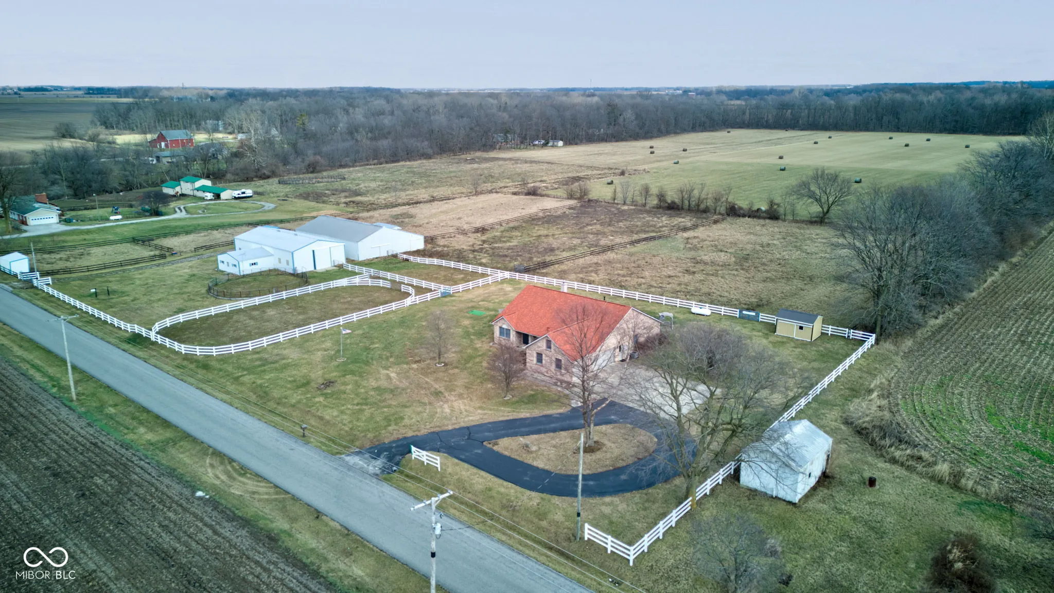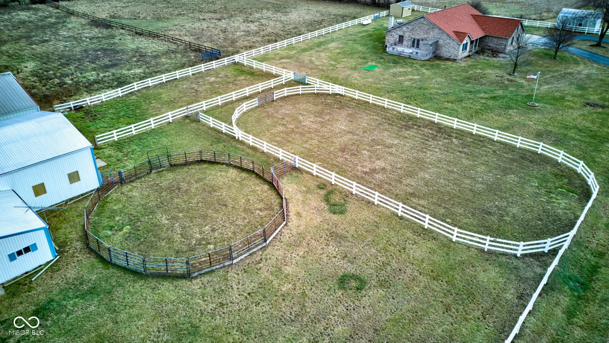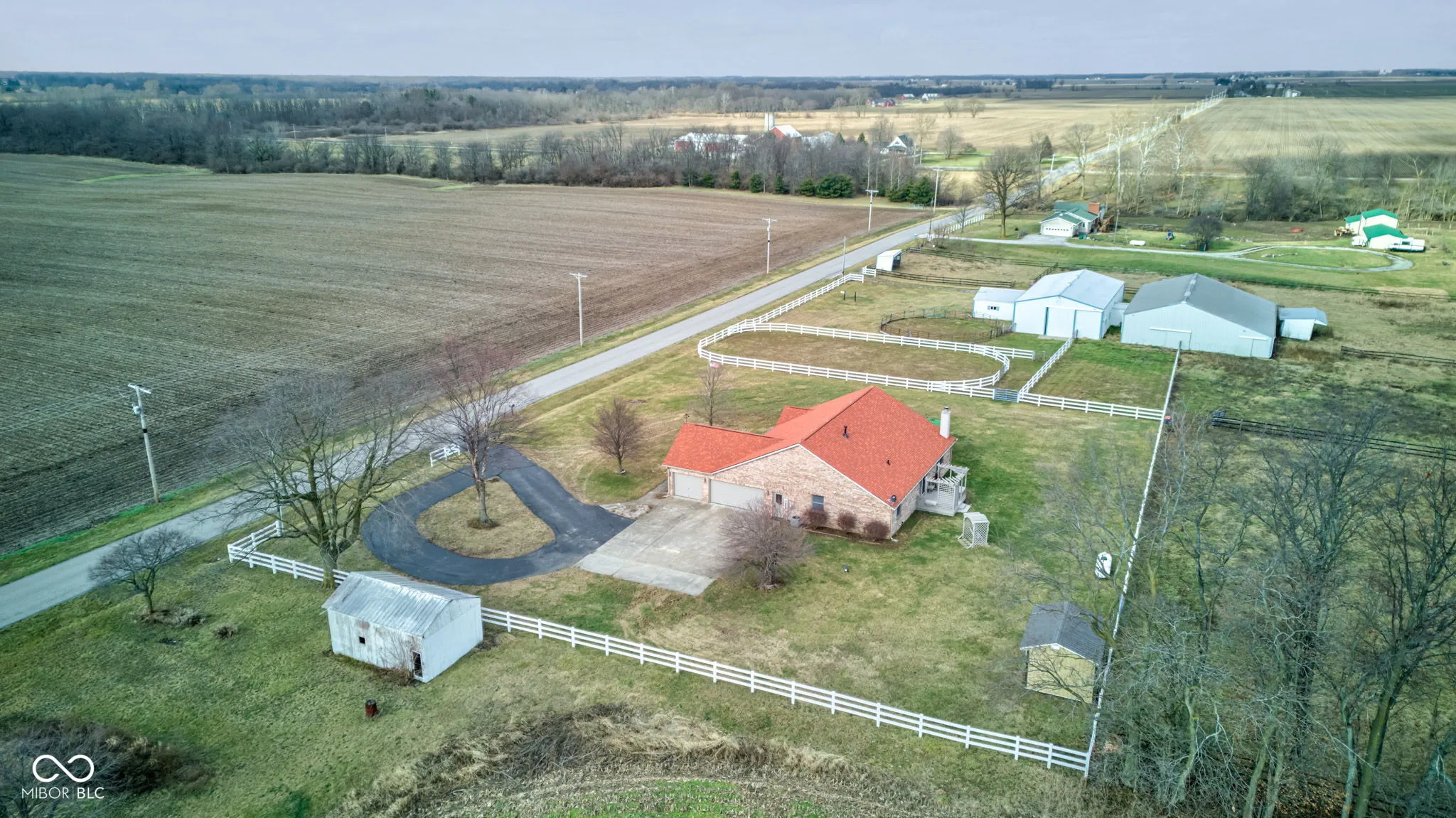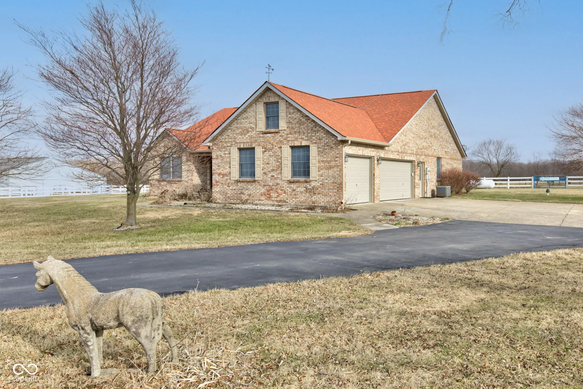 Discover the perfect horse farm ready for its next chapter! This property spans two parcels: a 1.06-acre lot with the house and a 10.78-acre lot with the barns and pastures. The brick ranch, complete with a 3-car attached garage, offers a blank slate for your updates and personal touches. Recent improvements include a new roof within the past year and an HVAC system replaced 3-4 years ago. The home also features two water heaters, ensuring ample supply for all your needs. Designed with horse enthusiasts in mind, the property boasts a spacious barn with 8 stalls, a birthing stall, a tack room, and an office, all equipped with water and electricity. A 32×72 indoor riding arena, an automatic pasture water system, and white vinyl fencing make this farm a dream come true. With easy access to Indianapolis and endless possibilities, this property is a must-see!