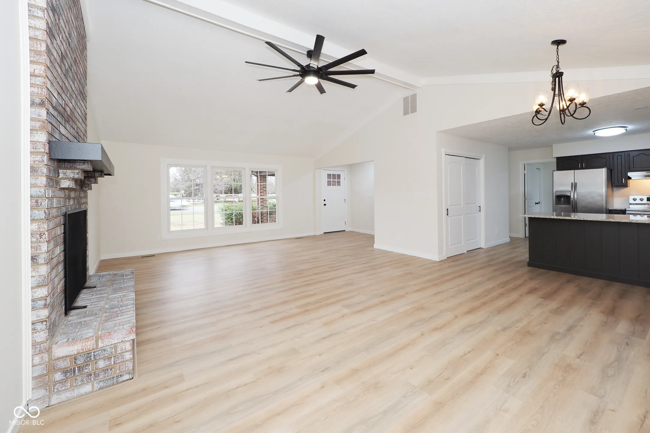 Welcome to this meticulously renovated custom-built Lazaro brick home, offering modern updates. Large .60 acre tree lined lot, featuring raised garden beds and a woodburning firepit, creating an inviting outdoor retreat. The side-load 2.5 car garage, with 600 sq ft of space, provides ample room for storage and parking. Step inside to discover an open floor plan with a spacious great room highlighted by a cathedral ceiling and a woodburning fireplace, beautifully enhanced with a whitewashed finish. The renovated kitchen features sleek granite countertops, a new stainless steel sink, and stainless steel appliances. Every inch of the home has been thoughtfully updated, including fresh paint on all interior ceilings and walls, new luxury vinyl plank flooring in the main living areas, and new carpet in the bedrooms. The home’s attention to detail continues with new interior doors, new steel insulated exterior doors, and a new Pella slider sunroom patio door. Both bathrooms have been completely renovated, showcasing custom tile surrounds, new toilets, soft-close vanity drawers/doors, and Bluetooth exhaust fans. The primary bath also features a lighted vanity mirror with an anti-fog function for added luxury. The home is equipped with modern systems, including a new HVAC system (2020), a well pressure tank (2024), and a new water heater (2024). The nearly 200 sq ft heated sunroom adds additional living space for year-round enjoyment. The home also boasts a 30-35 year dimensional roof, with shingles approximately 12 years old. This exceptional home combines custom quality craftsmanship with thoughtful upgrades, creating a move-in ready new home. Don’t miss your chance to own this beautifully renovated gem!