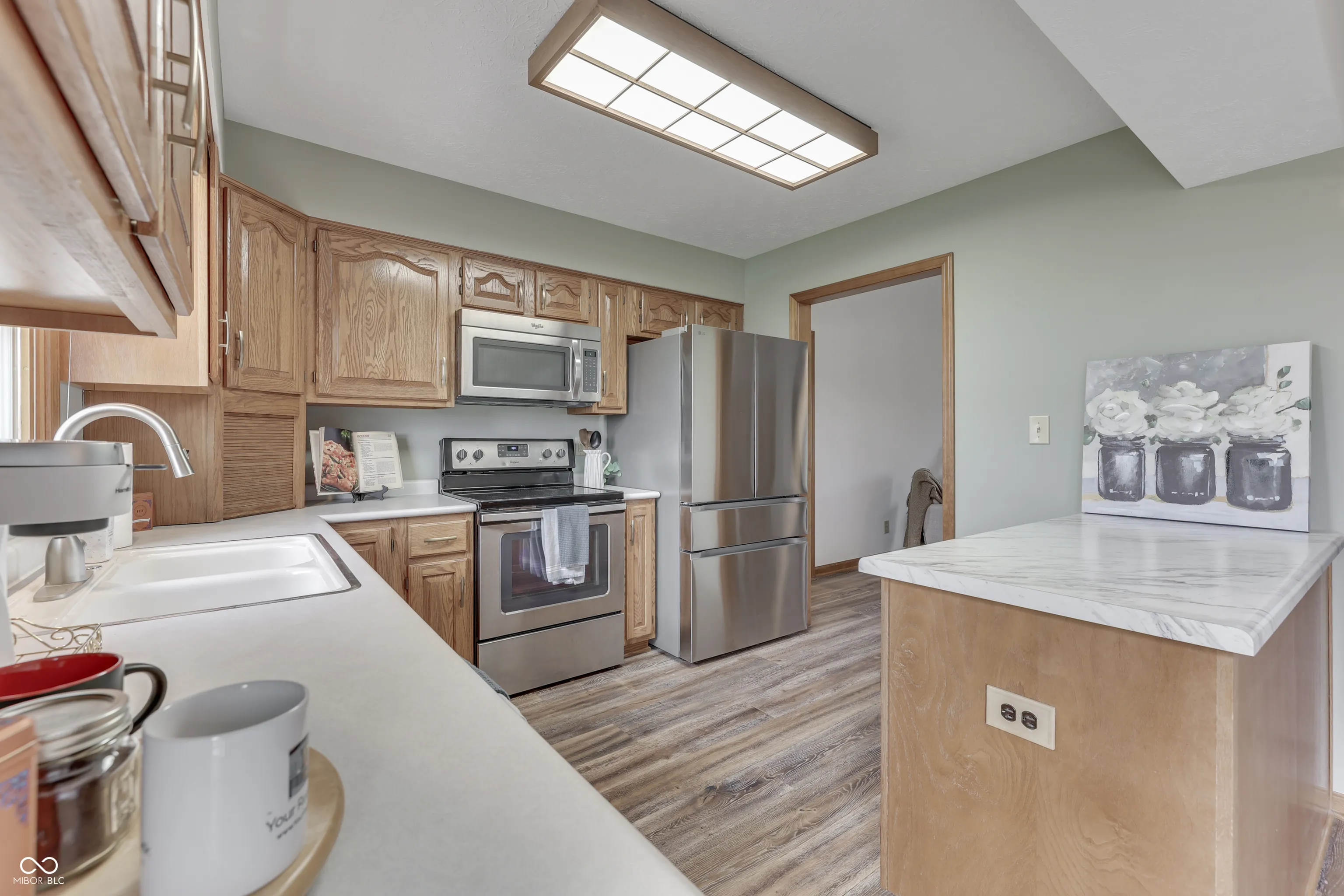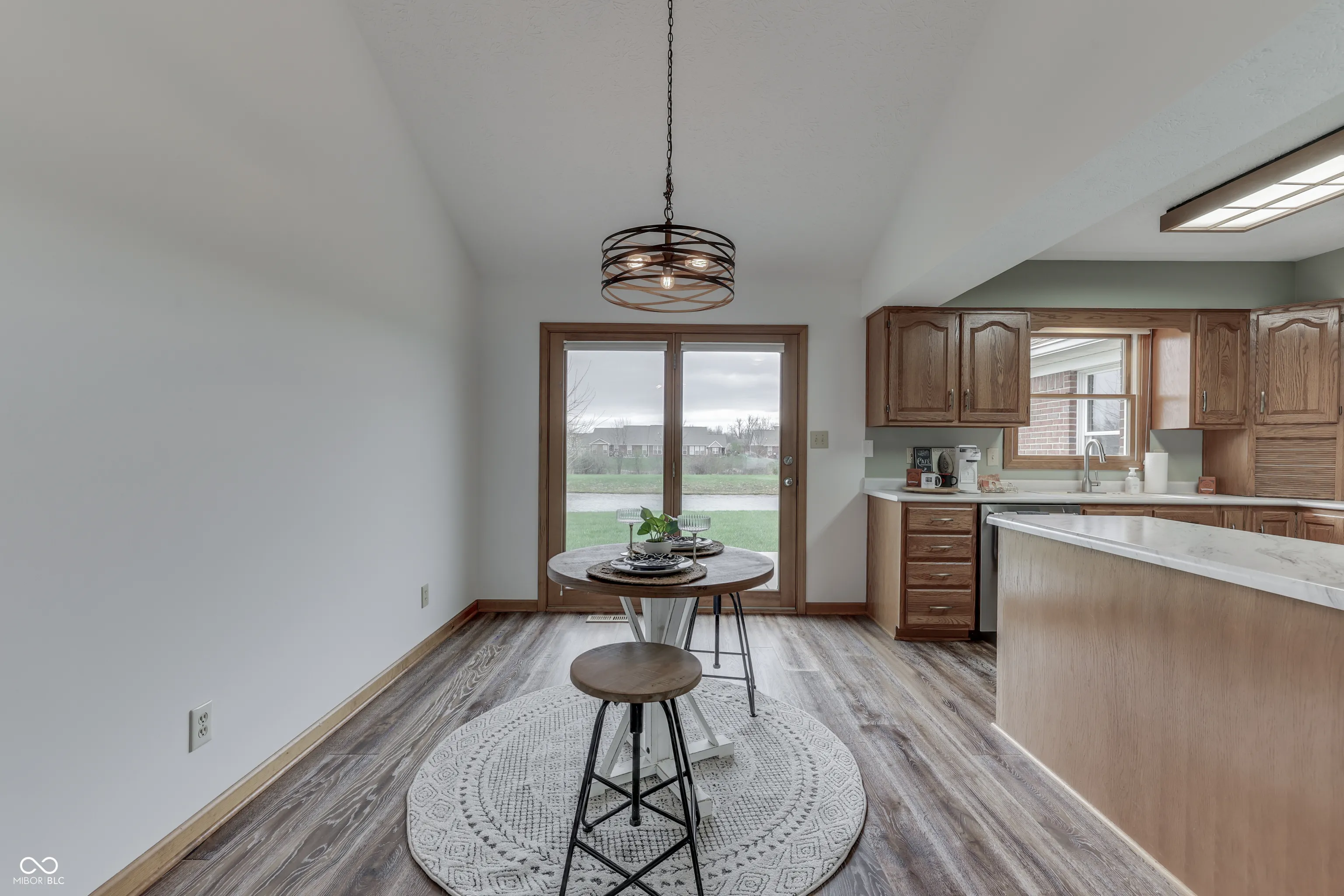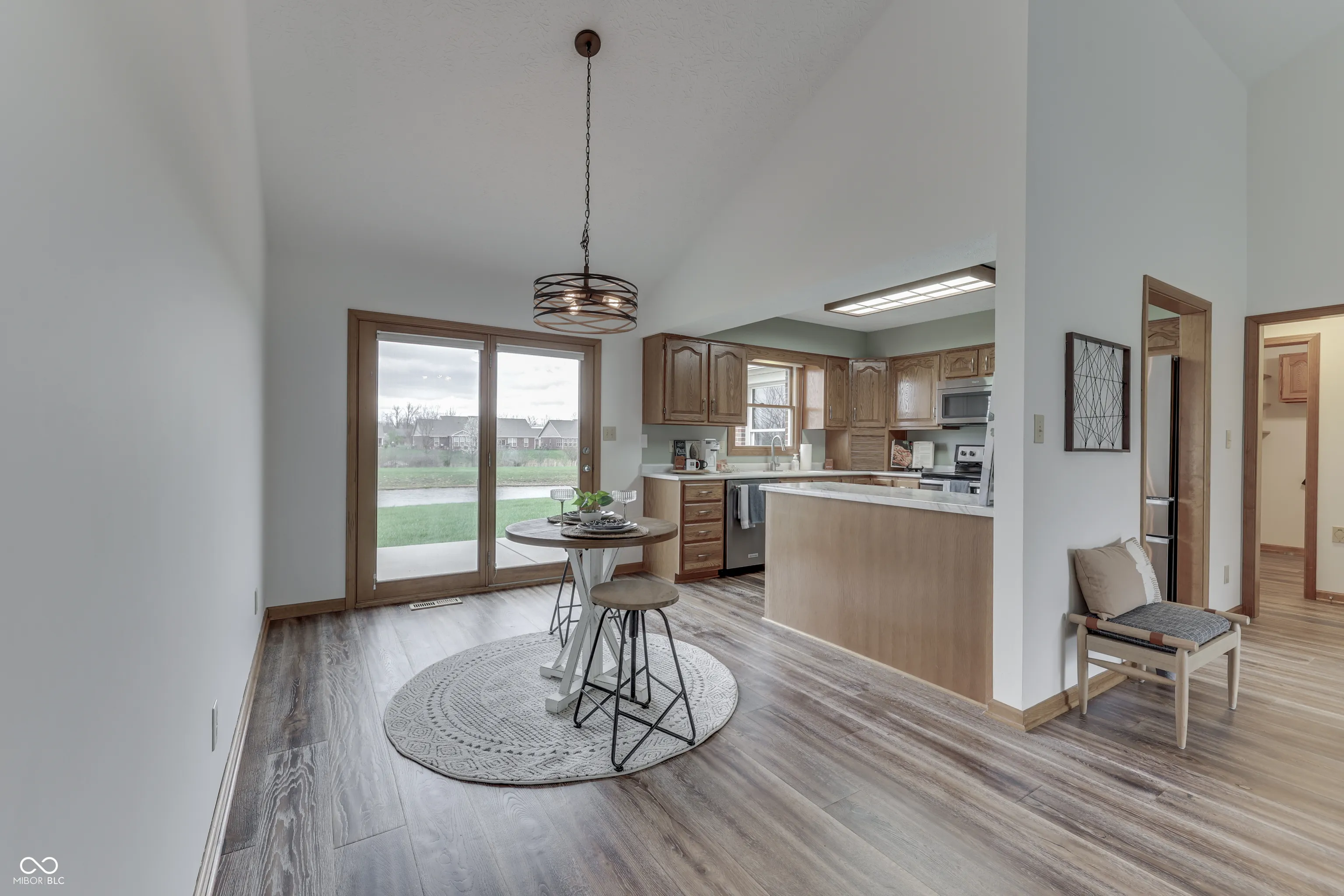 Offering the best of both worlds, this adorable single family 3 Bed / 2 Bath home on the pond, offers a low-maintenance lifestyle with beautiful exterior features and a well-kept yard, nestled in the paired patio neighborhood built by Westport homes. The HOA provides mowing, mulching, and edging flower beds in the spring, spring and fall leaf pick up, and edging the walks and driveway 4x per year along with snow removal in the winter. Bathed in sunlight, this 1696 sq ft home features vaulted ceilings, split floor plan, creating a spacious and inviting atmosphere for entertaining guests or relaxing with family. Brand new engineered hardwood floors. The dining area adjacent to the modern kitchen is complete with all stainless-steel appliances, accommodating a large table with ample seating, where you can enjoy your morning coffee, read your favorite book, or simply take in the beauty of the pond. The primary bedroom is a peaceful retreat with a spacious walk-in closet and a luxurious en-suite bathroom featuring double sinks and a large shower. The second and third bedroom and full bath are perfectly positioned for guests or a home office. Both armoires in the bedrooms remain with the home. This quiet neighborhood offers convenience to shopping, restaurants, parks, and only 13 minutes away from downtown. Do not miss the opportunity to make this beautifully maintained home your own.