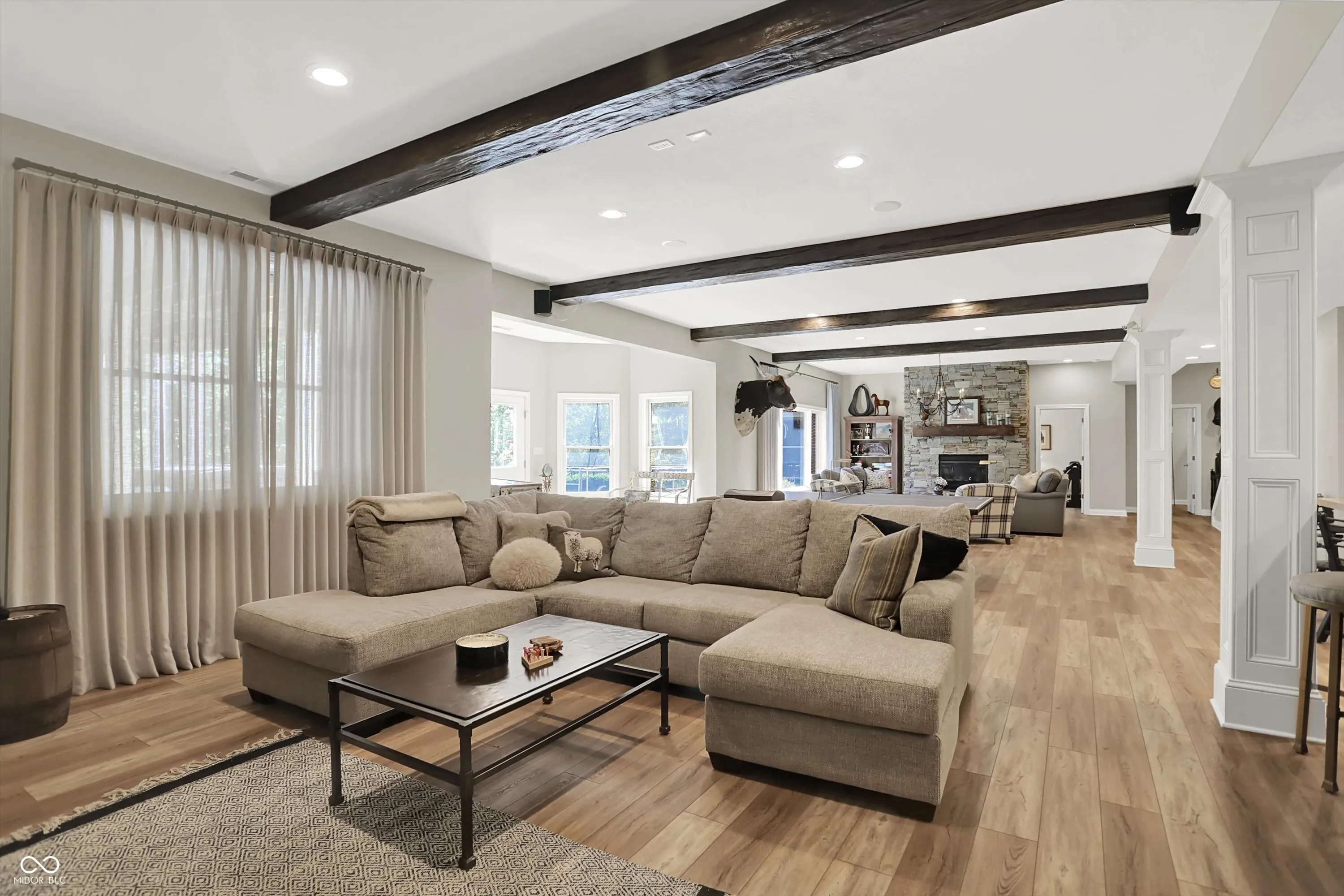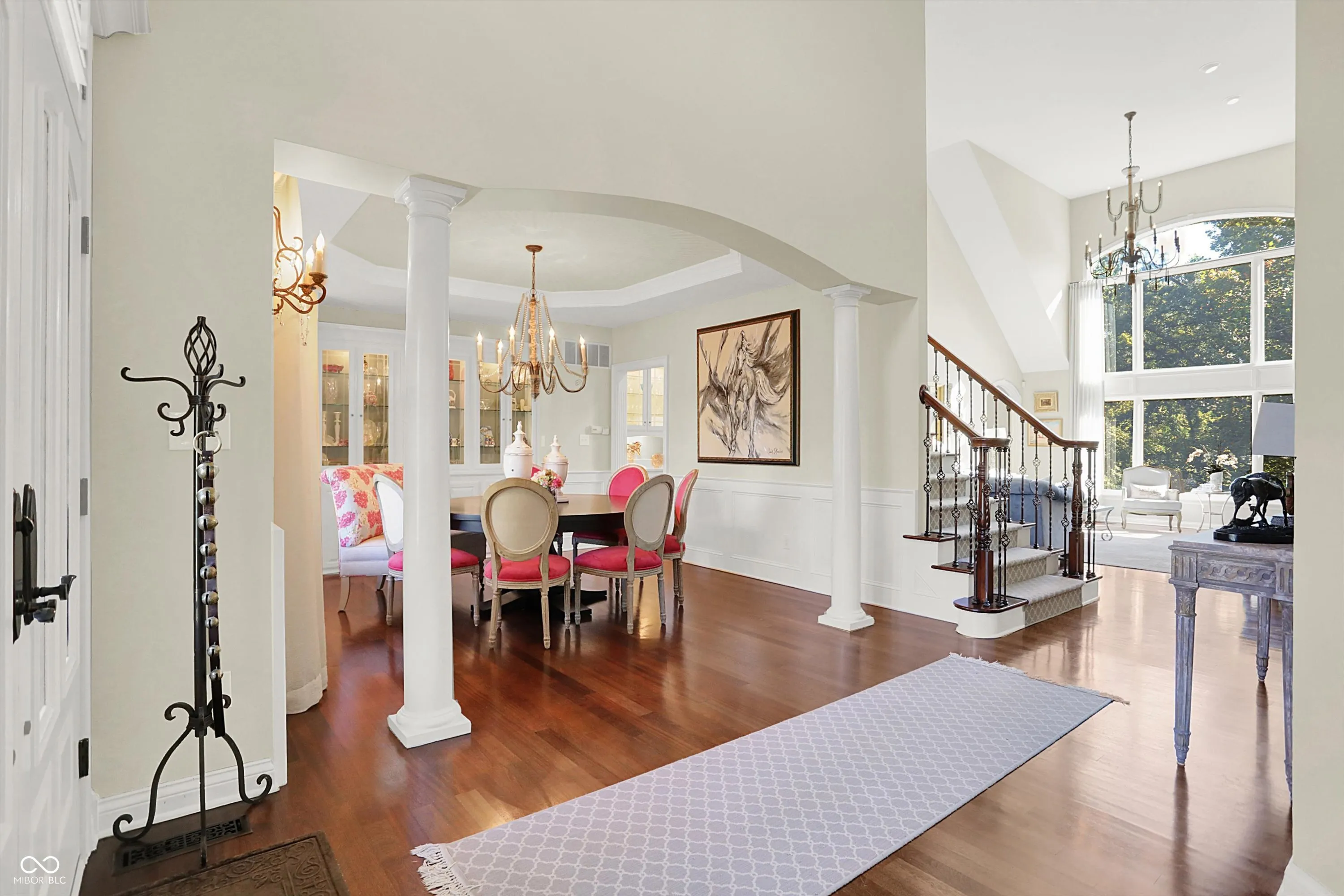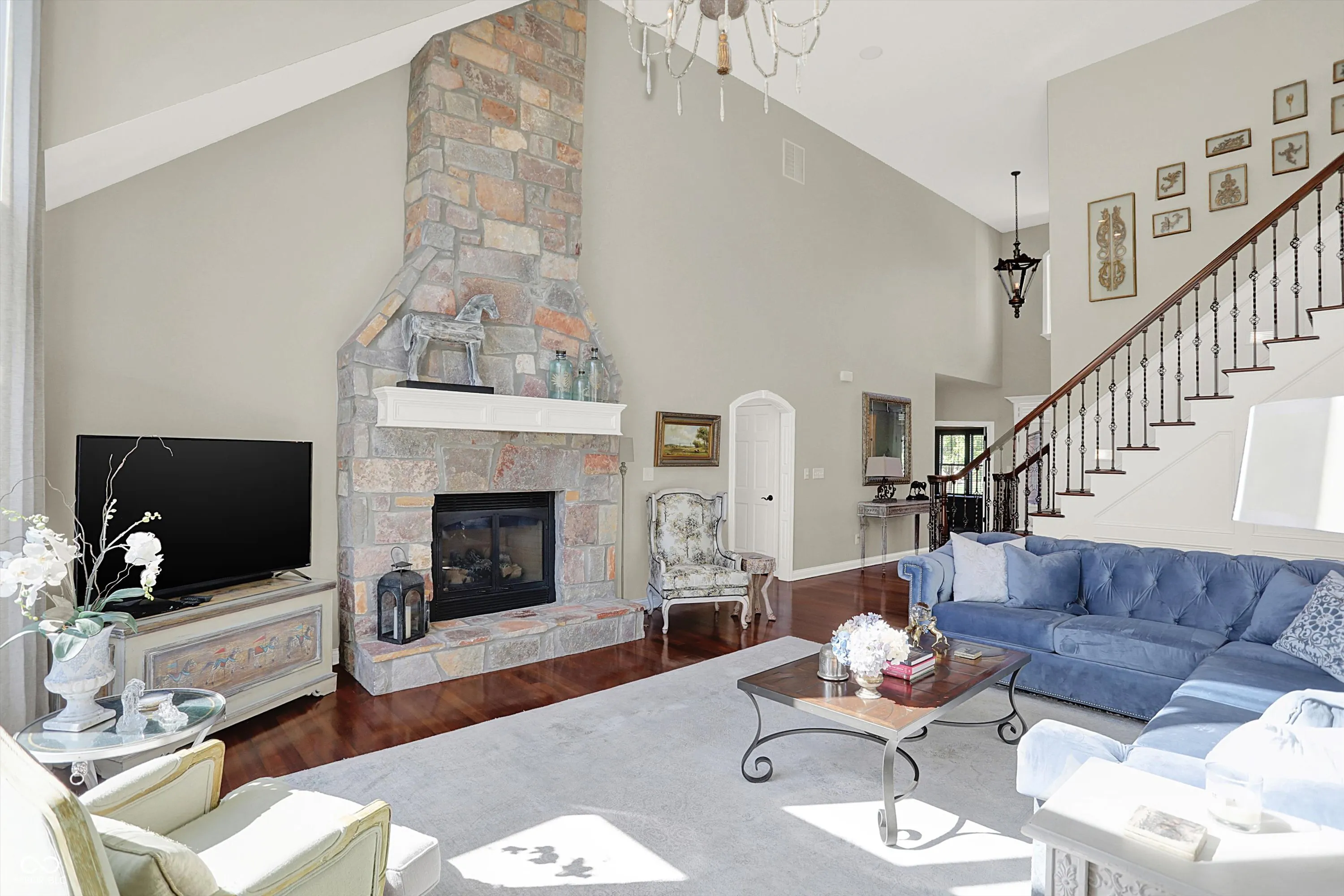 Discover the beauty of life well-lived in this stately custom brick home, perfectly positioned to capture tranquil views of Sugar Creek. Designed with exceptional craftsmanship and refined touches throughout, this 5-bedroom, 5-bath masterpiece offers a harmonious blend of elegance, comfort, and versatility.From the moment you enter, the soaring ceilings and exquisite custom detailing set the stage for a home that is as welcoming as it is sophisticated. The heart of the home is the dream culinary kitchen-a space that inspires with its premium appliances, sleek countertops, and generous layout. Imagine preparing meals for family or entertaining guests in a kitchen that is both functional and stunning. Flowing seamlessly from the kitchen is the inviting 3-seasons room, where you can sip your morning coffee while soaking in the peaceful views of the creek or enjoy evenings surrounded by the beauty of nature. This space becomes a sanctuary year-round, perfect for quiet moments or lively conversations with friends. The walkout basement is a showstopper, designed to elevate your lifestyle. A warm fireplace anchors the space, while a stylish bar area invites celebrations and gatherings. Additional finished areas provide endless possibilities-a workshop for creative projects, a home gym to keep you energized, or a craft room to explore your passions. The home’s five bedrooms is a private haven, offering ample space and thoughtful design. The primary suite, with its luxurious ensuite bath, feels like your personal retreat, perfect for relaxation at the end of the day. Every corner of the home showcases designer touches, from the custom ceilings to the hand-selected finishes, ensuring a cohesive blend of sophistication and comfort. Outside, and the magic continues. The natural beauty of Sugar Creek offers an unparalleled backdrop for outdoor gatherings, quiet reflection, or simply enjoying the changing seasons. This home isn’t just a place to live-it’s a lifestyle!