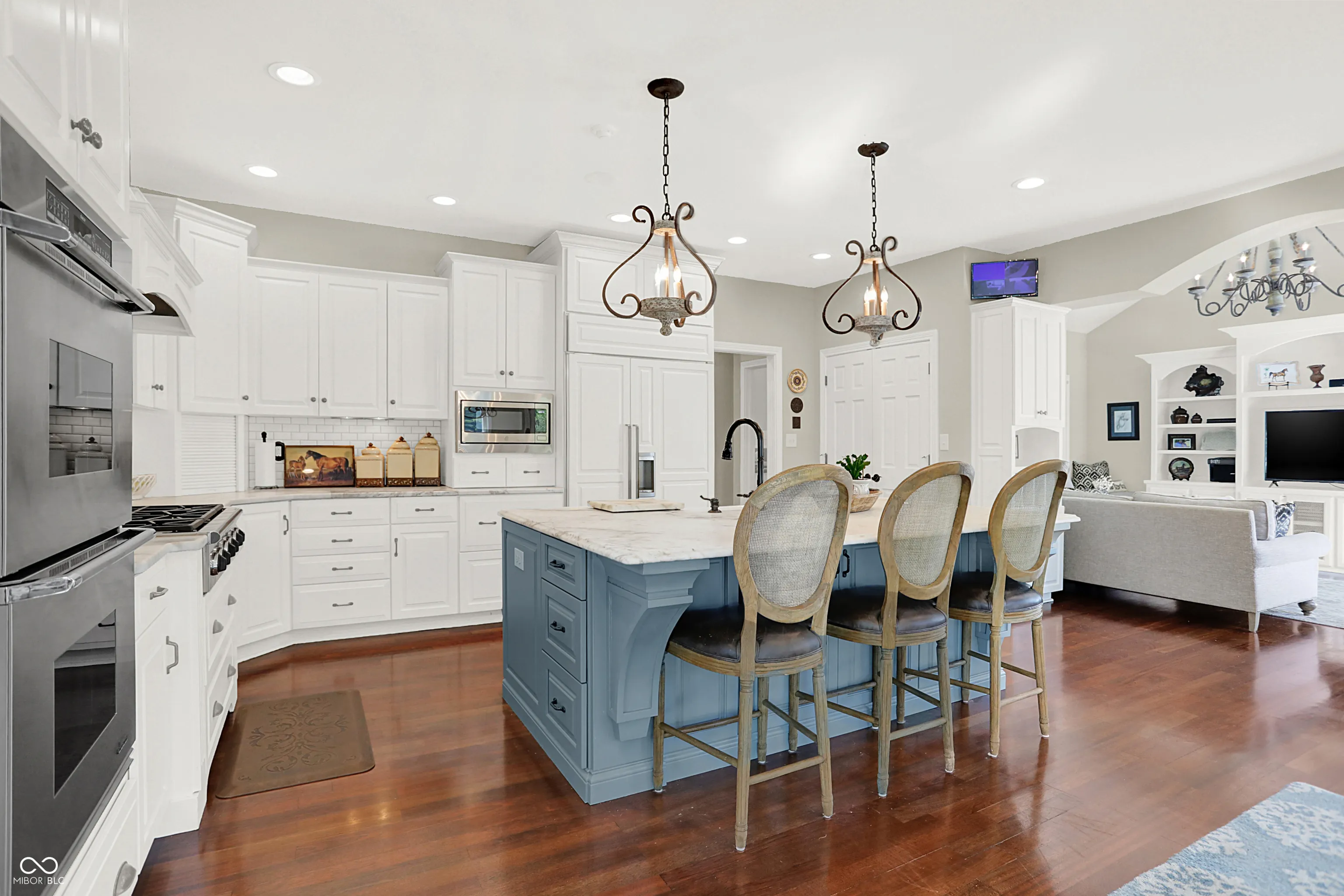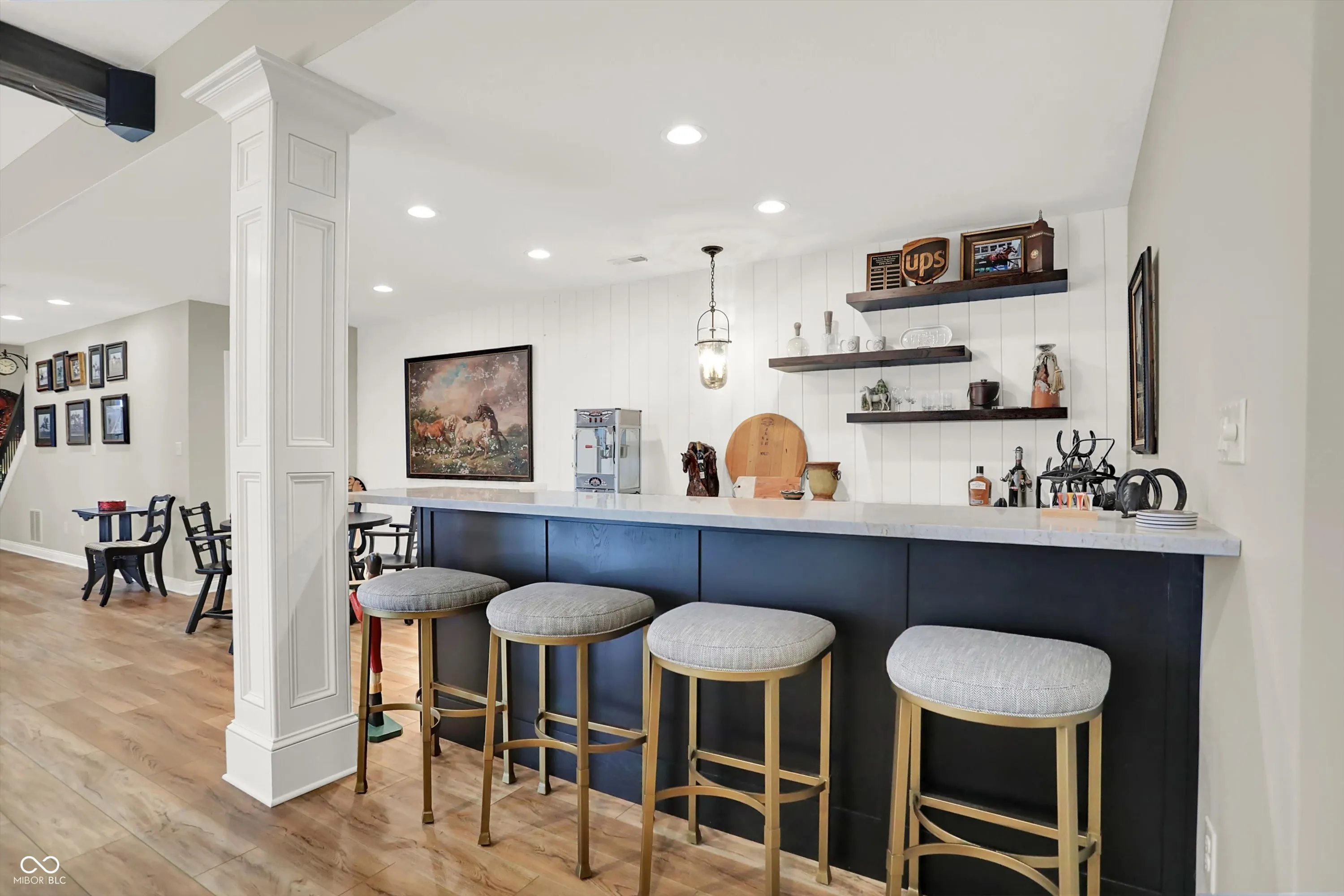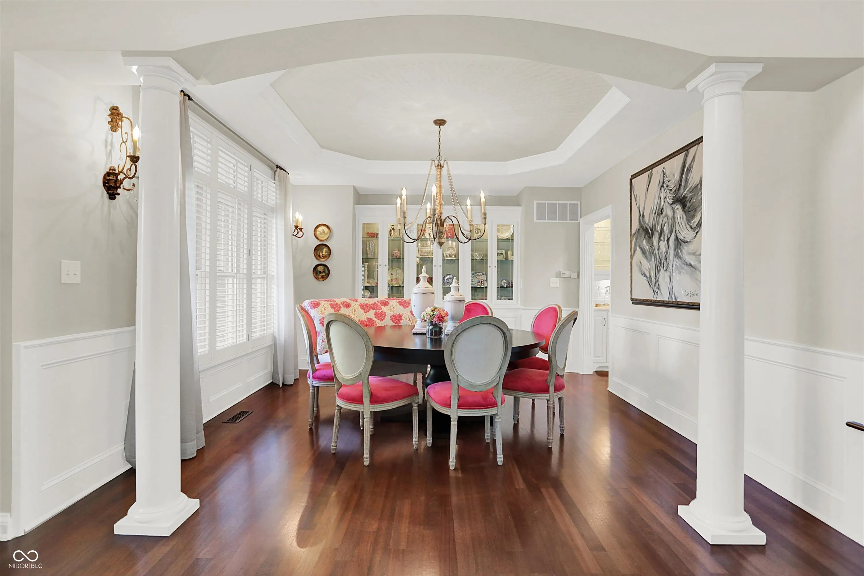 Discover the beauty of life well-lived in this stately custom brick home, perfectly positioned to capture tranquil views of Sugar Creek. Designed with exceptional craftsmanship and refined touches throughout, this 5-bedroom, 5-bath masterpiece offers a harmonious blend of elegance, comfort, and versatility.From the moment you enter, the soaring ceilings and exquisite custom detailing set the stage for a home that is as welcoming as it is sophisticated. The heart of the home is the dream culinary kitchen-a space that inspires with its premium appliances, sleek countertops, and generous layout. Imagine preparing meals for family or entertaining guests in a kitchen that is both functional and stunning. Flowing seamlessly from the kitchen is the inviting 3-seasons room, where you can sip your morning coffee while soaking in the peaceful views of the creek or enjoy evenings surrounded by the beauty of nature. This space becomes a sanctuary year-round, perfect for quiet moments or lively conversations with friends. The walkout basement is a showstopper, designed to elevate your lifestyle. A warm fireplace anchors the space, while a stylish bar area invites celebrations and gatherings. Additional finished areas provide endless possibilities-a workshop for creative projects, a home gym to keep you energized, or a craft room to explore your passions. The home’s five bedrooms is a private haven, offering ample space and thoughtful design. The primary suite, with its luxurious ensuite bath, feels like your personal retreat, perfect for relaxation at the end of the day. Every corner of the home showcases designer touches, from the custom ceilings to the hand-selected finishes, ensuring a cohesive blend of sophistication and comfort. Outside, and the magic continues. The natural beauty of Sugar Creek offers an unparalleled backdrop for outdoor gatherings, quiet reflection, or simply enjoying the changing seasons. This home isn’t just a place to live-it’s a lifestyle!