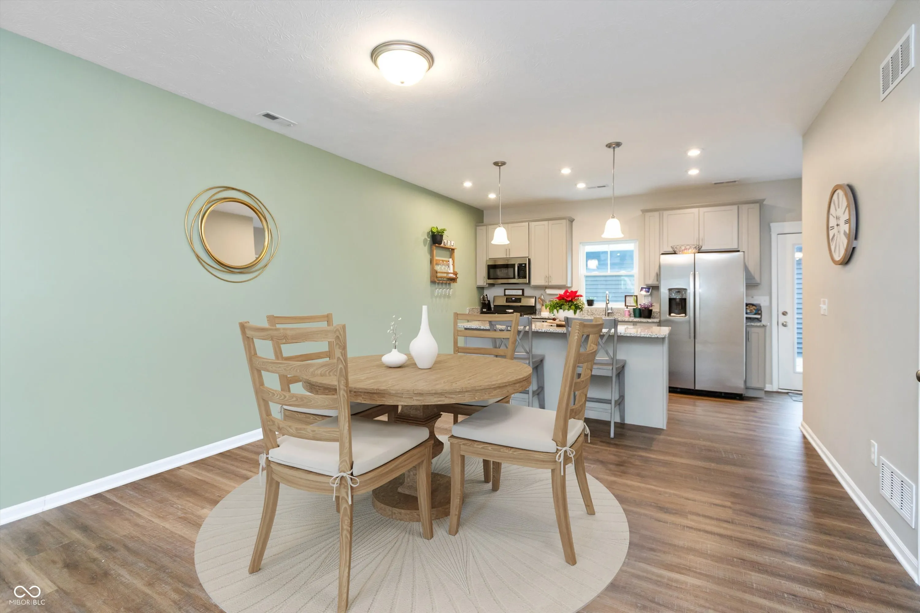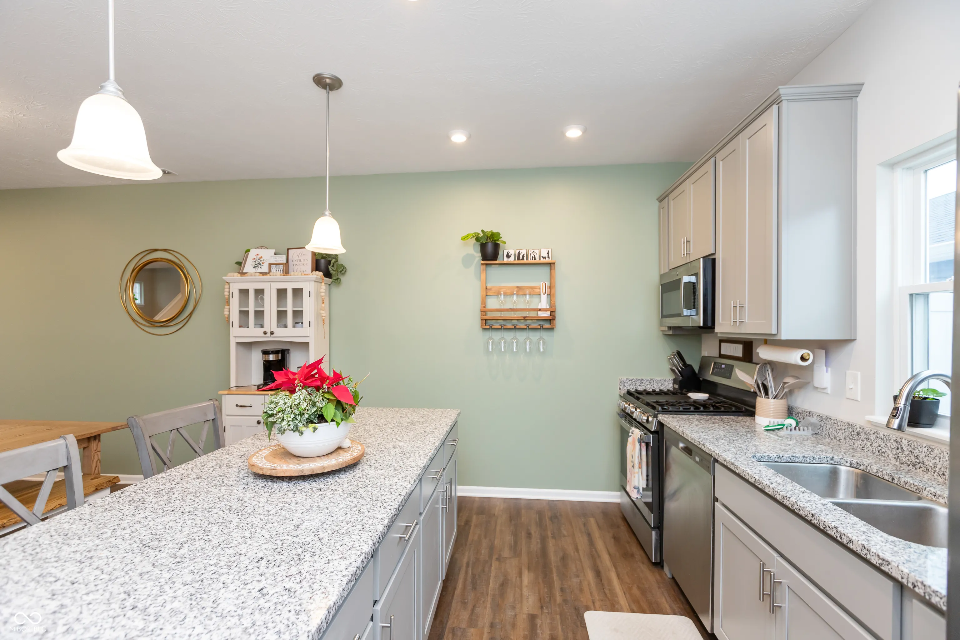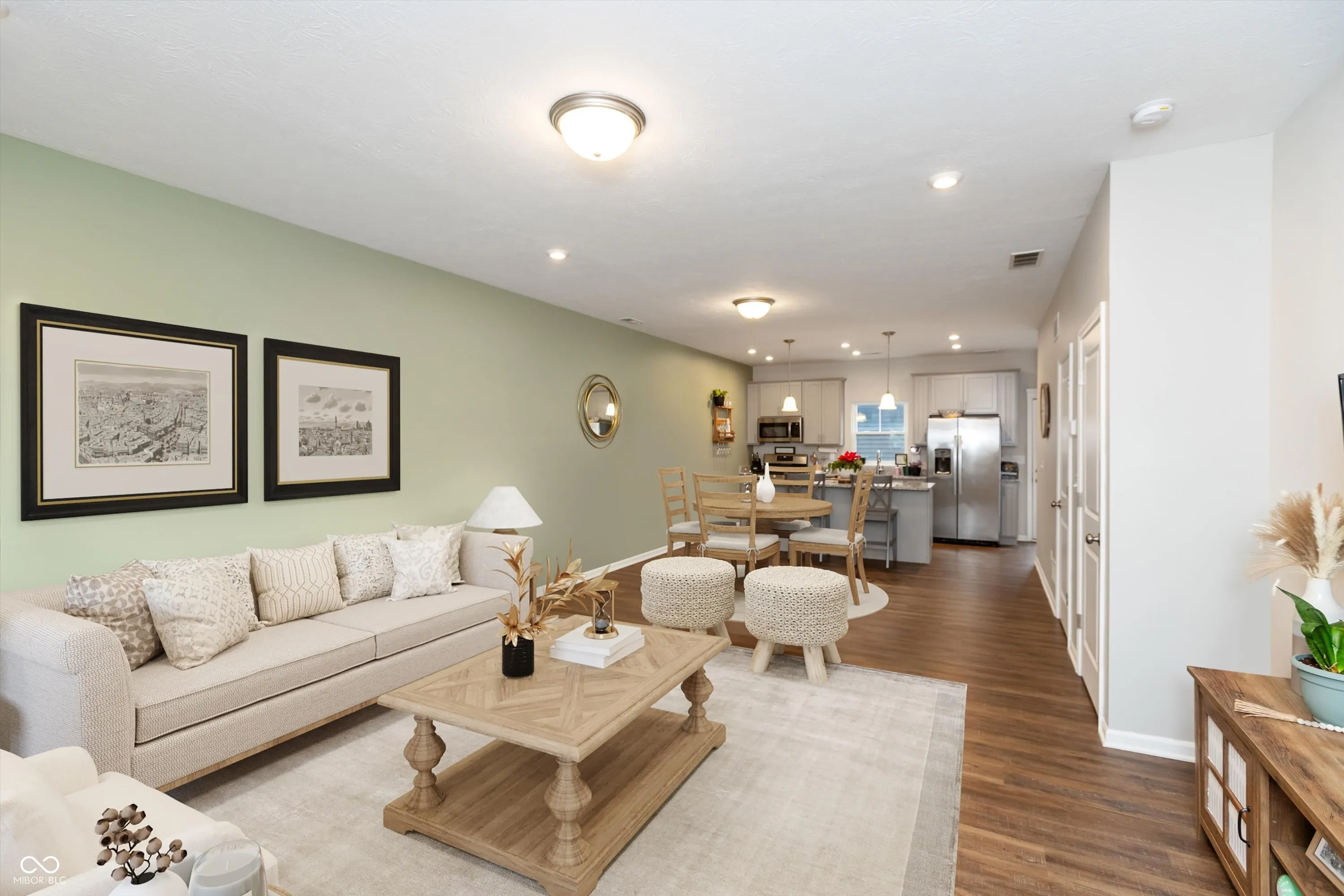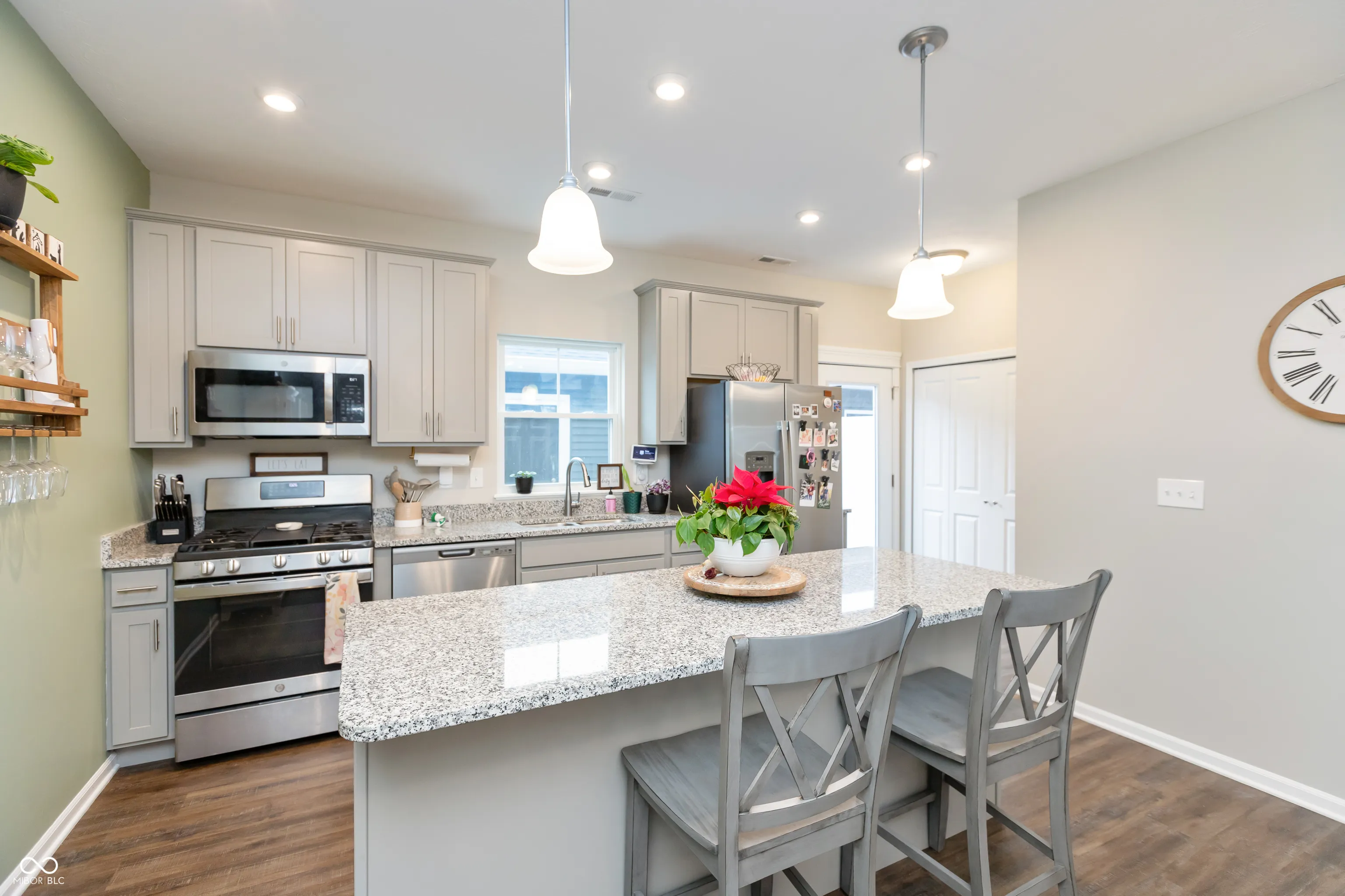 Stylish, low maintenance, 2-story TOWNHOME built in 2022 by Olthof Homes, offering 1394sf of living space. This beautifully designed home is the popular ‘Sutton’ floorplan & features 2 bedrooms and 1.5 baths, perfect for a cozy and comfortable lifestyle. The first floor has an open-concept layout enhanced by 9ft ceilings, LVP flooring & large Great Room/Dining Room combo & half bath. The kitchen is a dream for that chef or baker in the family w/ 42″ cabinets, a huge island, breakfast bar, quartz countertops, pantry and stainless-steel appliances that all stay including the refrigerator & washer & dryer. The laundry room is conveniently located upstairs along w/ two spacious bedrooms both w/ WIC’s & a large jack & jill bath to share. Off the kitchen you will find a private patio and courtyard with privacy fence that leads to the oversized 2 car garage w/ plenty of storage. High-performance energy efficient home w/ a 10-year structural warranty and a 4-year workmanship warranty on the roof. HOA covers lawn care and snow removal! Amazing neighborhood amenities include a CLUBHOUSE, POOL, covered Pavilion w/ grills, firepit, seating & outdoor games for entertaining guests, paved Walking/Bike TRAILS, Pond, Dog Park, & Playground for the little ones. Smart home system w/ Ring Doorbell and low maintenance landscaping w/irrigation complete this move in ready townhome. Top rated Westfield Washington Schools.