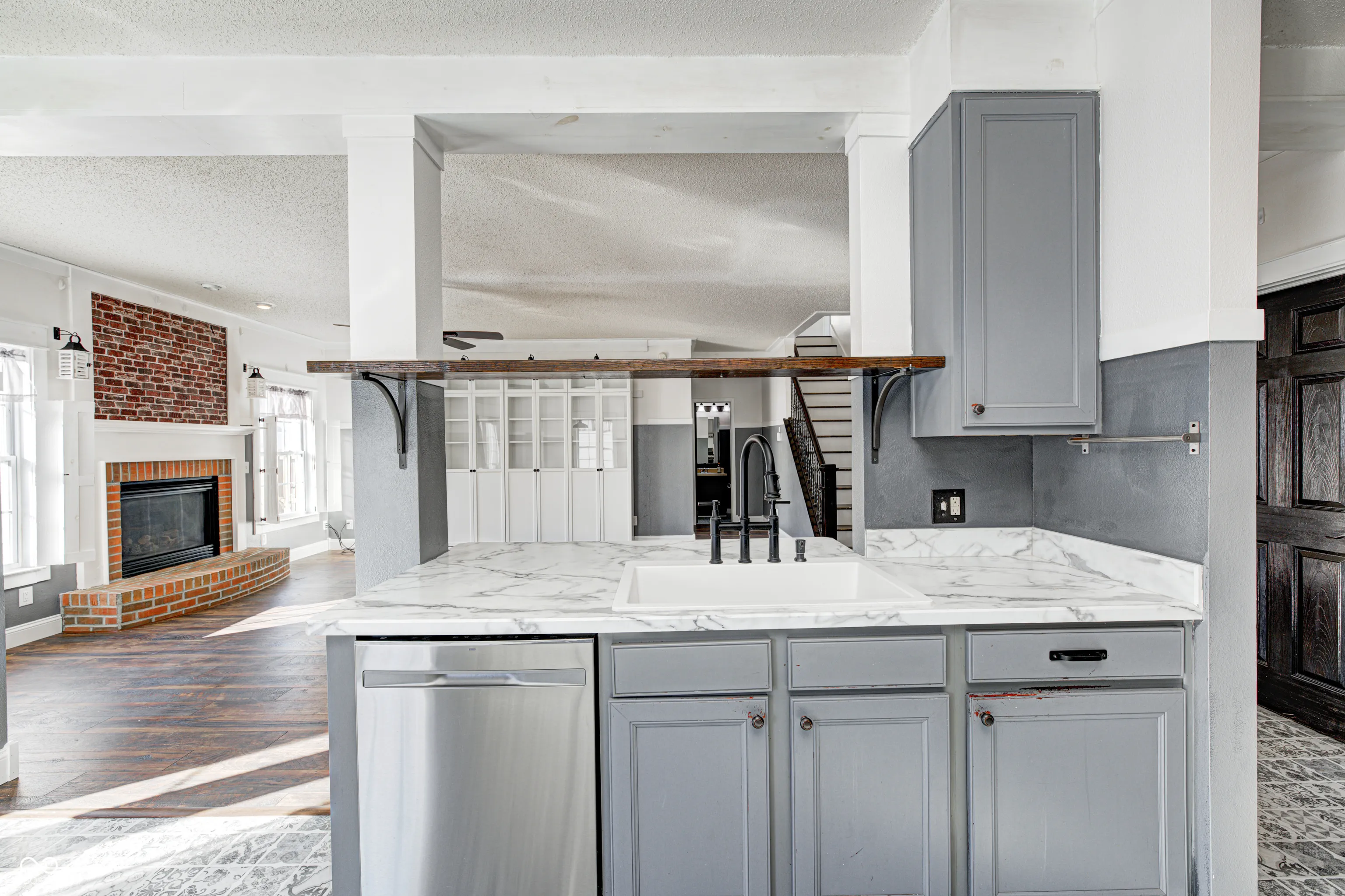 WELCOME HOME! This Amazing Home home is ready for immediate move-in. The interior rooms and appliances have been professionally cleaned, new carpet installed in the Primary Bedroom & Closet as well as the Mechanical Room. New flooring added in 2024 to the Downstairs Kitchen, Pantry, Foyer, Family Room, and the three Upstairs Bedrooms. Newer Flooring was installed in 2018 to the Living Room, Downstairs Bedroom, and Loft areas. New toilets in all bathrooms. Want more?? You Got It. New Roof & Attic Fan were replaced in 2024 along with the Water Heater, a Humidifier and Allergy System also added to the HVAC. In 2023, a New Concrete Patio and Privacy Fence were installed and the Dishwasher was replaced. IMPRESSED? The sellers have completely remodeled this home from the ground up and no expense has been spared. The massive floorplan offers over 3,600 square feet of organized living space featuring Five Bedrooms and Three Full Bath areas. One of the Bedrooms and Full Bath is located on the Main Level and creates a perfect In-Law Living Space or a Private Suite for out of town visits from family or friends on an extended stay. All the Secondary Bedrooms are oversized at 13’x13′, 14’x11′ and 14’x12′ and will accommodate the largest of bedroom furnishings. The Primary Bedroom is massive at 23’x20′, has a huge walk-in closet and a recently remodeled bath area which succeeded in transforming that room from average to outstanding with its oversized Walk-in Shower, Dual Sink Vanity, and Privacy Toilet. Huge 25’x25′ Loft Area completes the Upper Level of the home showcasing a full wall of Built-In Library bookcases with lighting and flexibility to be used in a vast number of ways. The main level Family Room has a beautiful floor to ceiling Fireplace and custom white bookcases with accent lighting. The Kitchen includes a full set of Stainless Steel appliances, upgraded plumbing fixtures, and a center island with seating for three. Large Breakfast area is adjacent to kitchen.