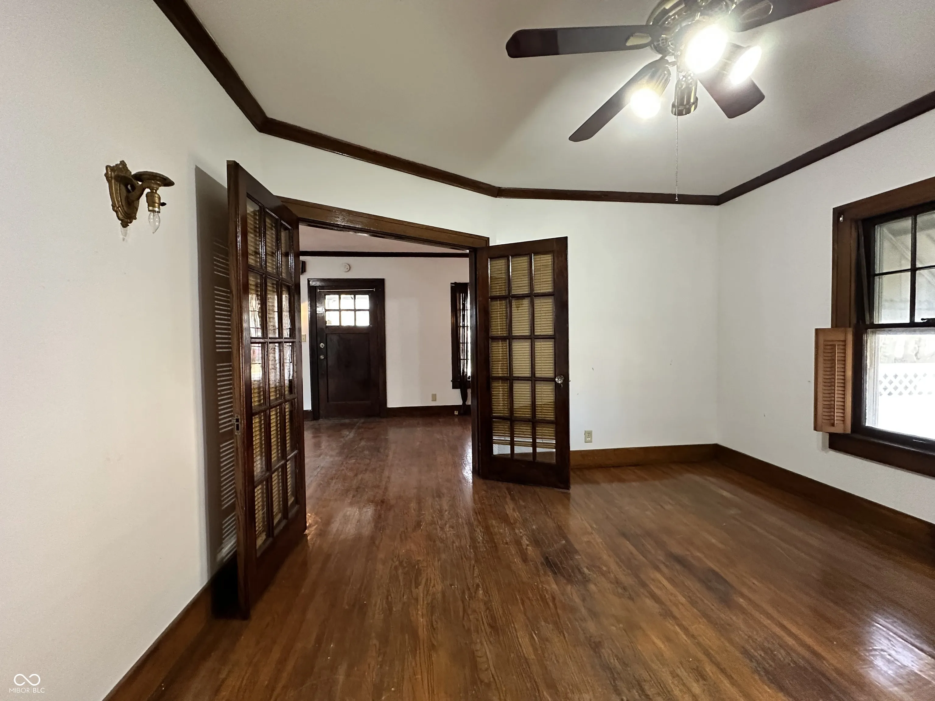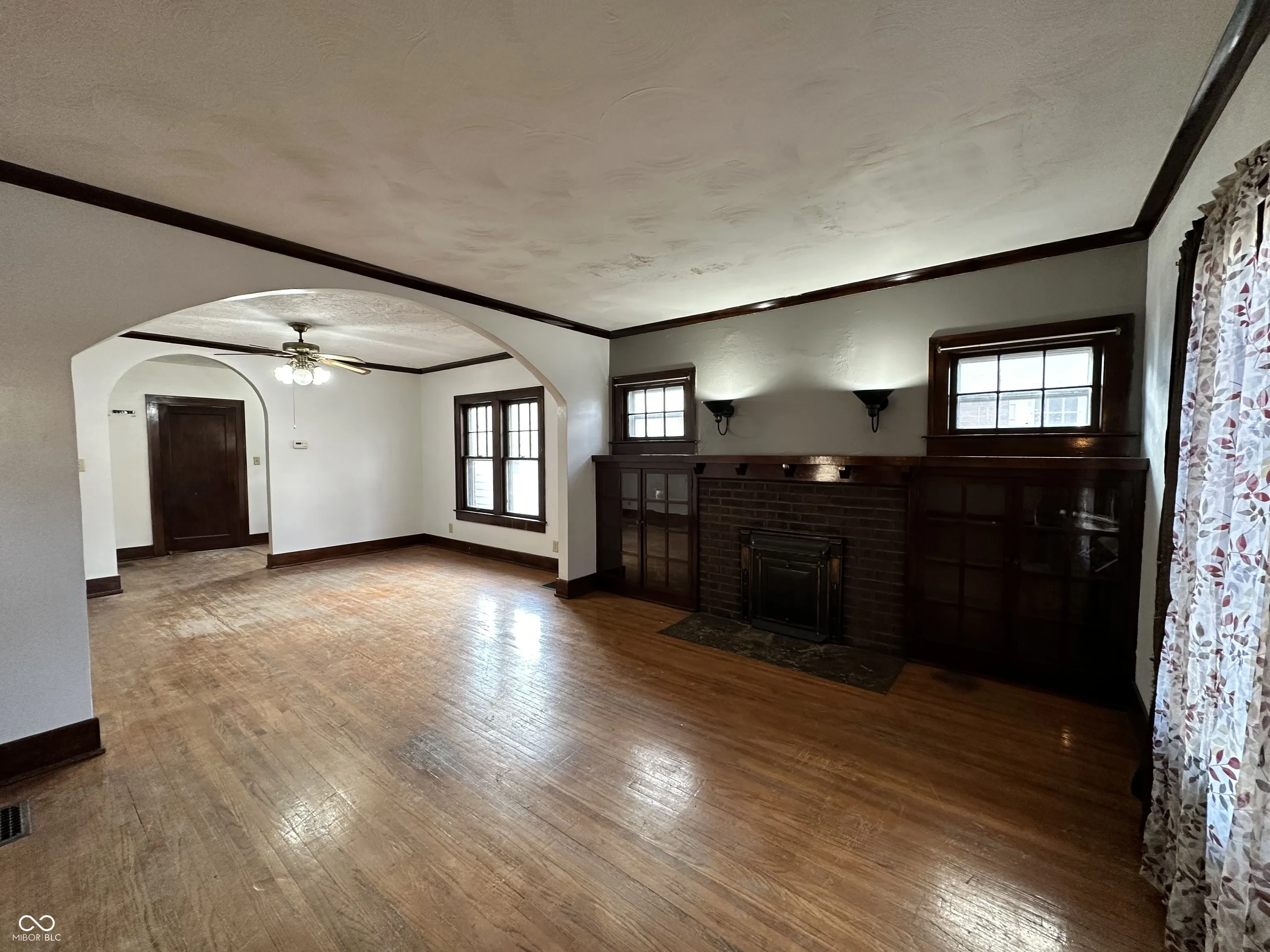 Do you love the OLD CHARM in historic homes? Step into one of-a-kind move in ready Craftsman that features wrap around bricks structure with inviting fireplace, boasts hardwood floors throughout first floor with matching crown molding. Cozy and spacious 2 bedrooms on 1st floor. 1st floor also features separate dining room and a den. House had recent updates with new roof in 2024, remodeled kitchen, basement had new drywalling with electrical outlets that could accommodate 2 additional bedrooms. House also has spacious fenced-in backyard and detached 2 car garage with workshop benches. Seller to offer buyer concession for closing. This dwelling is being SOLD AS-IS