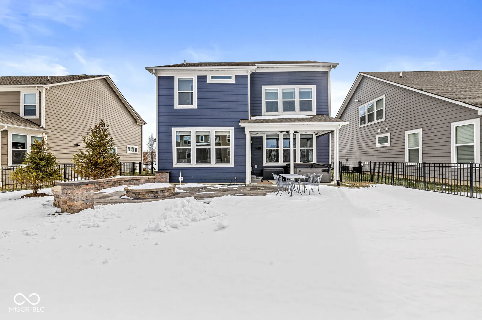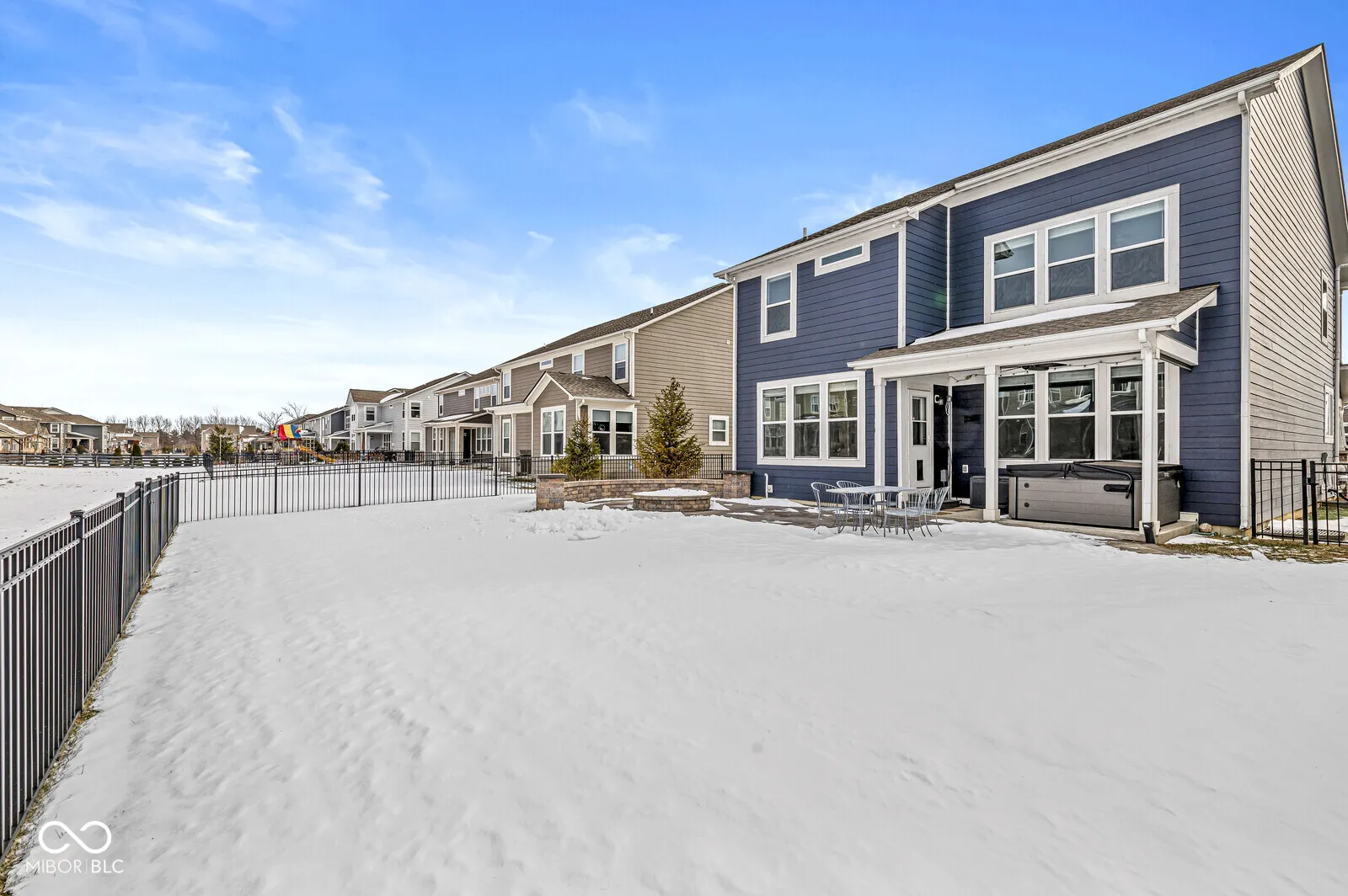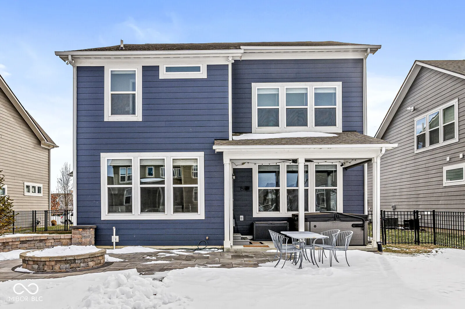 Welcome to Liberty Ridge! Exceptional home offers multiple living spaces with an open floor plan & seamless indoor-outdoor living. Spacious kitchen shines with sleek quartz countertops, center island & coffee bar, large walk-in pantry & dining area. Mudroom & private home office complete main level. Upstairs you’ll find 4 generous bedrooms & versatile loft. Lux primary suite boasts double sinks, large shower & walk-in closet conveniently connected to the laundry room. Finished basement is complete with LVP flooring, home theater with projector, screen & surround sound, plus rough-in for future bathroom. Step outside to your dream outdoor living area. Covered back porch with new privacy screens leads you to a fully fenced backyard designed for relaxation & entertainment. Custom paver patio, gas fire pit, ambient lighting, lush landscaping & irrigation system so you can keep the yard looking its best. Ample storage with an oversized 2-car garage, EV charger, large closets & more storage in the basement. Catty corner from the community pool. Don’t miss out – schedule your showing today!