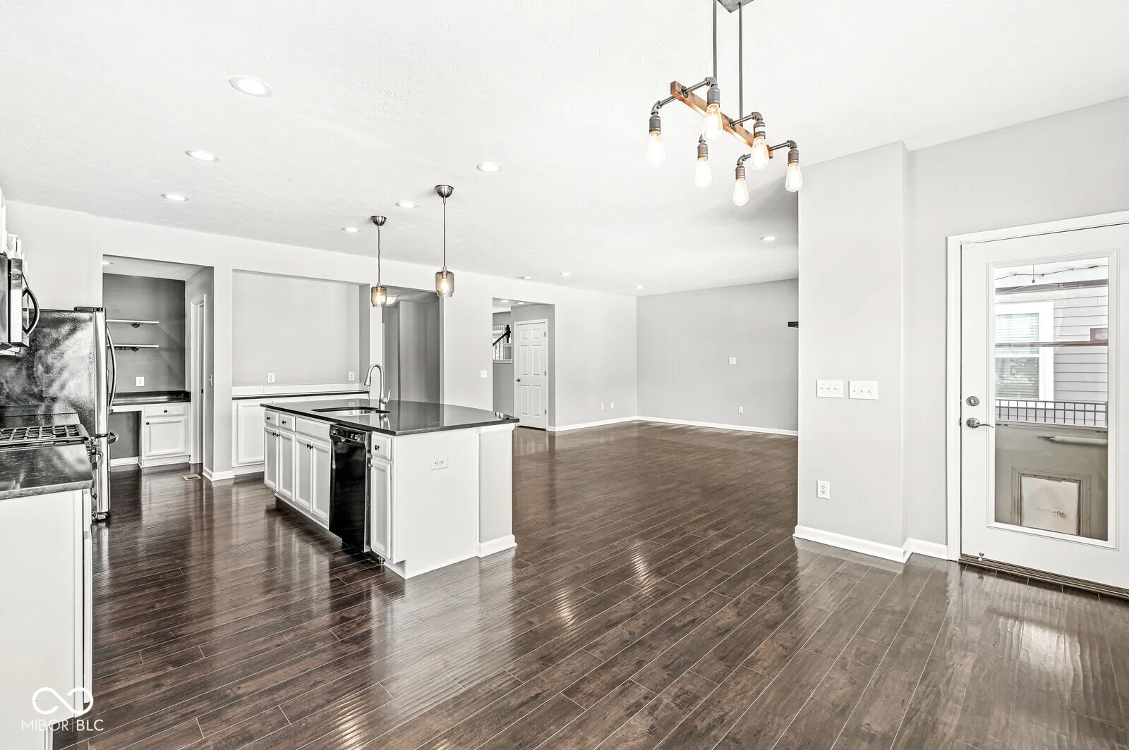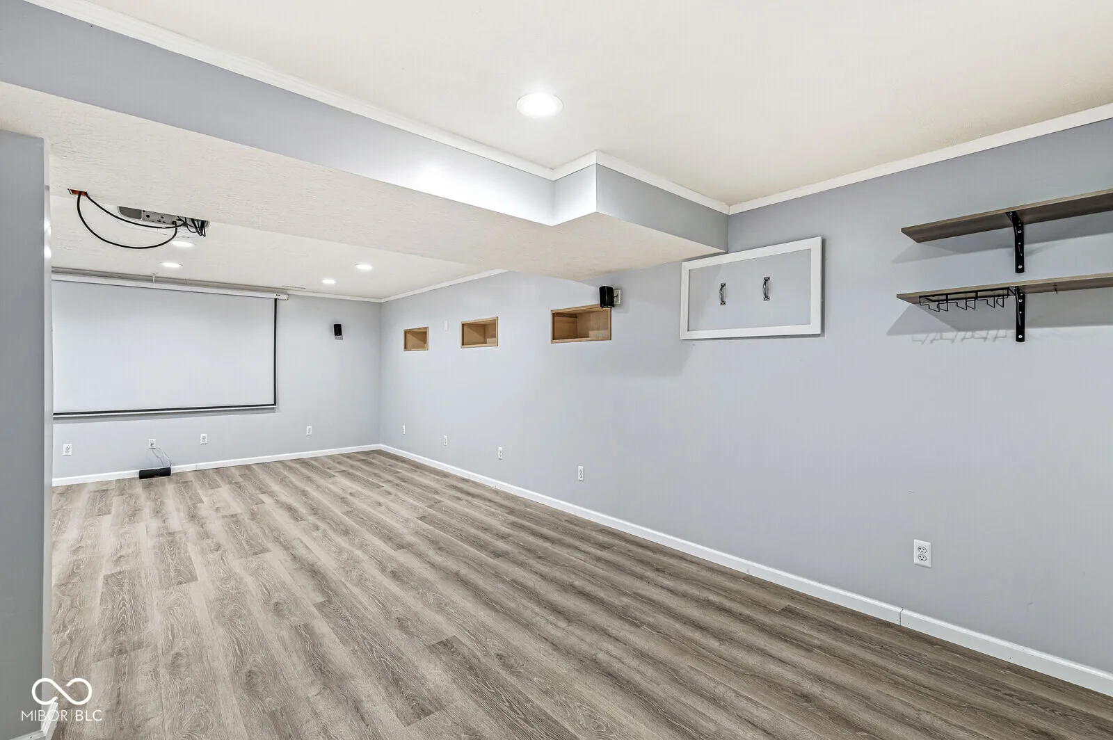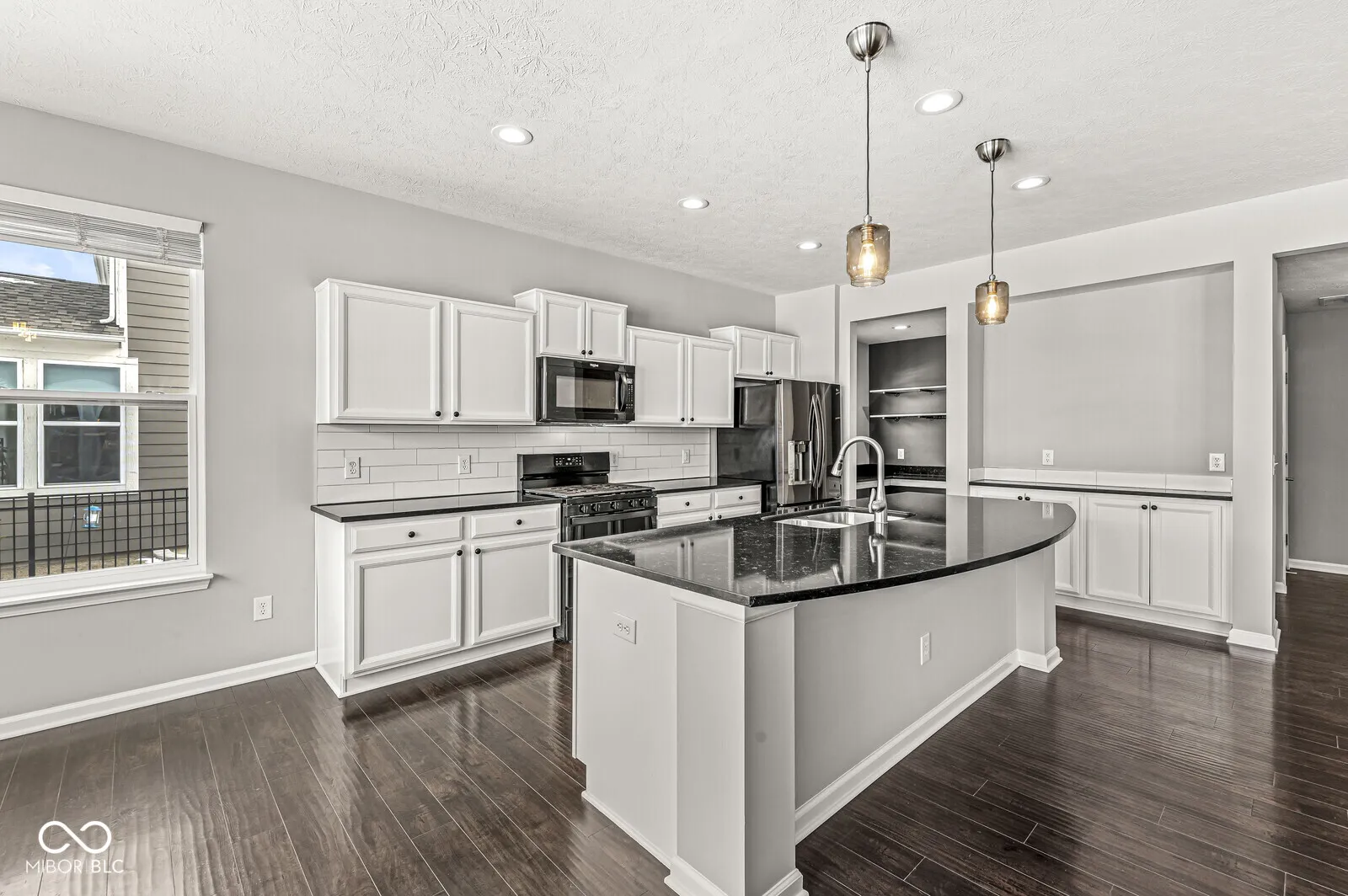 Welcome to Liberty Ridge! Exceptional home offers multiple living spaces with an open floor plan & seamless indoor-outdoor living. Spacious kitchen shines with sleek quartz countertops, center island & coffee bar, large walk-in pantry & dining area. Mudroom & private home office complete main level. Upstairs you’ll find 4 generous bedrooms & versatile loft. Lux primary suite boasts double sinks, large shower & walk-in closet conveniently connected to the laundry room. Finished basement is complete with LVP flooring, home theater with projector, screen & surround sound, plus rough-in for future bathroom. Step outside to your dream outdoor living area. Covered back porch with new privacy screens leads you to a fully fenced backyard designed for relaxation & entertainment. Custom paver patio, gas fire pit, ambient lighting, lush landscaping & irrigation system so you can keep the yard looking its best. Ample storage with an oversized 2-car garage, EV charger, large closets & more storage in the basement. Catty corner from the community pool. Don’t miss out – schedule your showing today!