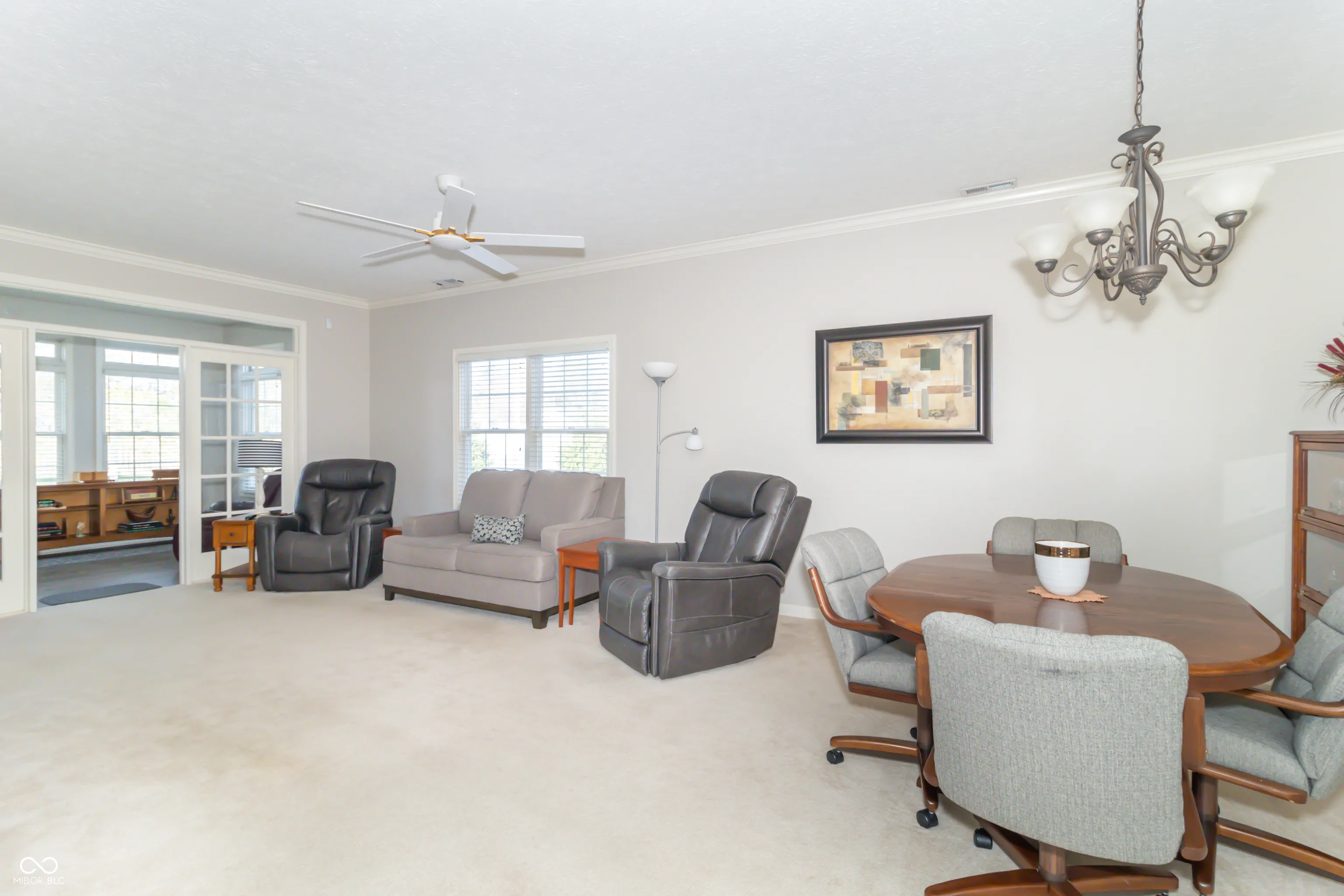 Welcome to your dream Condo in this 55 + Neighborhood! This stunning residence offers an array of features designed for comfort and convenience. The kitchen, a spacious 15×10 area, boasts new vinyl plank flooring and is equipped with all essential appliances: range, over-the-range microwave, fridge, dishwasher, washer, dryer, and garbage disposal. With ample cabinet storage, all your culinary needs are met. Step into the expansive 15×25 great room with 9ft ceilings. Cozy up by the natural gas fireplace, adorned with custom stone surround, and showcase your treasures on the custom-built shelf. Enjoy the natural light of the large sun-room, also complete with new vinyl plank flooring, making it the perfect spot to enjoy your morning coffee. Unwind on your private 10×10 patio, taking in serene views. Retreat to the primary suite, featuring a walk-in closet and a stand-up shower equipped with a grab bar. This Condo also offers a comfortable spare bedroom with ample storage space. The interior has been freshly painted, including trim, woodwork, ceilings, and walls, ensuring a move-in-ready experience. The HOA maintains the grounds, including grass cutting, fertilization, mulch, trash, snow removal, roofing, and siding! This Condo combines luxury and convenience in one perfect package. Don’t miss the opportunity to make it yours!