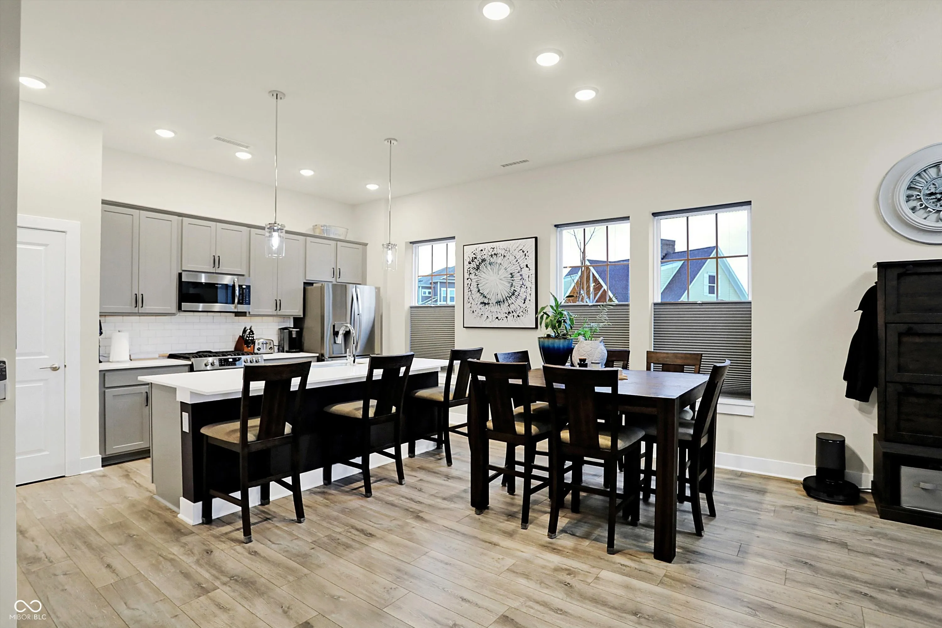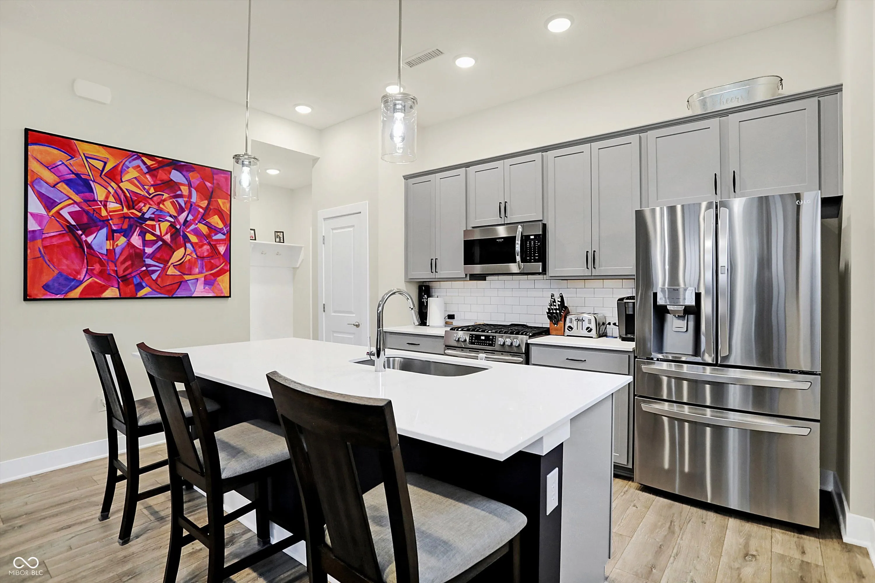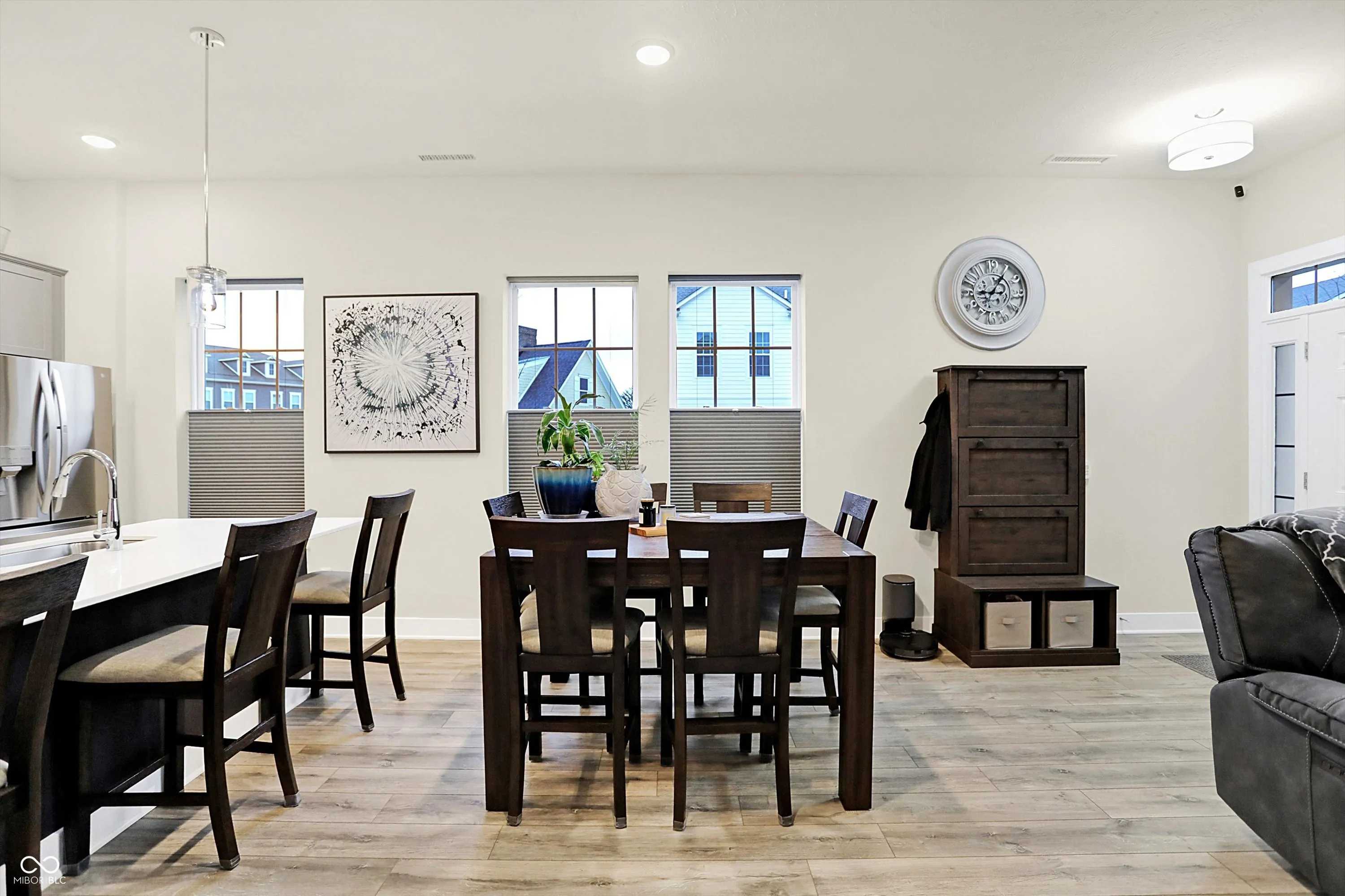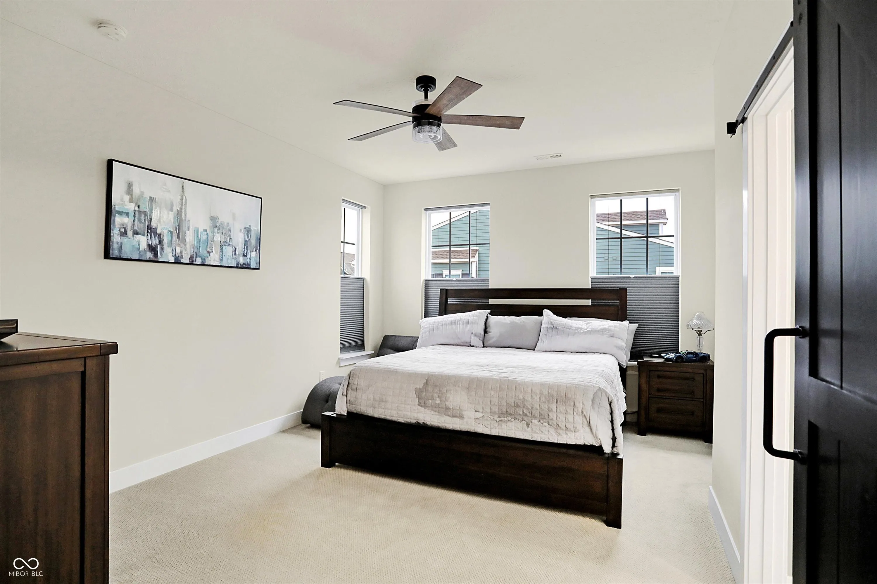 This exceptional 3-bedroom, 2.5-bath townhome, built in 2022, offers modern style, thoughtful upgrades, and an unbeatable location adjacent to the clubhouse and pool, with additional parking. Inside, the bright, open-concept floor plan provides a welcoming space for daily living and entertaining. The kitchen features a large island with plenty of counter space for meal prep and gathering. All stainless steel appliances stay, including a new refrigerator. Thoughtful enhancements throughout the home include a custom barn door, a glass shower door, a smart thermostat, and up/down room darkening blinds. The laundry room is equipped with a washer, dryer, and added shelving for extra convenience. The garage has been meticulously upgraded with an epoxy-coated floor, concrete sealant on the driveway and porch, insulation, a keypad, a smart sensor, and an EV charging outlet. The home features a comprehensive security system, including an alarm, cameras, a video doorbell, and smart locks. Additional upgrades include a whole-home water softener and filtration system. Just minutes from Carmel’s Midtown, Arts District, Palladium, Monon Trail, Clay Terrace, and more, this property places you at the center of everything that makes Carmel an exceptional place to live. Your search stops here!