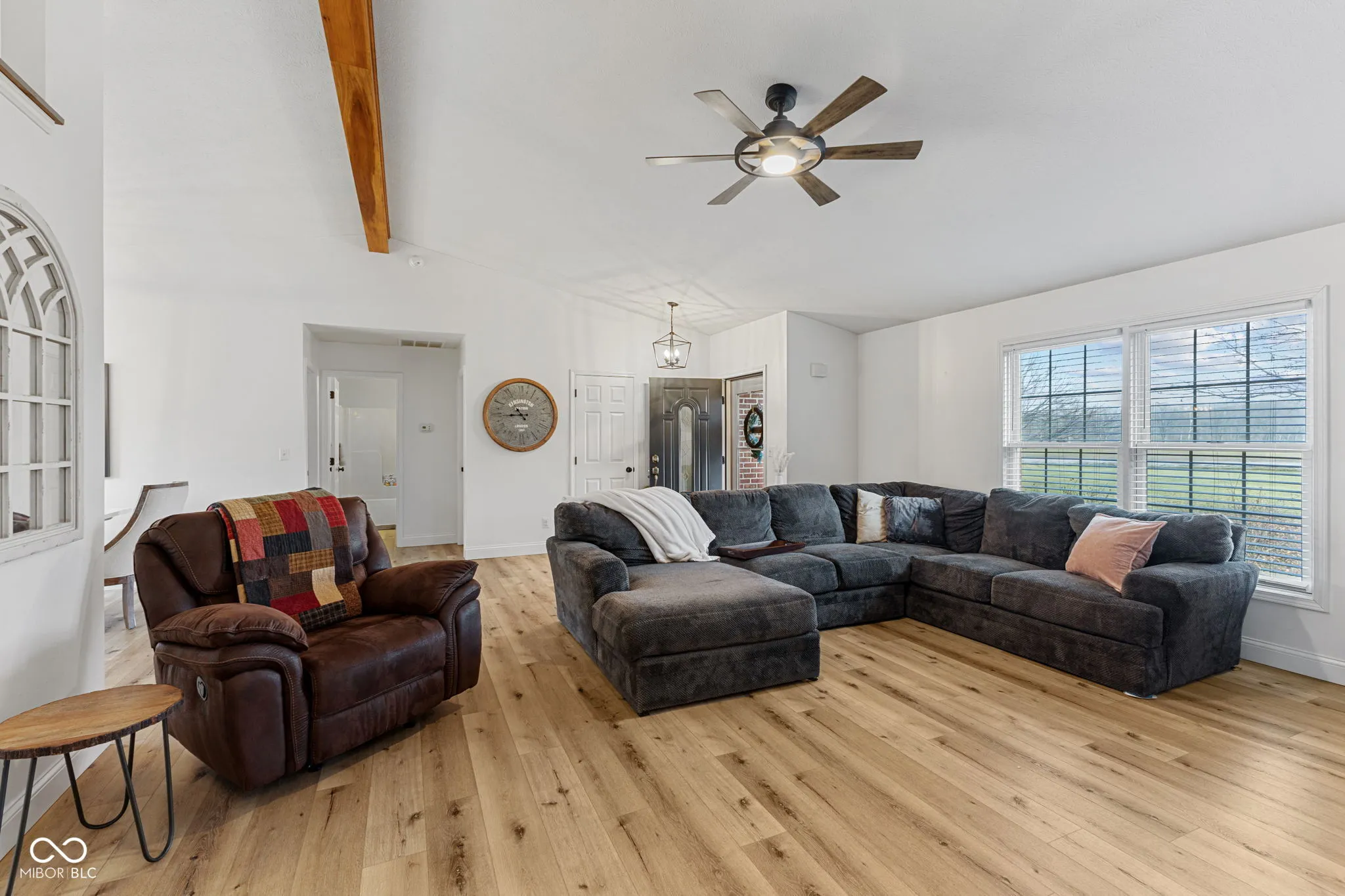 Welcome to your dream home, nestled on a sprawling 1.28-acre lot! This charming all-brick, three-bedroom, two-bathroom residence features a desirable split floor plan, offering privacy and comfort for the whole family. Step inside to discover brand new Luxury Vinyl Plank (LVP) flooring that flows seamlessly throughout the living spaces. The heart of the home boasts a bright, open and spacious living area perfect for entertaining or relaxing, while the well-appointed kitchen boasts a brand new sink, new solid surface countertops, and newer stainless steel appliances. The primary suite is a serene retreat, complete with walk in closet & an en-suite bathroom for added convenience. Enjoy outdoor living on your expansive property, ideal for gardening, play, or simply relaxing in nature. The fantastic location of this property provides easy access to Indy, Greenfield, Fortville, McCordsville and Pendleton! Don’t miss this opportunity to own a slice of tranquility!