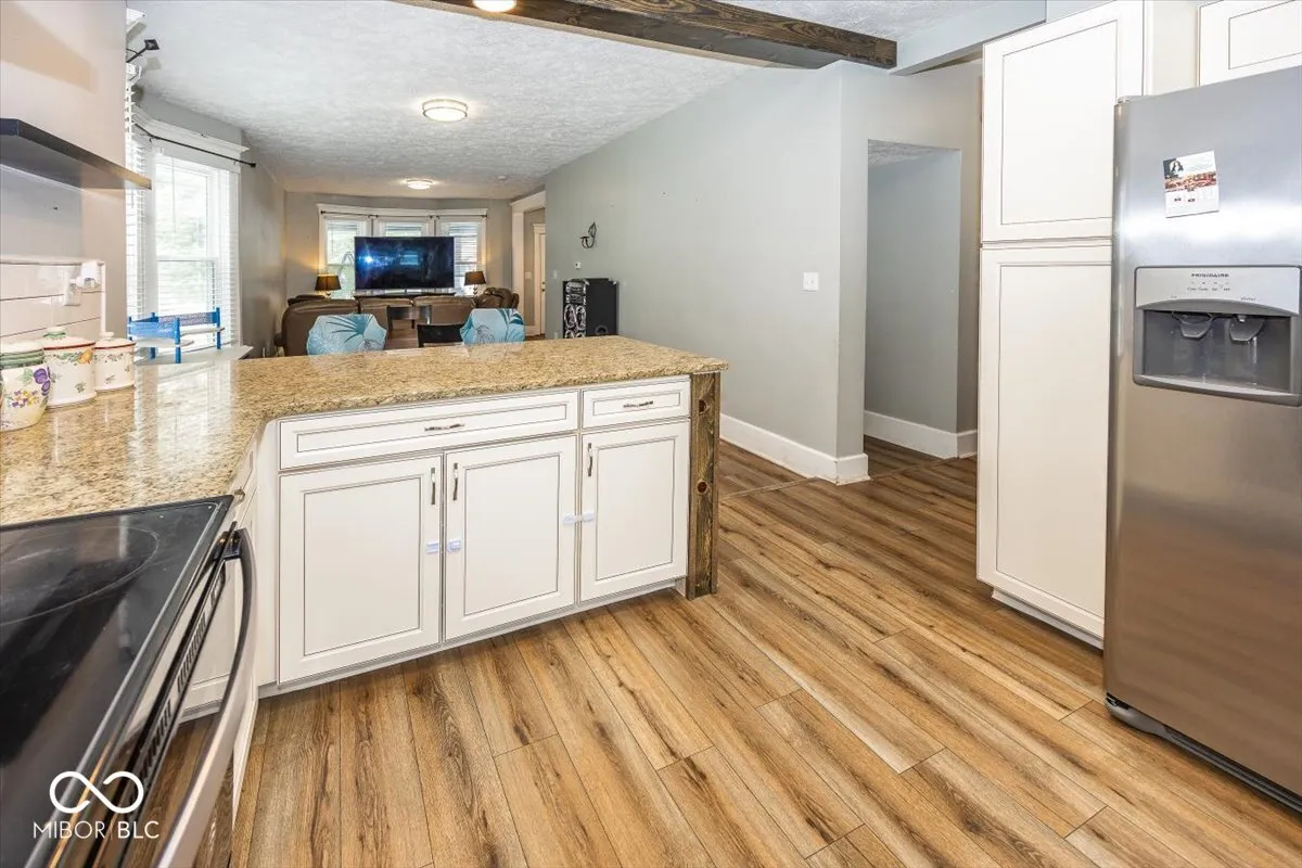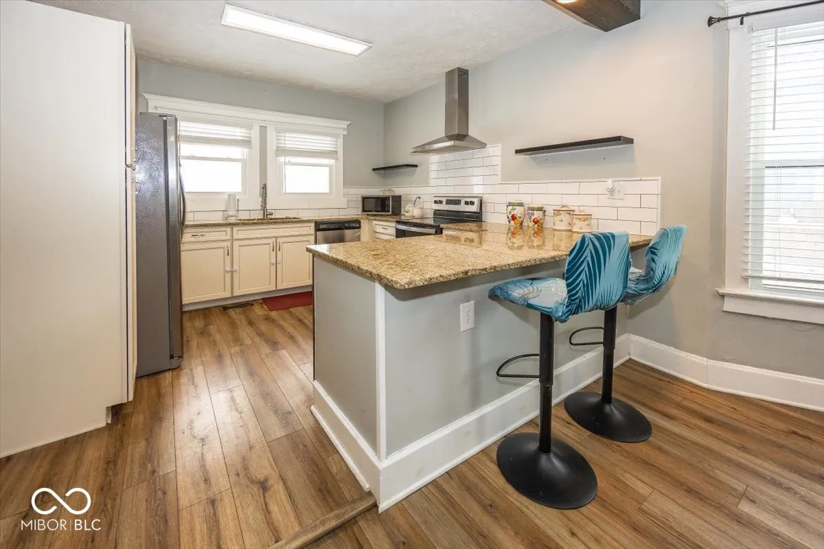 You must see this beautifully updated home on a larger corner lot, enclosed by a 6 ft vinyl privacy fence at the rear and a charming vinyl picket fence in front. The exterior features white Hardie plank siding and a spacious covered front porch. Inside, the open floor plan seamlessly connects the main living area to the dining space and an updated kitchen, complete with granite countertops, stainless steel appliances, and luxury vinyl plank flooring.This three-bedroom home includes a main-level bedroom, an upper-level primary suite with a full bath featuring a subway tile shower and a walk-in closet, along with an additional bedroom and full bath. Recent upgrades such as newer windows, roof, gutters, and newer HVAC system provide peace of mind. This home merges original charm with modern improvements across more than 2,200 square feet, offering ample parking, practicality, and an unfinished lower level with plenty of space for storage.