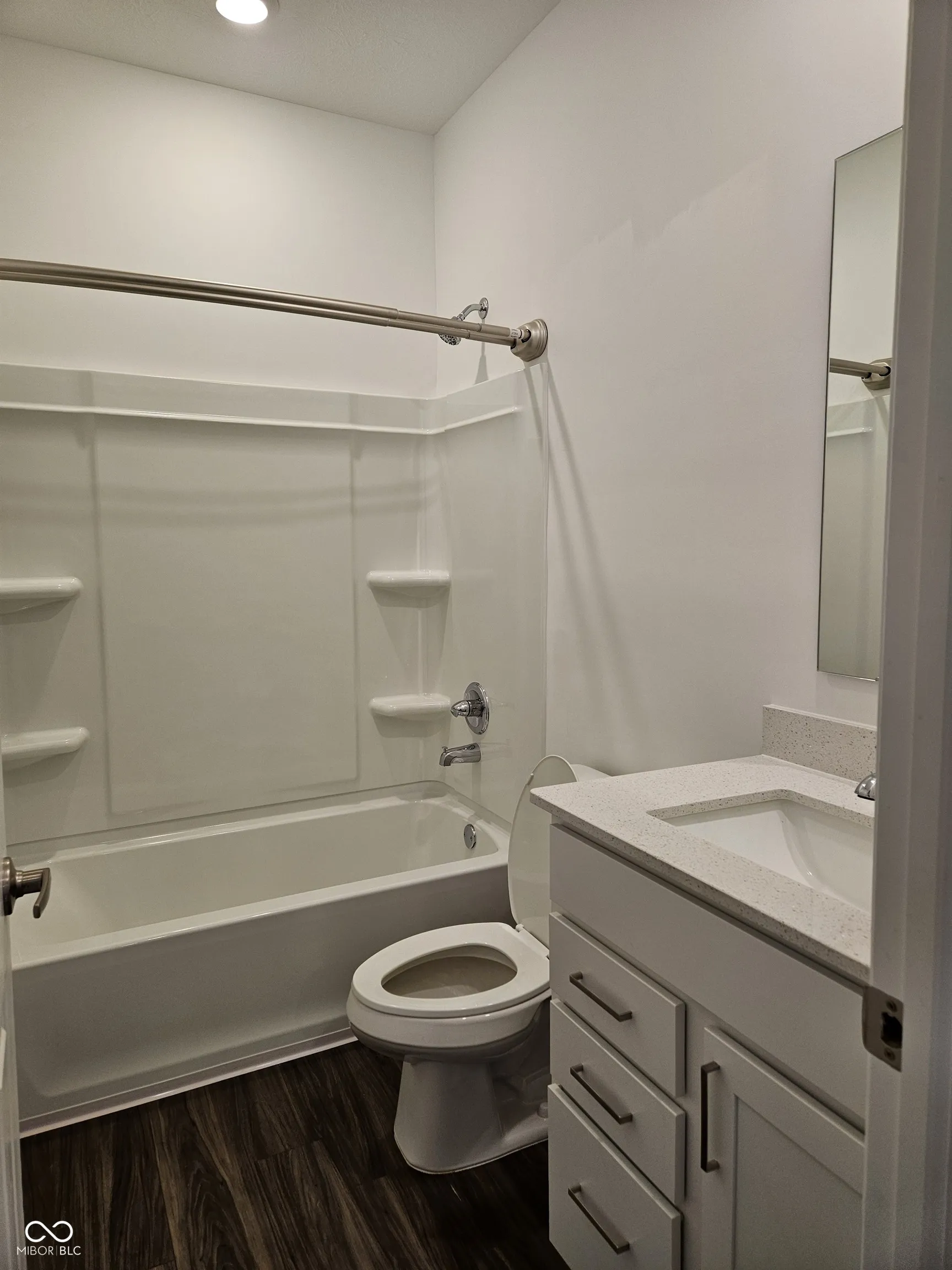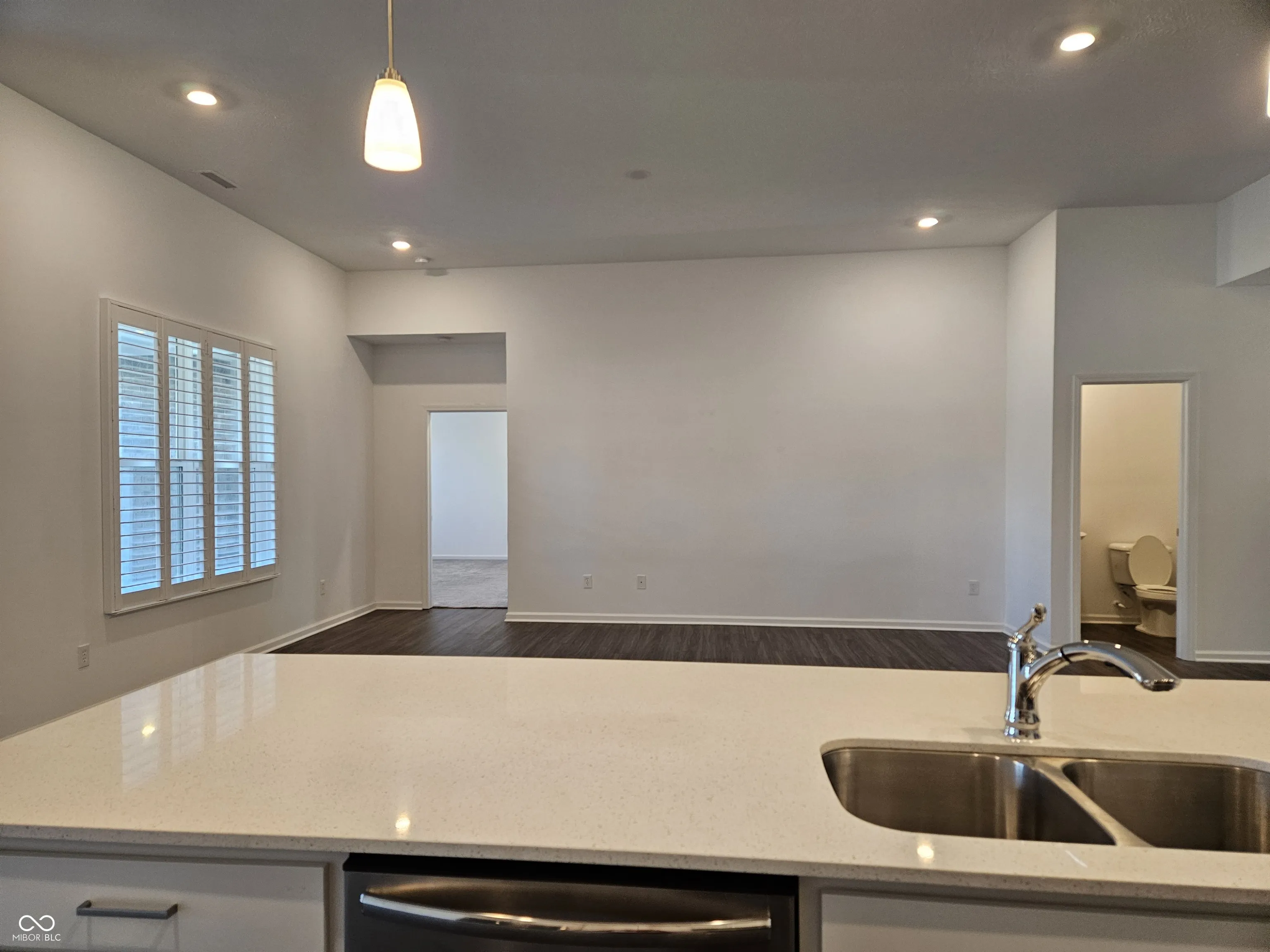 Almost brand new and move-in ready! This home is a clean slate, allowing you to make it your own. Featuring 4 bedrooms and 2 1/2 bathrooms, the open-concept design includes a spacious great room, kitchen, and dining area all in one. The gourmet kitchen boasts a large quartz countertop, a gas range, an electric oven, and a built-in microwave. All kitchen appliances are stainless steel. The master suite is conveniently located off the living room, including a double sink bathroom and a generous walk-in closet. There is also a step-in shower stall. The attached 2 1/2 car garage has an approximate 8×8 storage area. Yard maintenance and snow removal are included in the HOA fees.