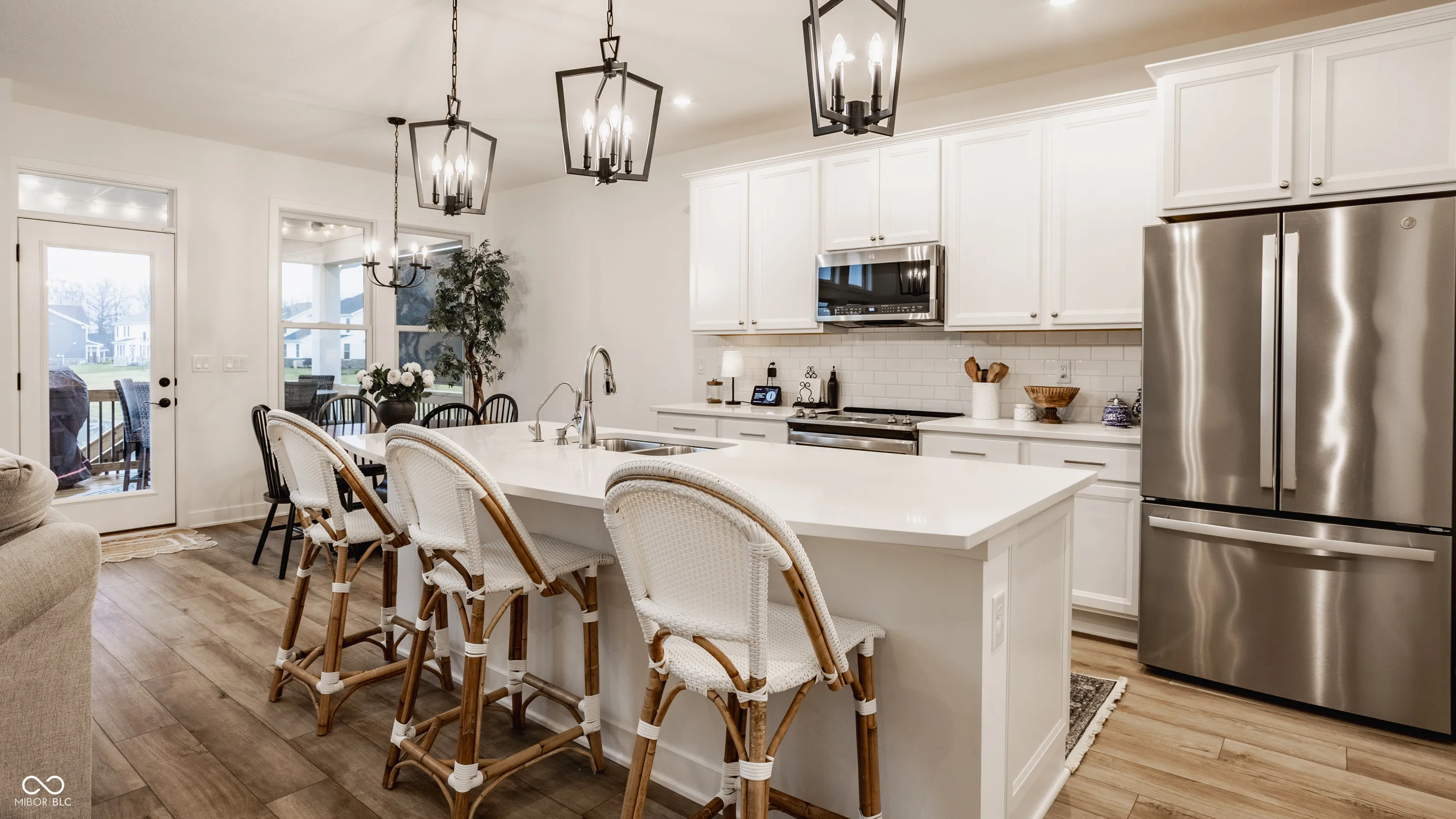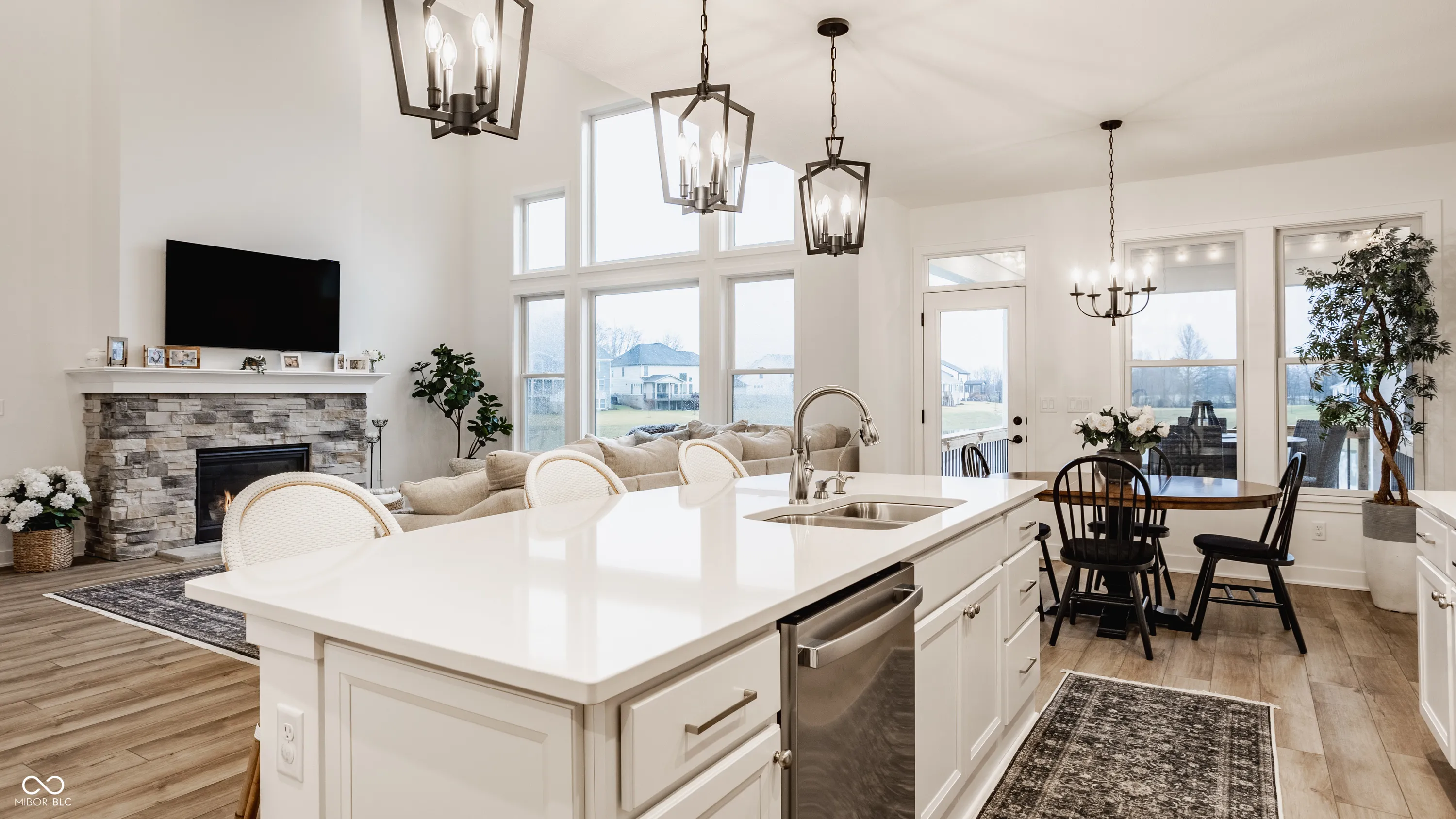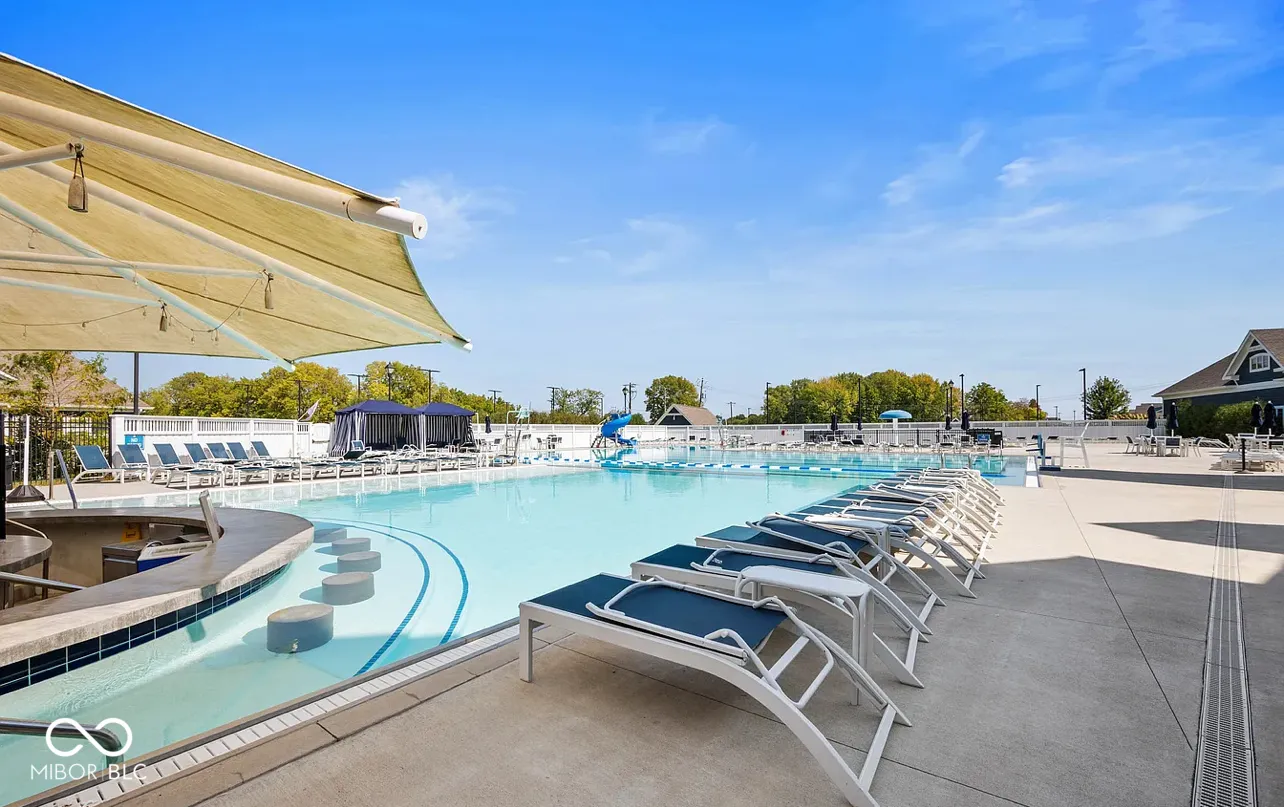 If you’ve been dreaming of living in one of Westfield’s most sought-after communities, this is your chance. Less than a year old, this semi-custom home is perfectly situated on the pond and offers an expansive main-level primary suite with a bright and elegant en-suite with a floor-to-ceiling tiled walk-in shower and a large walk-in closet. The soaring two-story family room is perfect for cozy nights by the fireplace, with walls of windows that provide serene views of the pond throughout the main level.Enjoy one of the two covered porches, which offer privacy and a year-round sense of vacation! The kitchen is a dream, equipped with upgraded GE stainless steel appliances, a large center island, white cabinets and quartz countertops, and subway-tiled backsplash all evoke a modern-day farmhouse aesthetic. The upper level includes a comfortable loft, two bedrooms with walk-in closets, and a full bath. The partially finished basement offers endless possibilities! Enjoy an additional family room, playroom, or home office. The basement is also plumbed for a wet bar or kitchenette. The unfinished area features a large egress window allowing for the addition of a fourth bedroom and is plumbed for a full bath. Additionally, the home includes a true three-car garage with a bump, offering ample space for bikes, cars, and a golf cart, new plantation shutters, Anderson windows, a water softener, r/o system, radon system, and an alarm system. Residents have access to Resort Style amenities with the included $15,000 sports and social membership! Enjoy the world-renowned Pete Dye 3-par, nine hole golf course, driving range, an exclusive clubhouse, indoor and outdoor pools with a swim up bar and food service, a bowling alley, pickleball, basketball, and tennis courts, a fitness center with childcare and a variety of classes, two restaurants, playground, dog park, and the famous Monon Trail which runs through the community. Why build when you can move right in to this dream home!