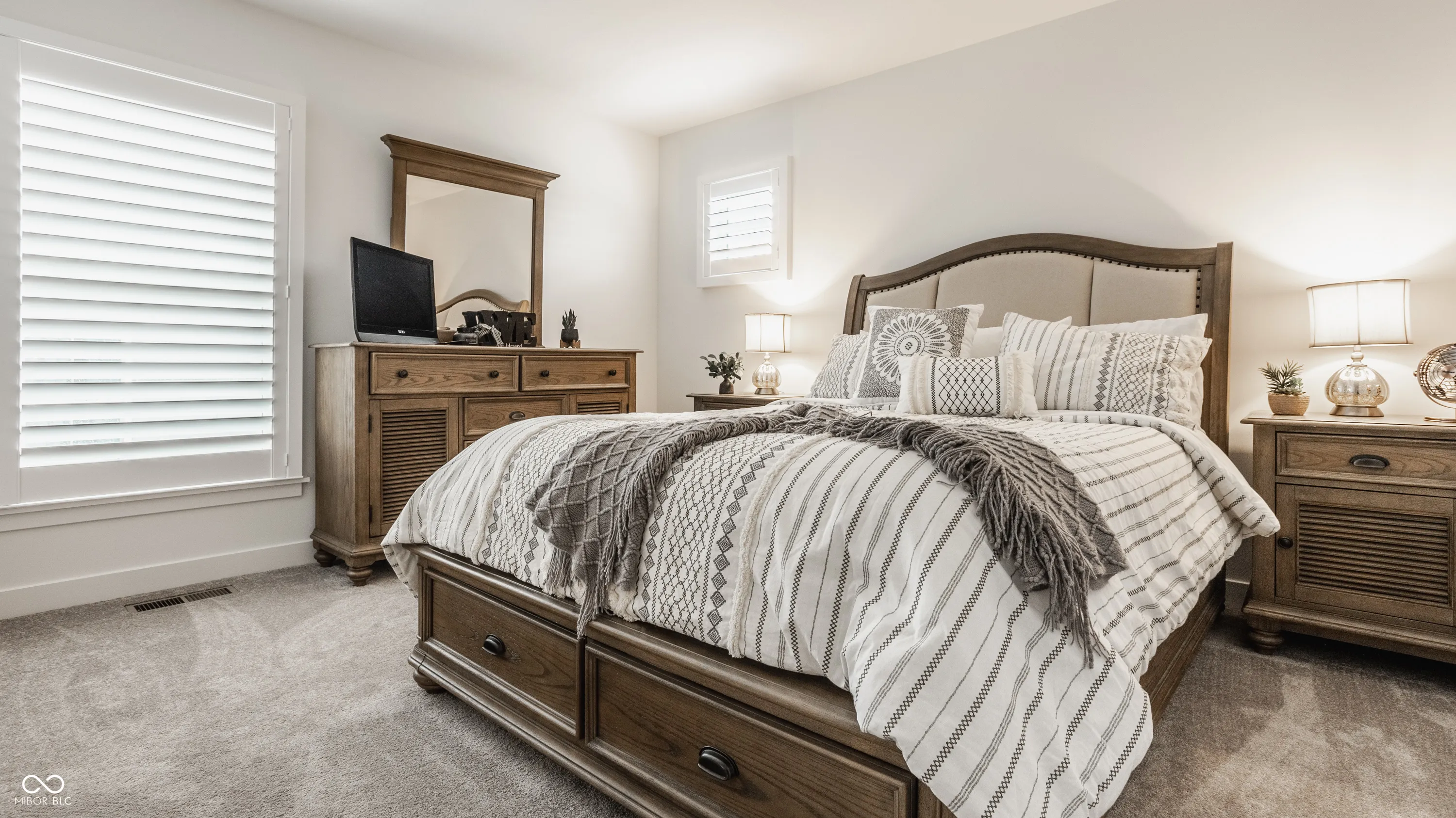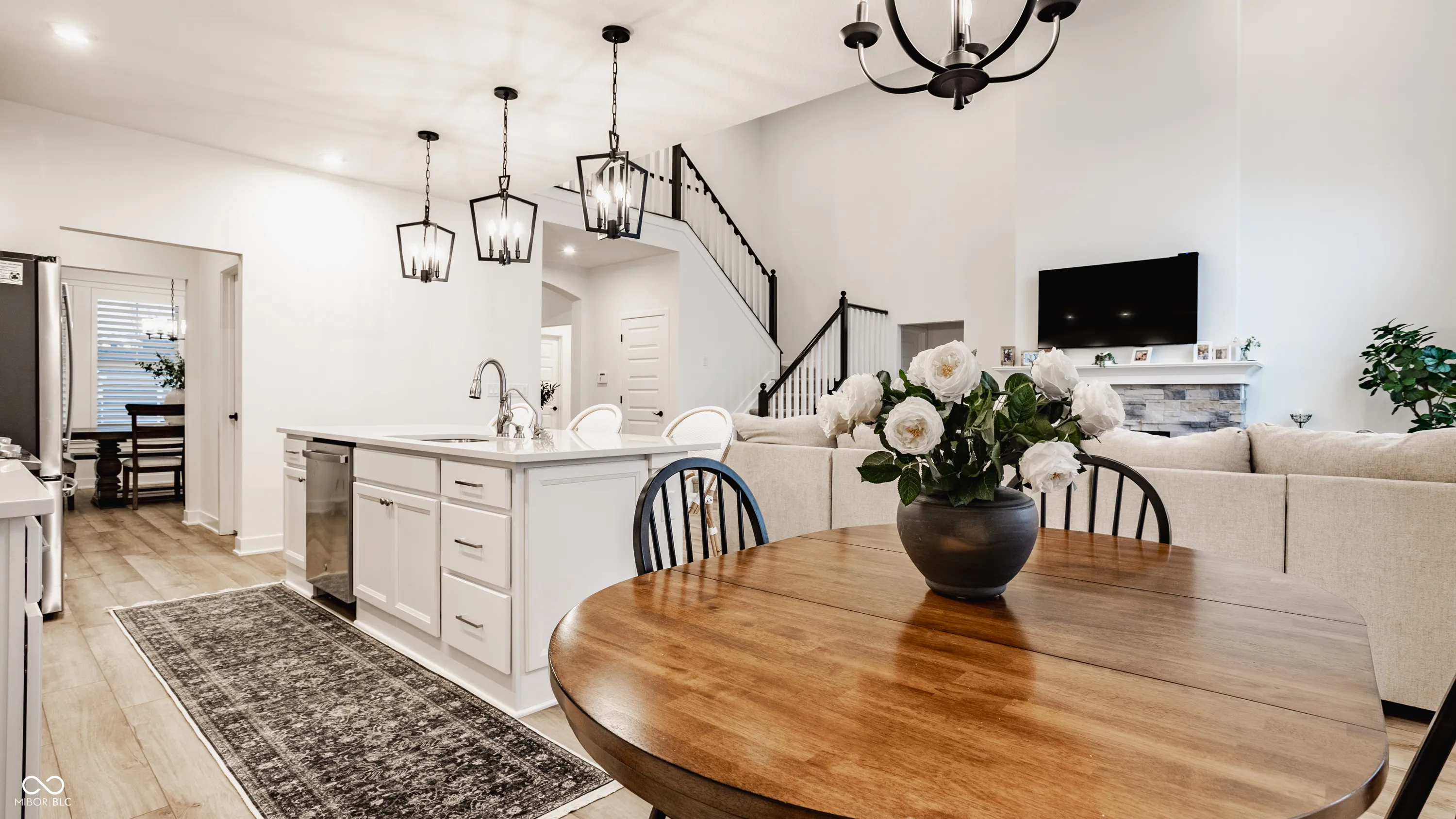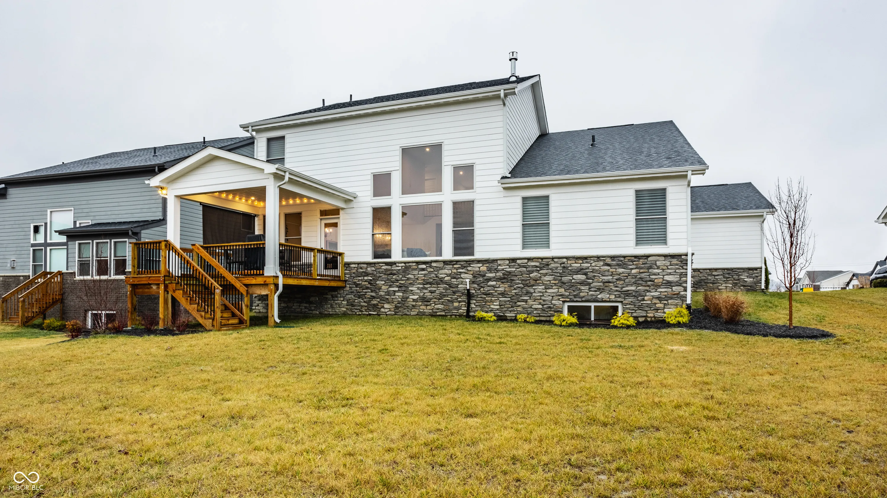 If you’ve been dreaming of living in one of Westfield’s most sought-after communities, this is your chance. Less than a year old, this semi-custom home is perfectly situated on the pond and offers an expansive main-level primary suite with a bright and elegant en-suite with a floor-to-ceiling tiled walk-in shower and a large walk-in closet. The soaring two-story family room is perfect for cozy nights by the fireplace, with walls of windows that provide serene views of the pond throughout the main level.Enjoy one of the two covered porches, which offer privacy and a year-round sense of vacation! The kitchen is a dream, equipped with upgraded GE stainless steel appliances, a large center island, white cabinets and quartz countertops, and subway-tiled backsplash all evoke a modern-day farmhouse aesthetic. The upper level includes a comfortable loft, two bedrooms with walk-in closets, and a full bath. The partially finished basement offers endless possibilities! Enjoy an additional family room, playroom, or home office. The basement is also plumbed for a wet bar or kitchenette. The unfinished area features a large egress window allowing for the addition of a fourth bedroom and is plumbed for a full bath. Additionally, the home includes a true three-car garage with a bump, offering ample space for bikes, cars, and a golf cart, new plantation shutters, Anderson windows, a water softener, r/o system, radon system, and an alarm system. Residents have access to Resort Style amenities with the included $15,000 sports and social membership! Enjoy the world-renowned Pete Dye 3-par, nine hole golf course, driving range, an exclusive clubhouse, indoor and outdoor pools with a swim up bar and food service, a bowling alley, pickleball, basketball, and tennis courts, a fitness center with childcare and a variety of classes, two restaurants, playground, dog park, and the famous Monon Trail which runs through the community. Why build when you can move right in to this dream home!