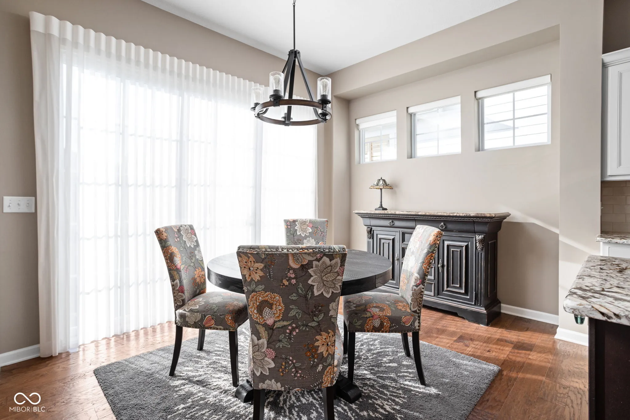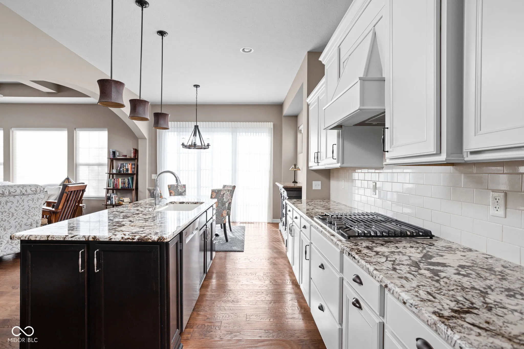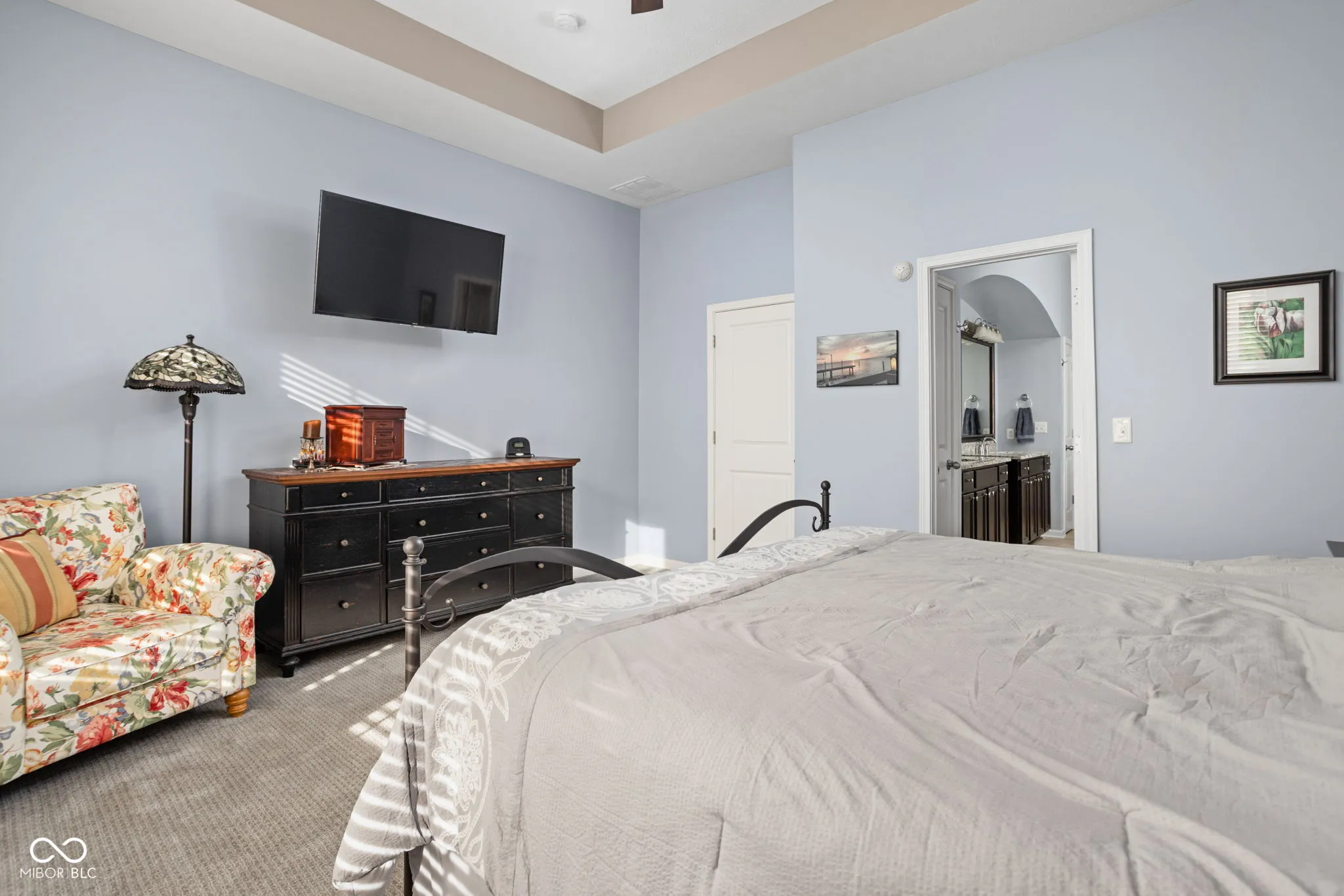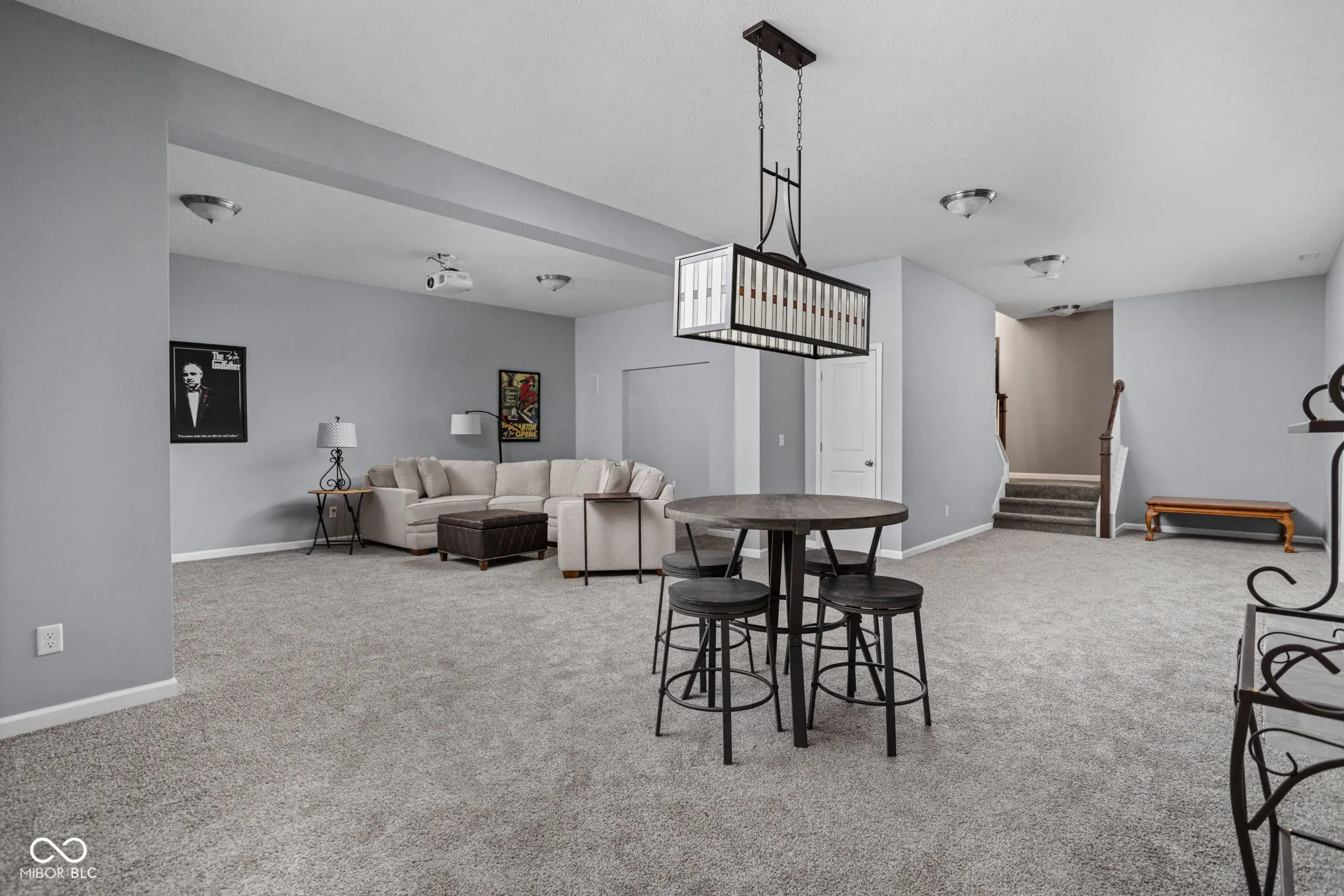Located in the sought-after Harmony community and situated on a corner lot, this Estridge home was designed for main-floor living. The open floor plan is bright and welcoming, enhanced by large windows, coffered ceilings, a cozy fireplace, and hardwood flooring. The kitchen features crisp white cabinets, granite counters, and stainless steel appliances. A large center island is perfect for prepping your culinary creations or gatherings. The main level primary bedroom is spacious and features tray ceilings. The primary ensuite includes a separate shower and soaking tub. The impressive custom walk-in closet provides plenty of storage and organization. Upstairs, two additional bedrooms offer comfortable accommodations for family or guests. A highlight of this property is the finished basement, equipped with a theater screen and equipment, a wet bar, and a full bathroom, perfect for entertainment or relaxation. Outside, the private, fully fenced yard boasts beautiful landscaping, architectural lighting, a pergola, and a tranquil water feature, creating an ideal backdrop for relaxation or entertaining. Residents of Harmony enjoy access to an array of amenities, including the Harmony Club for neighborhood events and activities, walking trails, parks, green spaces, exercise facilities, a pool, racquet courts, and more, offering a peaceful yet active lifestyle. Close to Wood Wind Golf Course, restaurants, and shopping.