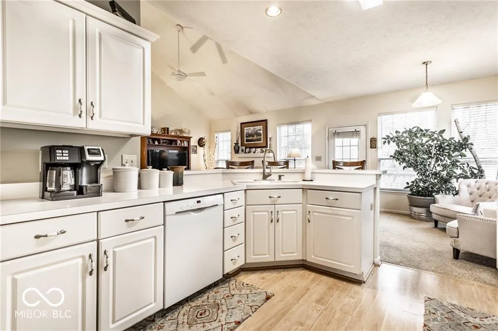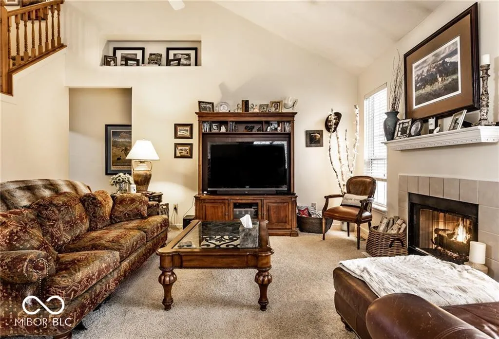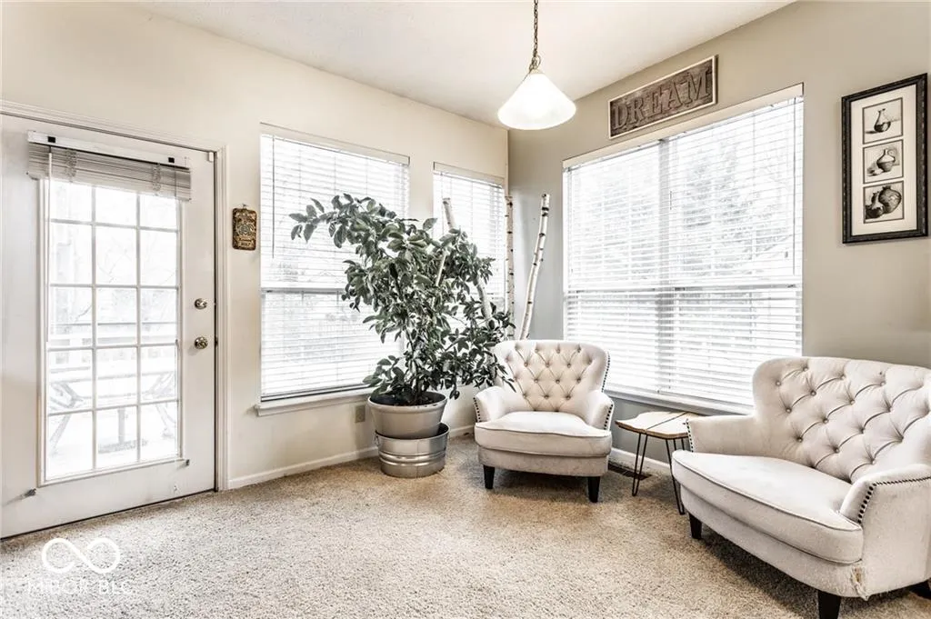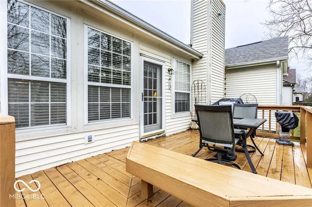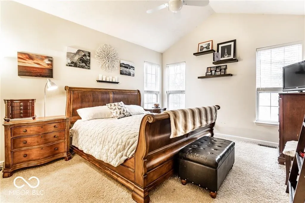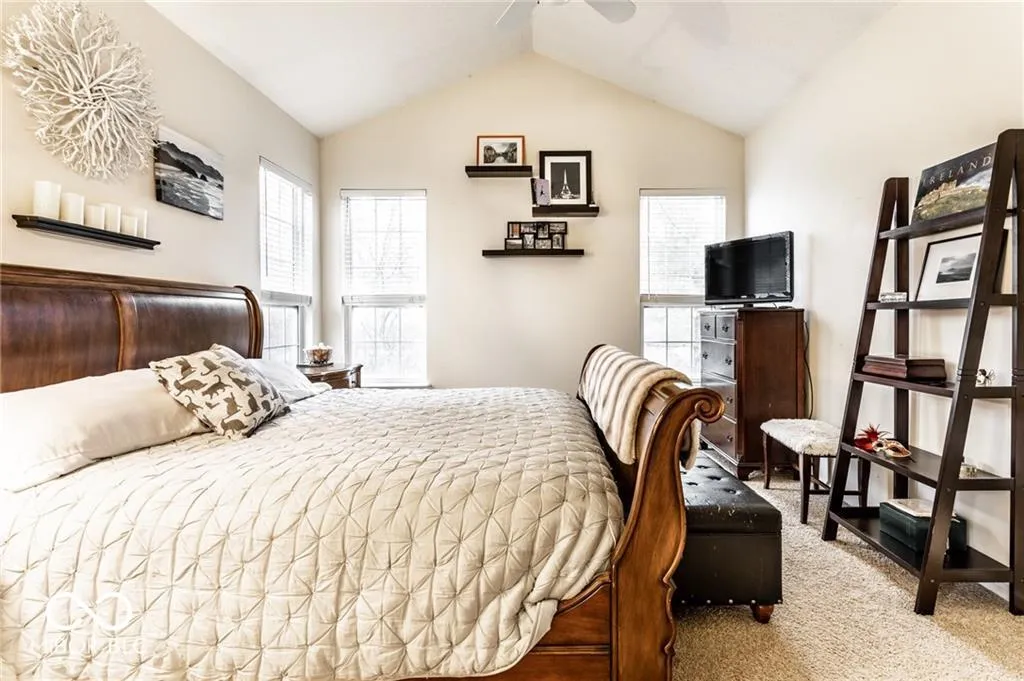 Charming Home for Lease in an Ideal Location! Just across from Carmel’s Central Park and the Monon Trail, this home offers the perfect blend of comfort and convenience. The home provides an open floor plan with a dramatic 2-story entrance. The spacious great room features soaring cathedral ceilings and a gas log fireplace, creating an inviting atmosphere.The pristine kitchen boasts a pantry, breakfast bar, and ample cabinet space, making it an ideal space for both cooking and entertaining. The main level primary suite is a true retreat, complete with a cathedral ceiling, walk-in closet, double vanity, and a relaxing garden tub. Upstairs, two generously sized bedrooms with updated carpeting and wood plantation blinds offer plenty of space and privacy. A large finished garage provides excellent storage options, while the home’s picturesque setting on a serene pond offers peaceful views from the deck – the perfect spot to unwind. Welcome home!