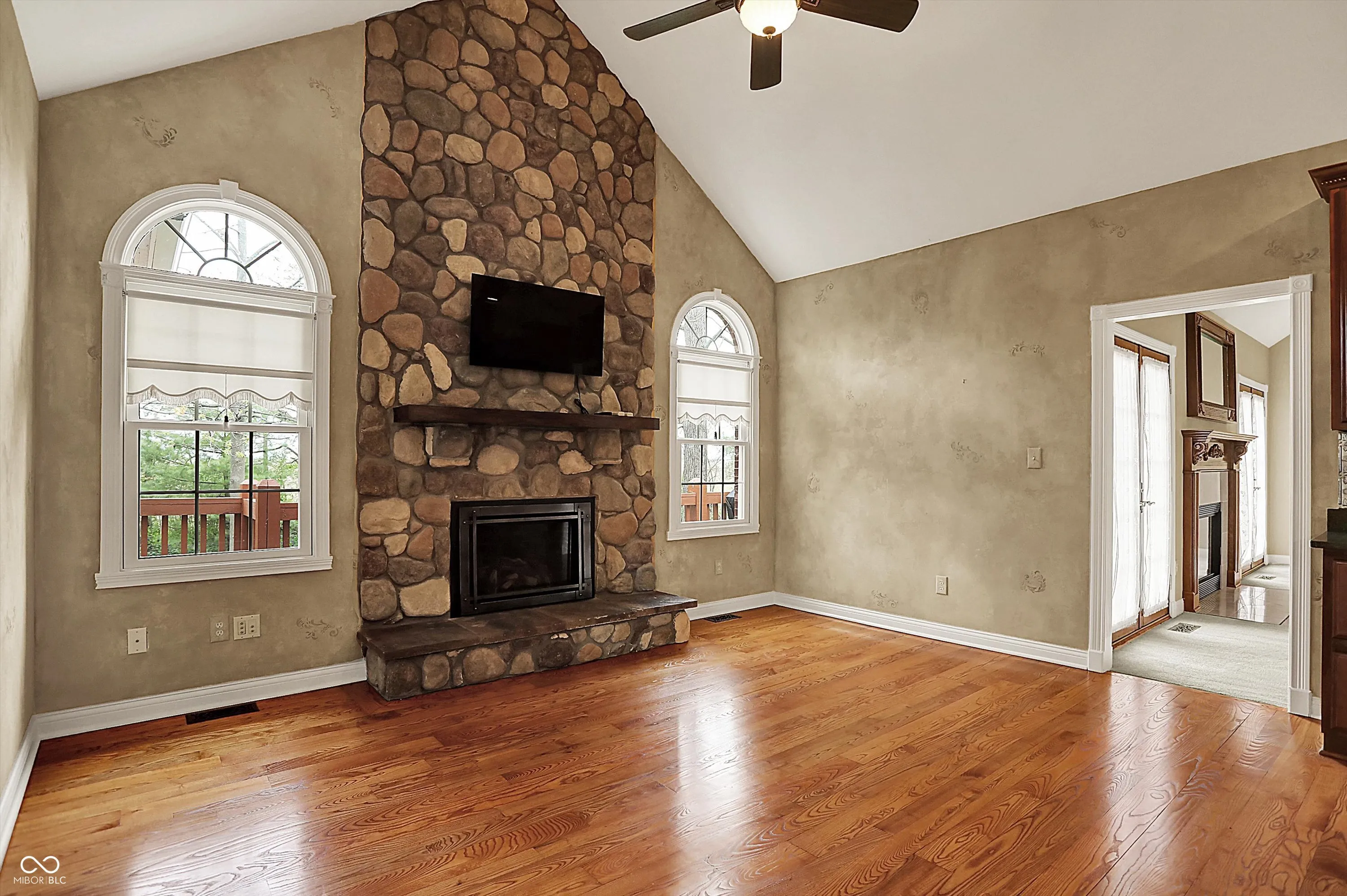 This is the FOURTH price reduction, sellers are motivated, come see this now before it is gone!! Don’t miss this rare opportunity to own a stunning custom brick home on a lovely, wooded lot in Greenfield. From the moment you step into the grand two-story foyer the craftsmanship stands out with the rich hardwood floors to hand painted walls. The spacious great room impresses with vaulted ceilings, a striking fireplace and walnut mantle creating a warm elegant gathering space. French doors lead to a private office with custom wainscoting while the formal dining room offers a refined space for entertaining. The gourmet kitchen is truly the heart of this home and features double ovens, gas range, custom cabinetry and a large walk-in pantry. This huge open space flows into a cozy hearth room with a stone fireplace, charming breakfast nook, and a sunlit four-season sunroom overlooking a serene backyard. The main level bedroom suite is a peaceful retreat with tray ceiling and spa-like bath with garden jacuzzi tub, large shower and walk in closet. Upstairs has three large bedrooms, two full bathrooms, and two walk-in-attic accesses for all your storage needs. The finished basement was designed for relaxation and entertainment. It boasts a gorgeous custom ash and walnut bar (sourced from property), theater room with fireplace and surround sound, a pool room inclusive of table, work out area, full bath, and large utility room for more storage! Additional features include, deep 3 car garage with gas heater and work benches, large laundry room, large deck, stereo speaker system throughout the first floor, and abundant natural light, etc. Photos do not do justice to the home. This home is a rare steal at this price; you have to come see it to believe it!
