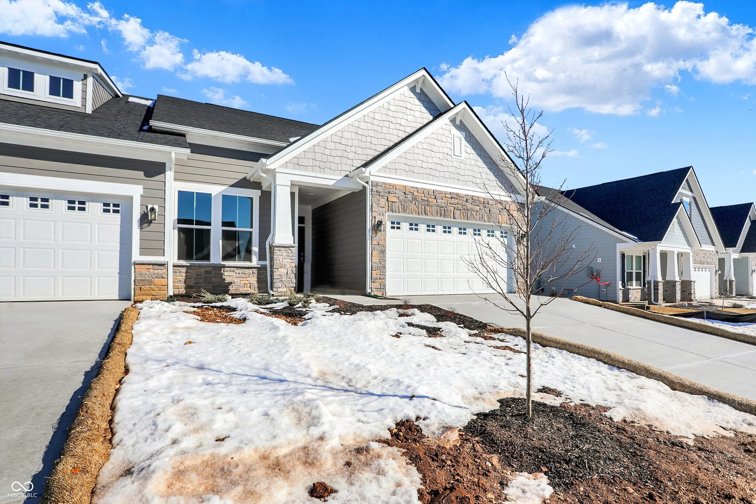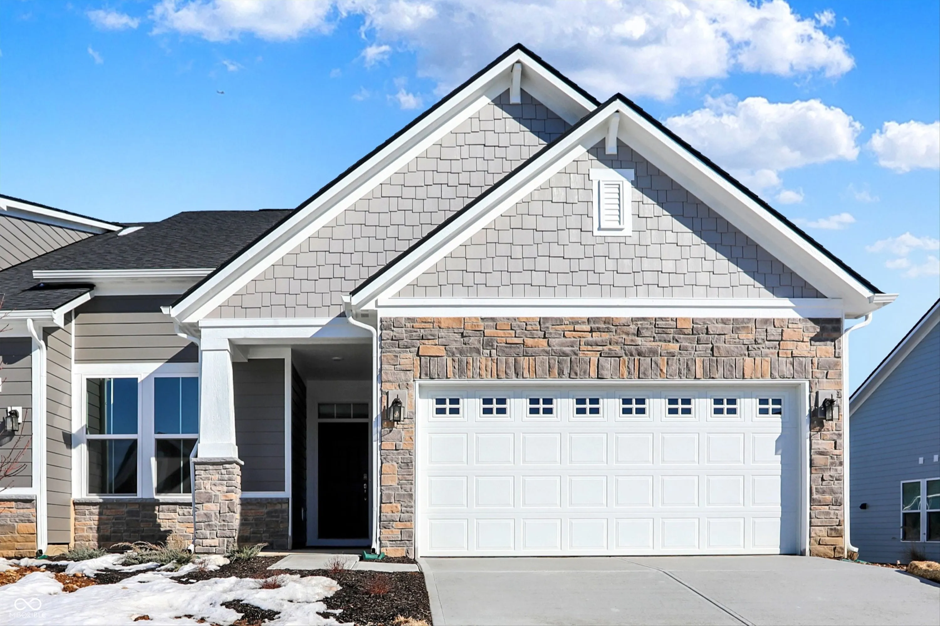 New Construction: New single-story duet offering the best in low maintenance living right in Noblesville. Lawn care & snow removal included in low monthly fee. Open concept home boasts a large kitchen w/island, staggered kitchen cabinetry with crown molding, soft close drawers, tile backsplash & quartz counters. Other features include a sunlit morning room, cozy fireplace, and extended 12×10 concrete patio. Designer finishes include luxury plank flooring in main living areas, upgraded shiplap fireplace with wood mantle, cabinet hardware, and upgraded interior door style. This ENERGY STAR certified, and Indoor air PLUS qualified home saves you money on monthly utility bills! One of the last opportunities to own a brand new home in the very popular Millers Walk community! Photos are of actual home with a few model pictures to show staging. Builder is offering up to $5k toward closing cost w/Choice Lender if contract is signed by 01/31/25.