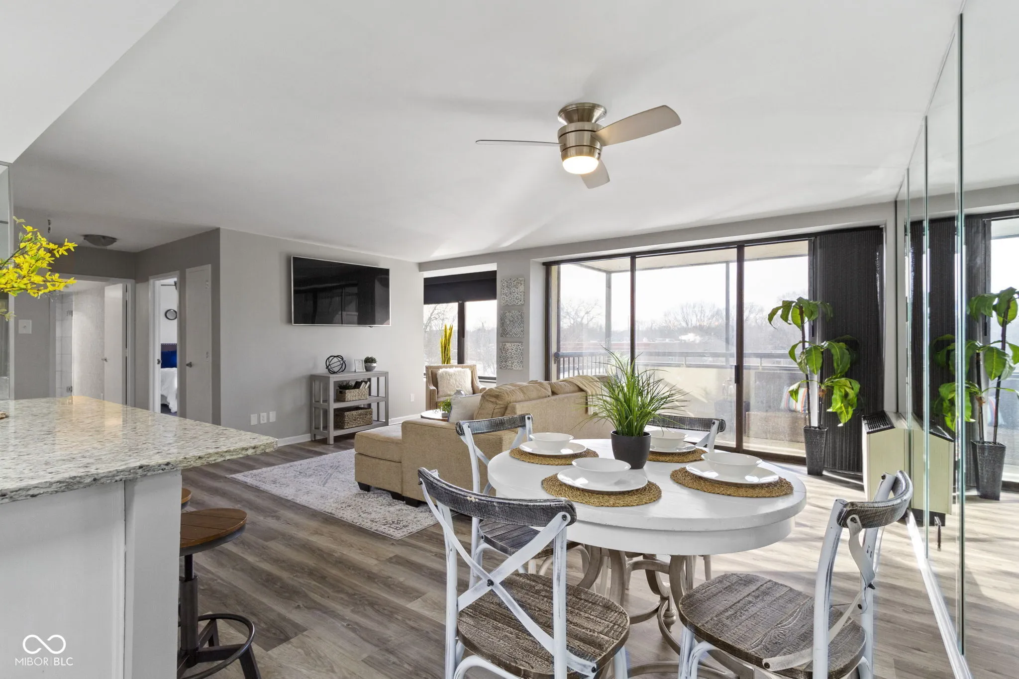 Welcome to maintenance-free living in the heart of Butler Tarkington at the iconic Tarkington Tower! This beautifully updated 1-bedroom, 1-bath condo features brand-new flooring, a redesigned open-concept kitchen with newer appliances, and a modern feel throughout. The remodeled bathroom offers sleek finishes, including new tile, a glass shower, and a spacious vanity. Enjoy relaxing on your screened-in porch, perfect for savoring Indiana’s spring, summer, and fall weather. Tarkington Tower offers 24/7 security, a fitness center, heated outdoor pool, and a bark park. HOA covers all utilities, including Wi-Fi and cable. Your unit includes one secure underground parking space and additional storage. Don’t miss this chance to enjoy luxury and convenience in one of Indianapolis’s most desirable neighborhoods. Schedule your showing today!