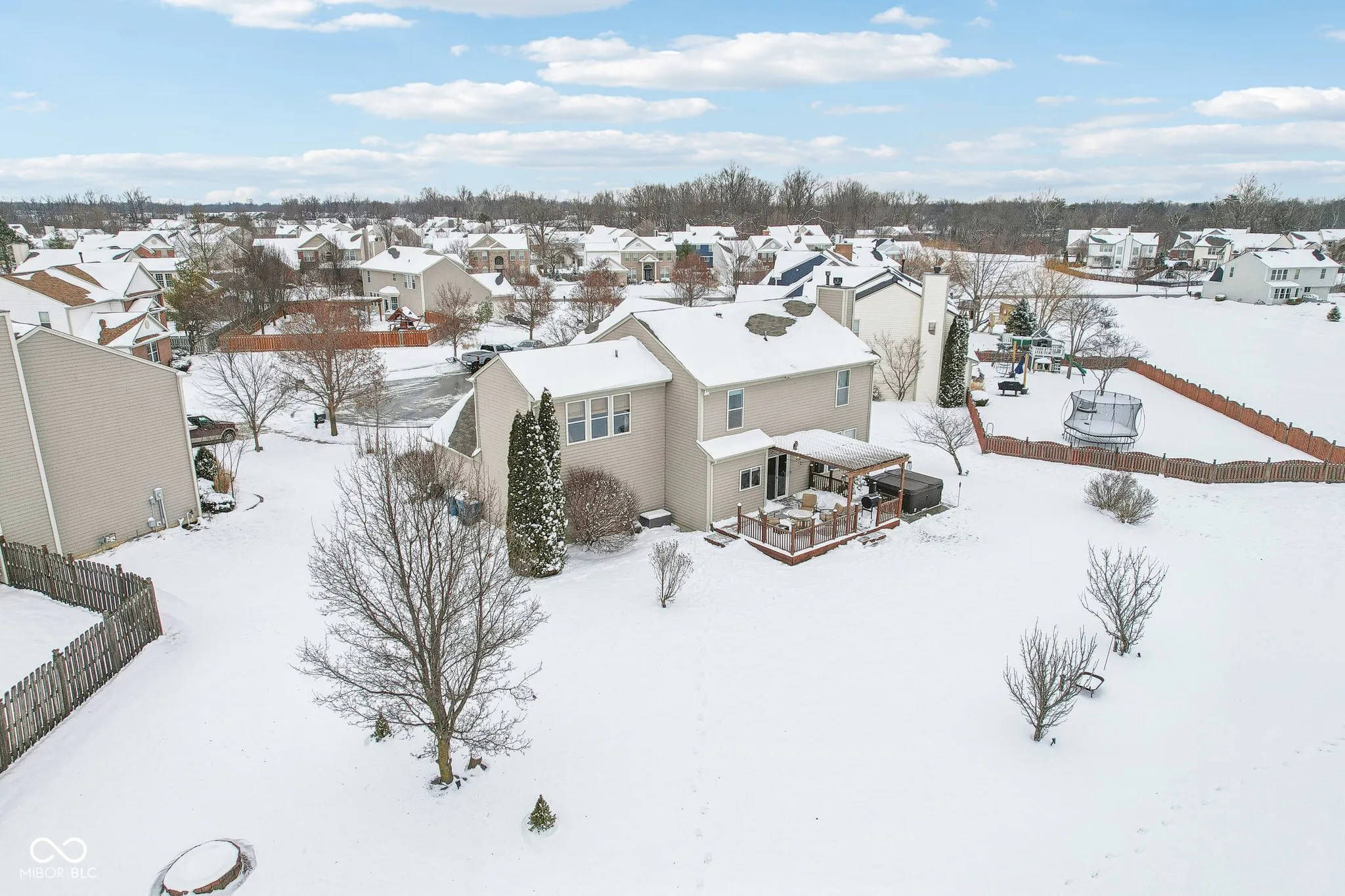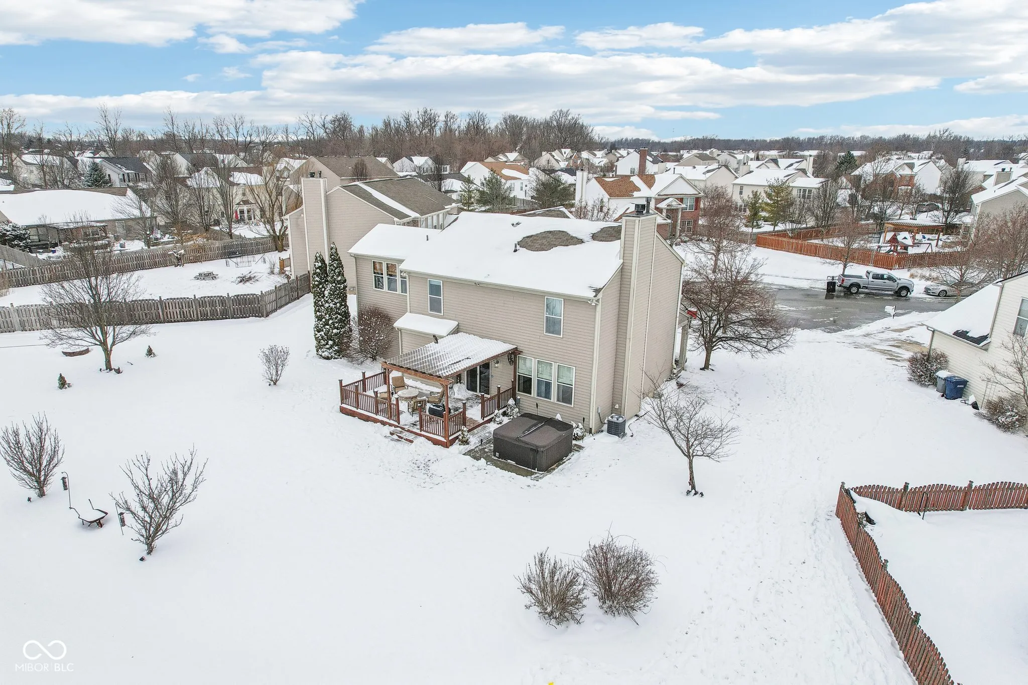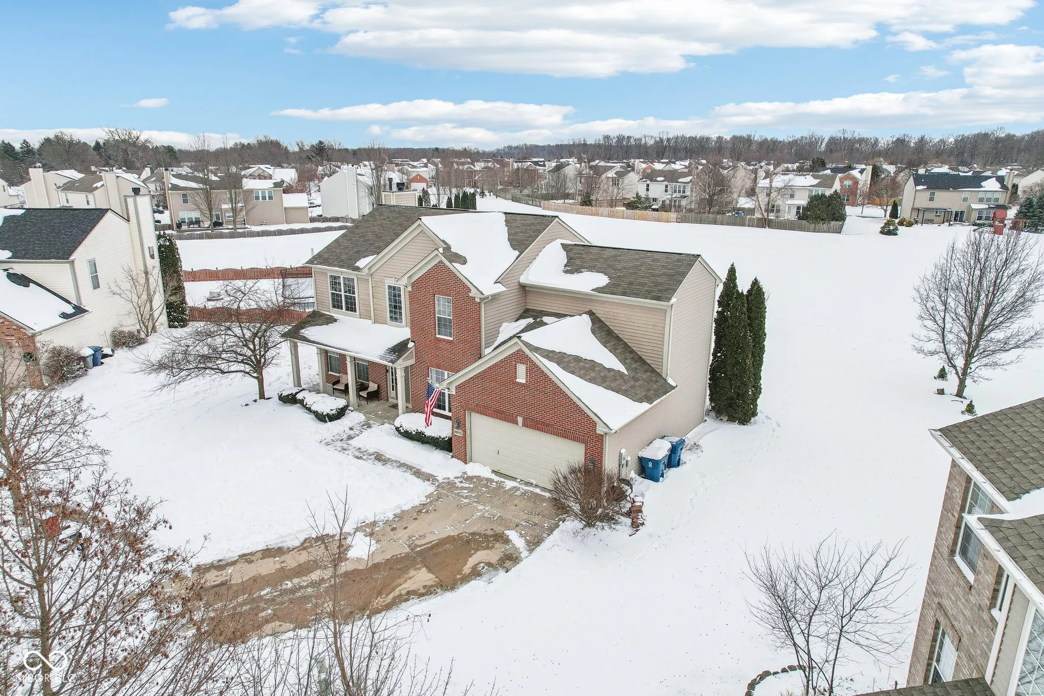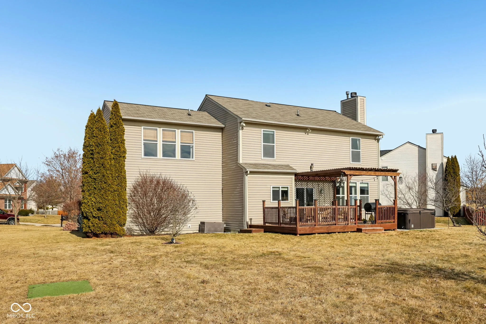 Welcome to 18822 Gusset Ct, a beautifully updated 4-bedroom, 2.5-bath home in the desirable Mill Grove subdivision of Noblesville. This home blends style, comfort, and functionality with spacious gathering areas, including an updated kitchen with quartz countertops, modern cabinetry, and a large island. The open-concept design flows seamlessly into the family room, and the main level also features a flexible space perfect for a home office or playroom. Upstairs, the spacious primary suite offers a walk-in closet and a private bath with dual vanities, soaking tub, and separate shower. Three additional bedrooms provide plenty of space for family, guests, or hobbies. The finished basement features a cozy speakeasy room for entertainment. Outside, enjoy a private backyard oasis with a hot tub and no neighbors behind. Mill Grove offers walking trails, a community pool, and multiple playgrounds. With its updated features and serene setting, this home is a must-see!