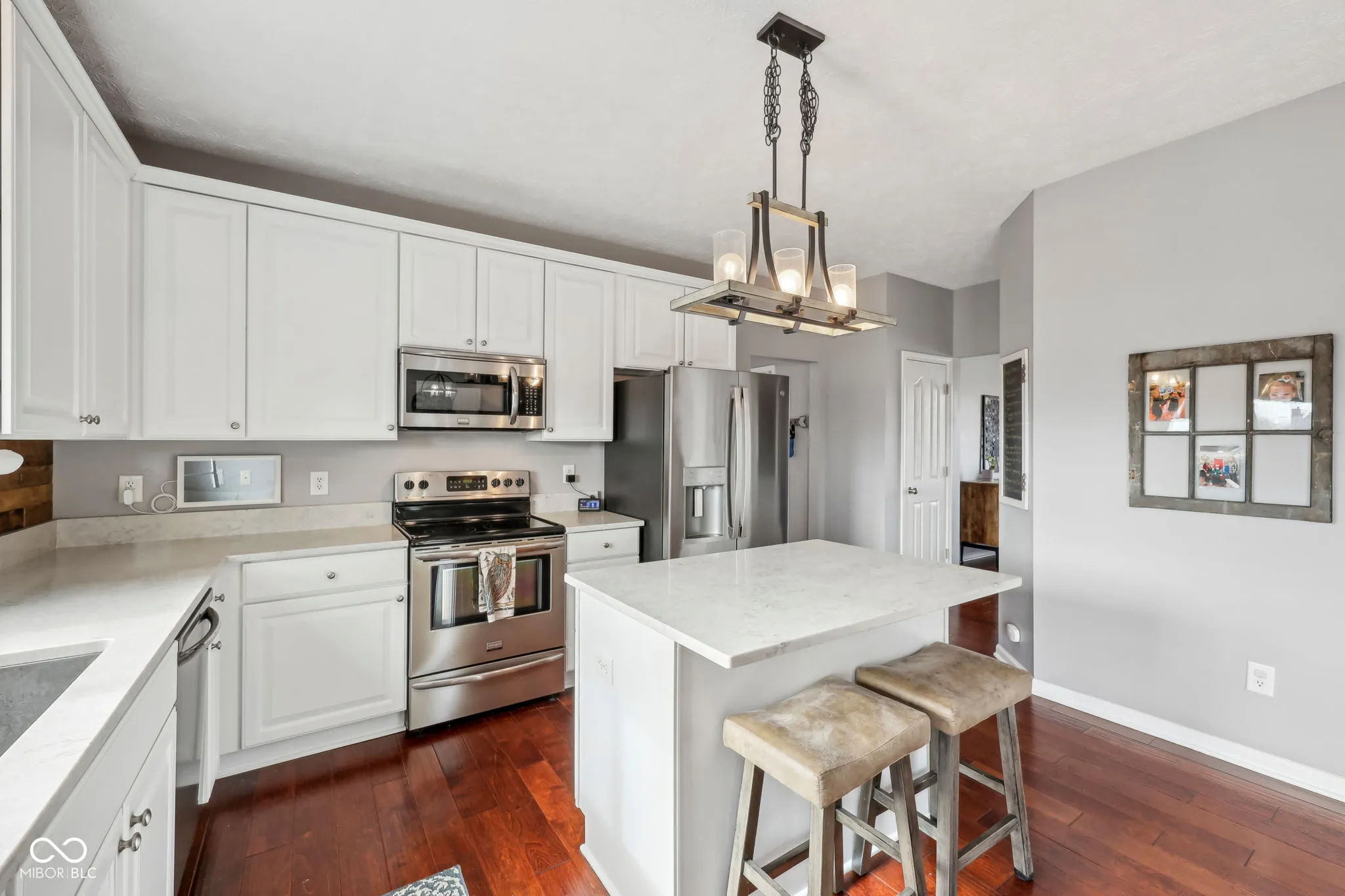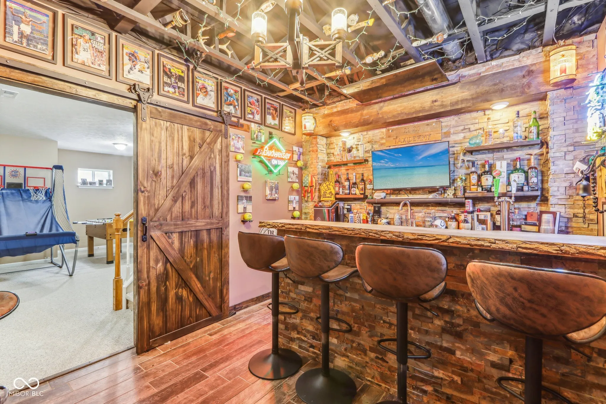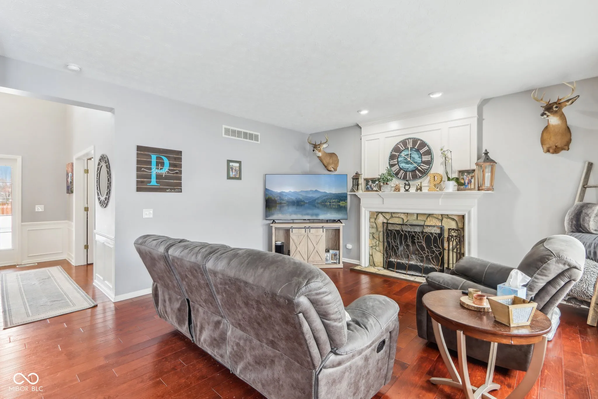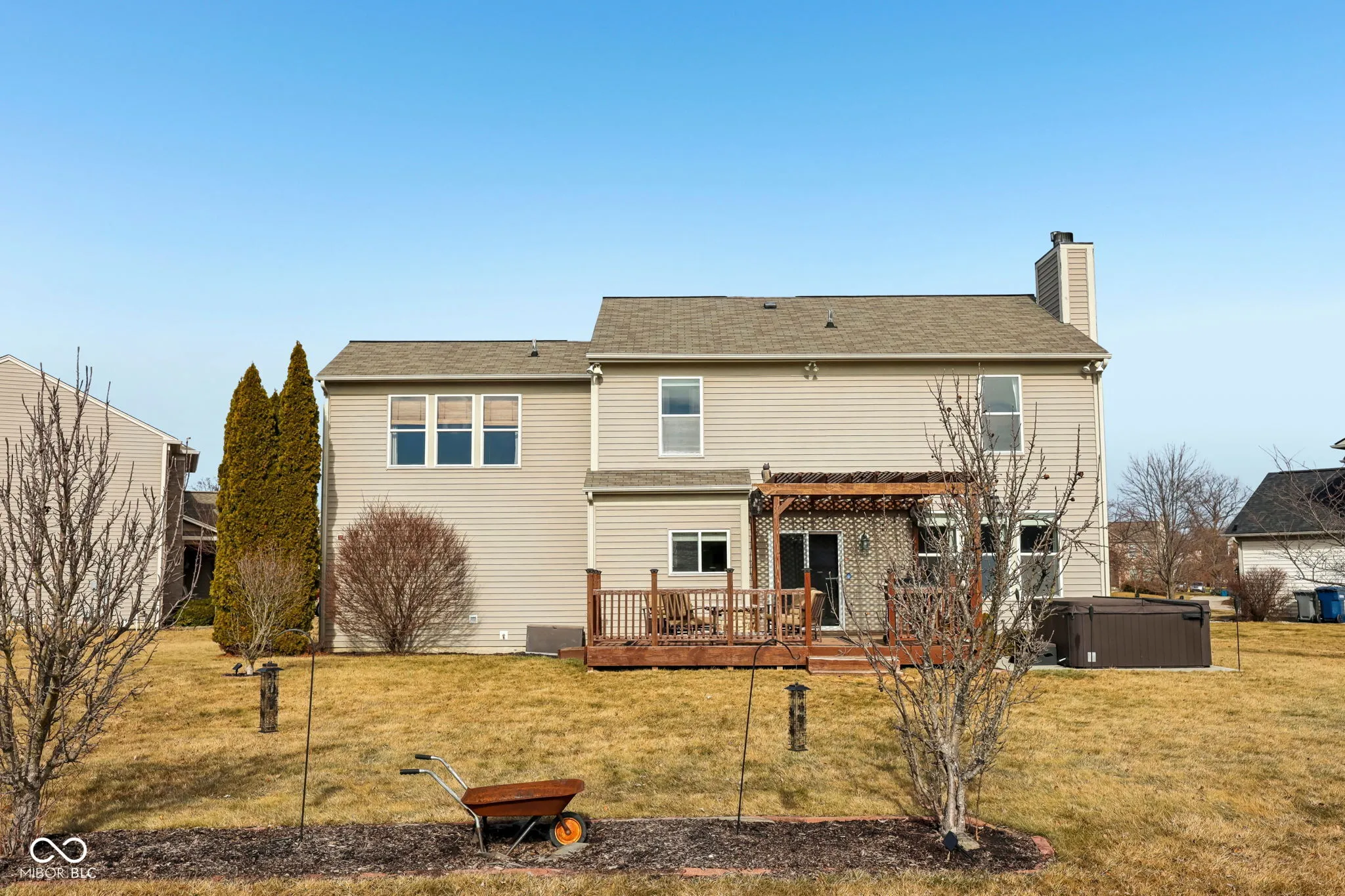 Welcome to 18822 Gusset Ct, a beautifully updated 4-bedroom, 2.5-bath home in the desirable Mill Grove subdivision of Noblesville. This home blends style, comfort, and functionality with spacious gathering areas, including an updated kitchen with quartz countertops, modern cabinetry, and a large island. The open-concept design flows seamlessly into the family room, and the main level also features a flexible space perfect for a home office or playroom. Upstairs, the spacious primary suite offers a walk-in closet and a private bath with dual vanities, soaking tub, and separate shower. Three additional bedrooms provide plenty of space for family, guests, or hobbies. The finished basement features a cozy speakeasy room for entertainment. Outside, enjoy a private backyard oasis with a hot tub and no neighbors behind. Mill Grove offers walking trails, a community pool, and multiple playgrounds. With its updated features and serene setting, this home is a must-see!