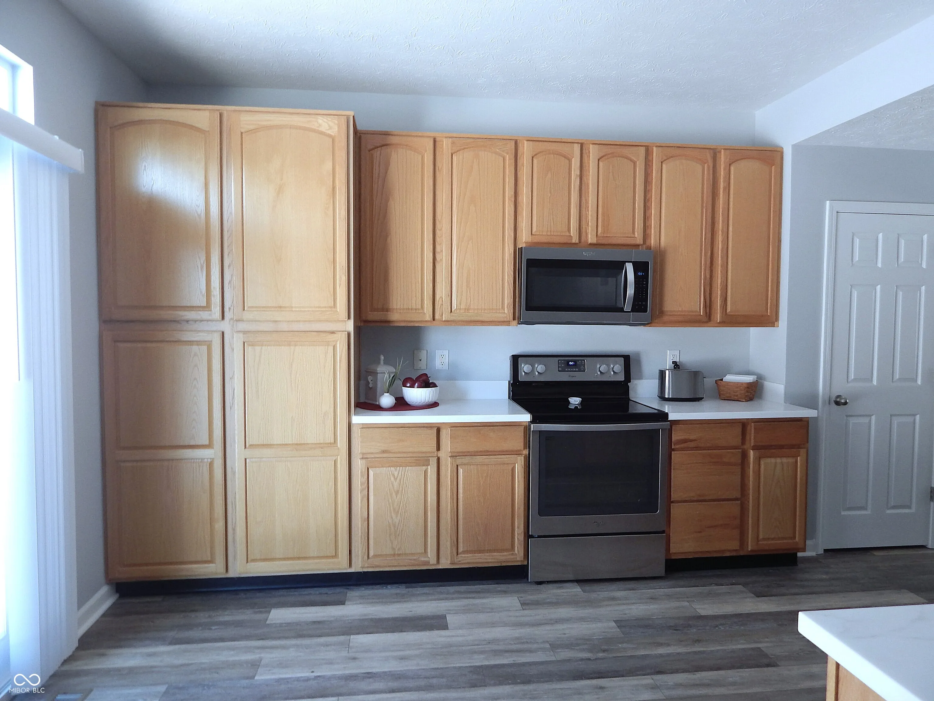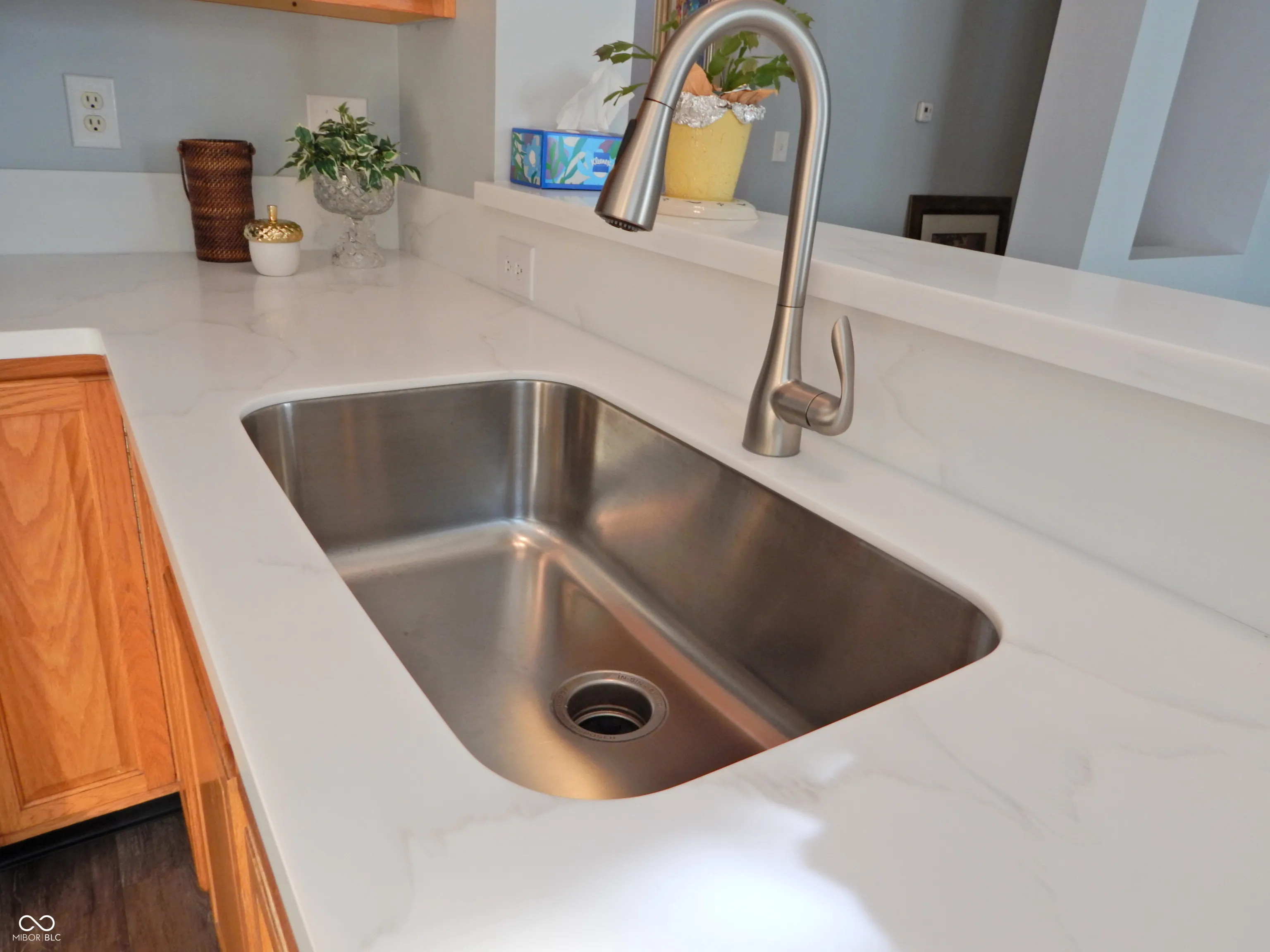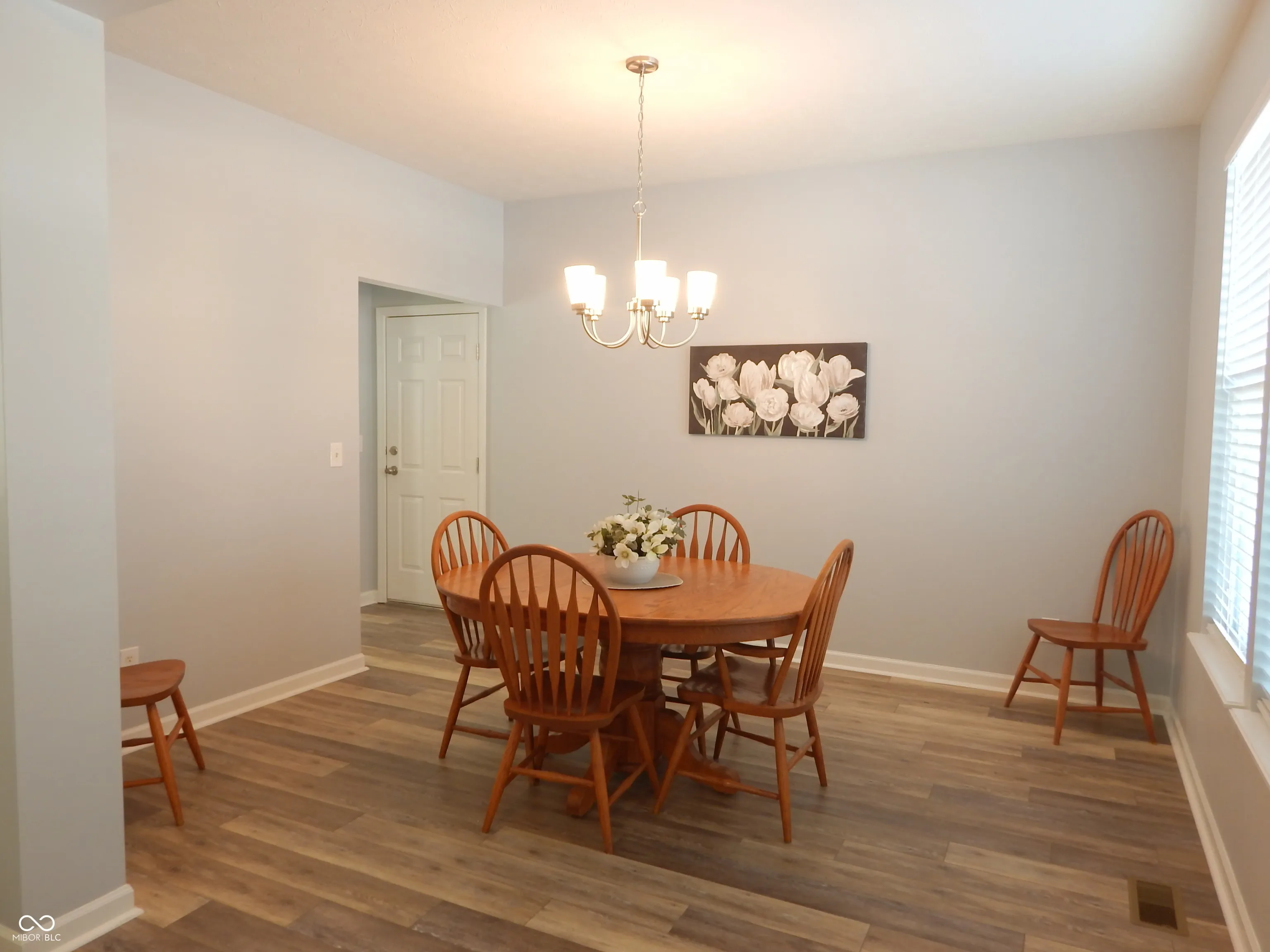 Fresh new look on main floor with newly painted walls and woodwork, luxury vinyl plank, and updated kitchen. New farm style sink, faucet, gorgeous solid surface countertops. Pantry style cabinet added with roll out drawers. Kitchen includes handy trash drawer and 42″ cabinets, pantry closet and open arrangement overlooking the great room. Upper level split bedroom plan with 4 bedrooms features hardwood flooring, central loft with walk in storage closet, and primary bedroom with updated bath and cathedral ceiling. New tiled shower, double vanity and countertop, fixtures, luxury vinyl plank flooring in stylish remodeled bath. Lower level is finished rec room plus storage/utility closet. 12×10 shed is included. The insulated finished garage is divided into 2 car heated space and separate 3rd bay is workshop and storage. HVAC 2020, ROOF 2008. Tree lined backyard and patio. Close to schools and major roads.